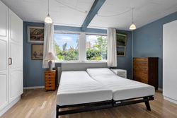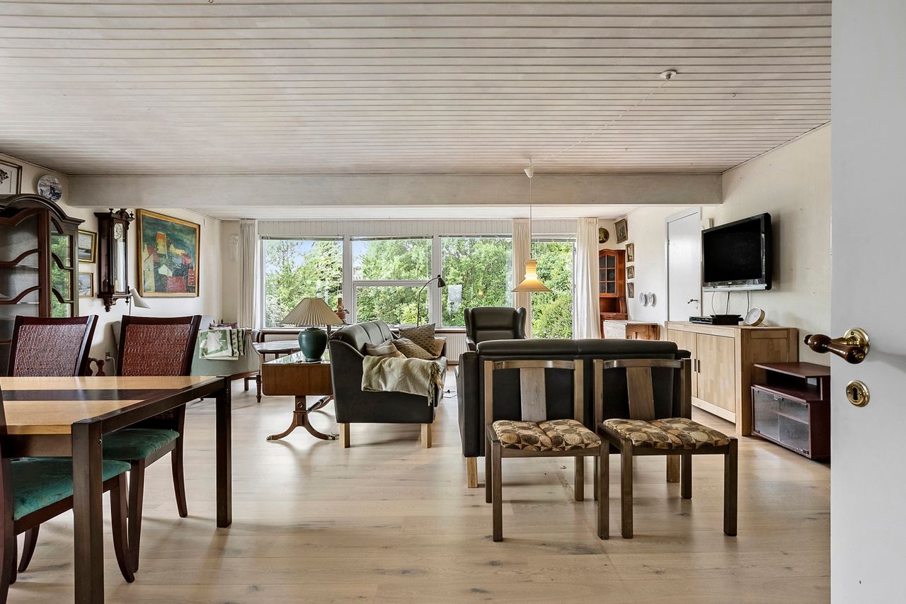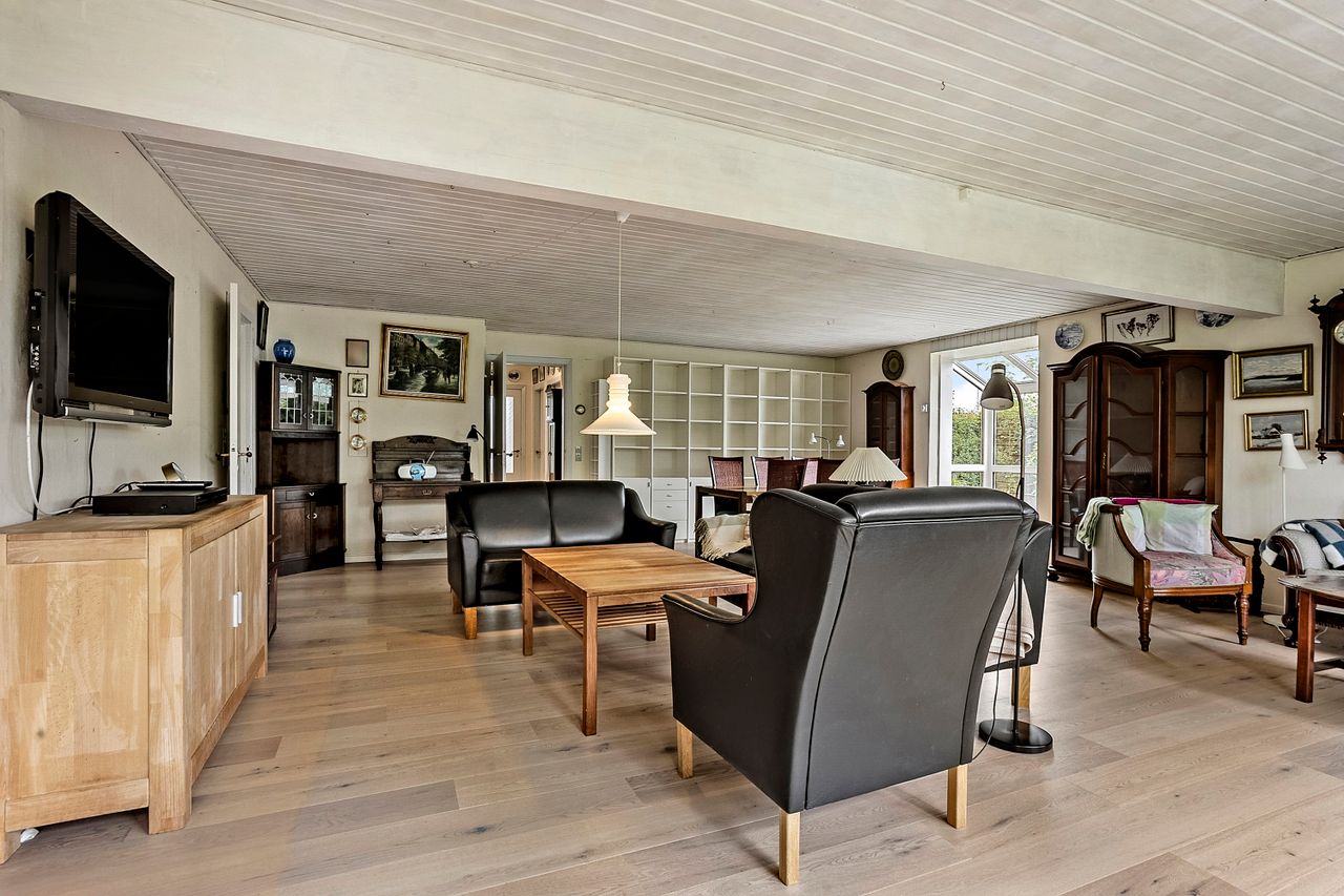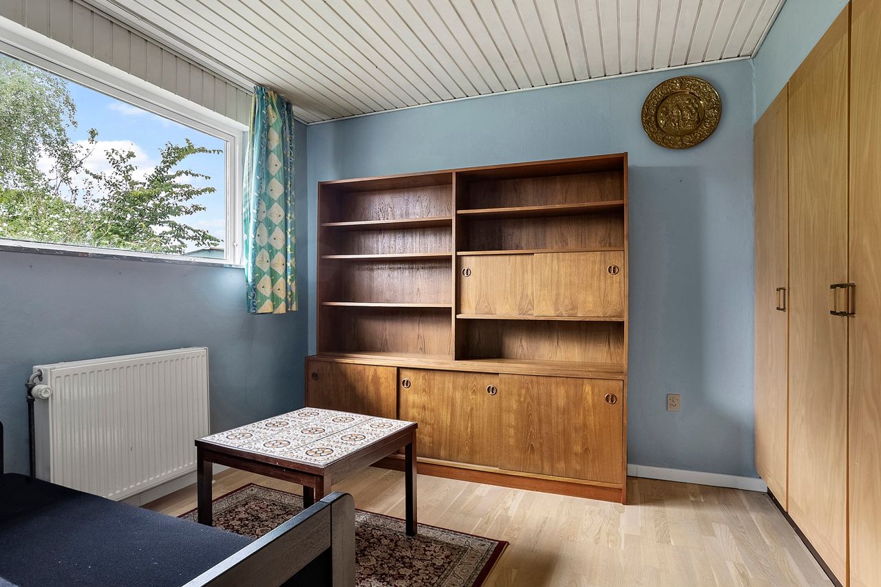Villaen er opført i 1966 og blev moderniseret i 1976. Den byder i dag på 138 veludnyttede kvadratmeter med en funktionel planløsning. Hjemmets naturlige samlingspunkt er den store og lyse stue, der er åben mod spisestuen. Her er der plads til både langbord, sofahjørne og mulighed for at indrette et ekstra værelse, hvis behovet skulle opstå. Fra stuen er der direkte adgang til en skøn terrasse og en privat, ugeneret have – perfekt til sommerdage og afslapning.