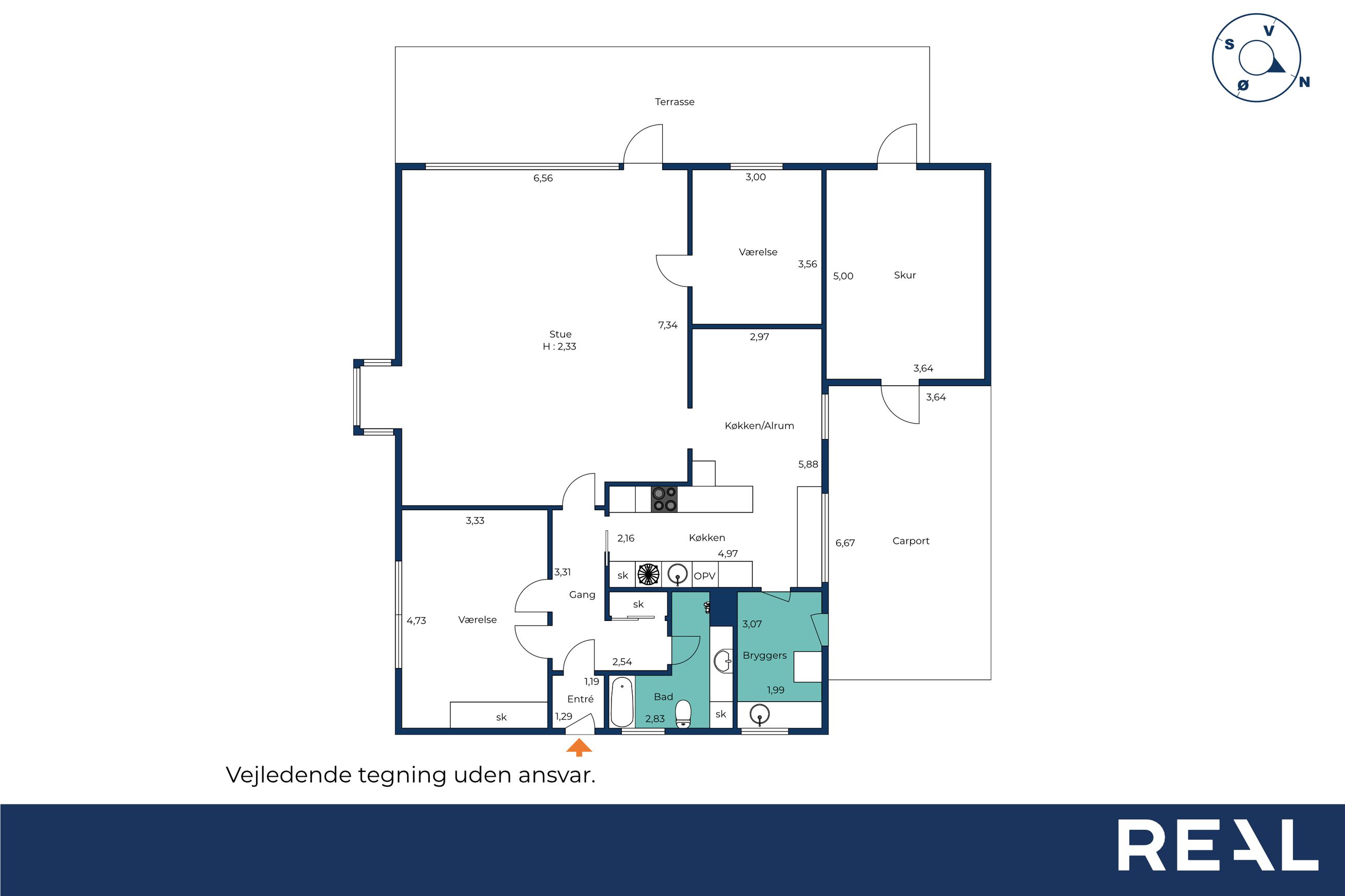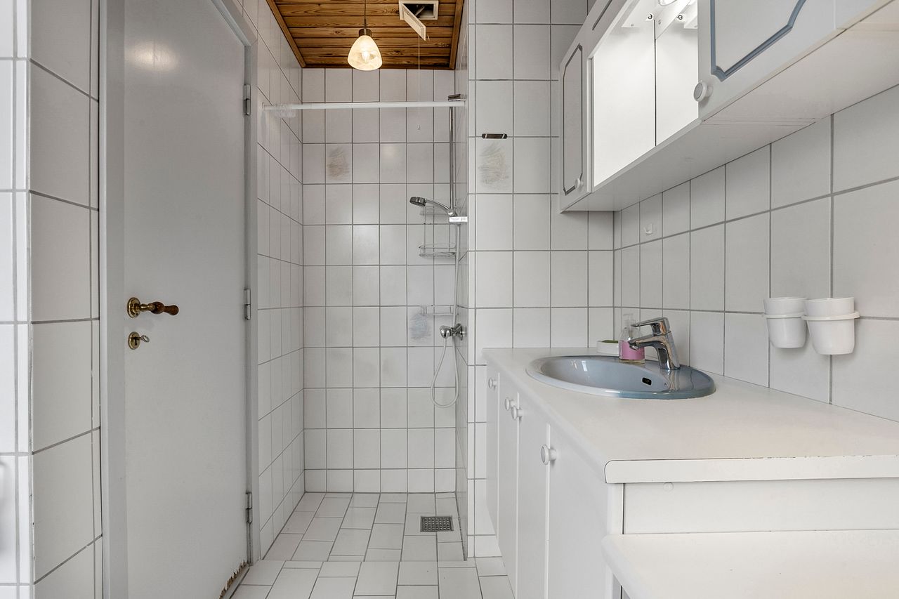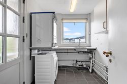 Planløsningen byder desuden på to gode værelser, med mulighed for flere, samt et lyst badeværelse med gulvvarme, der sikrer komfort året rundt.