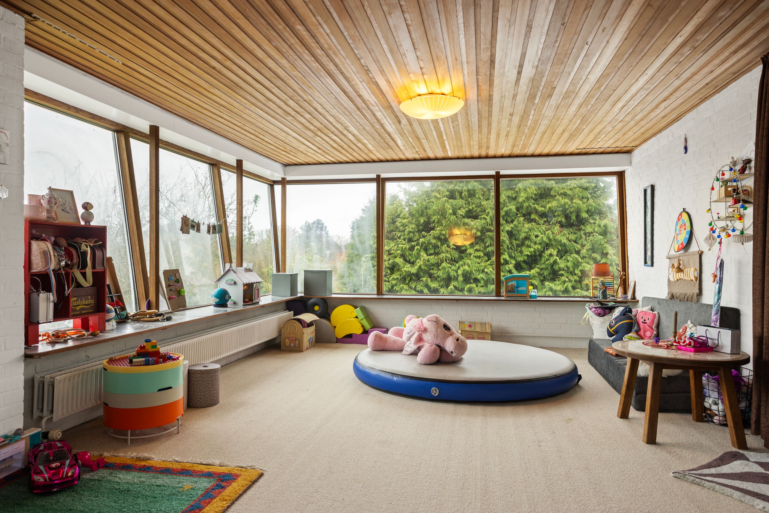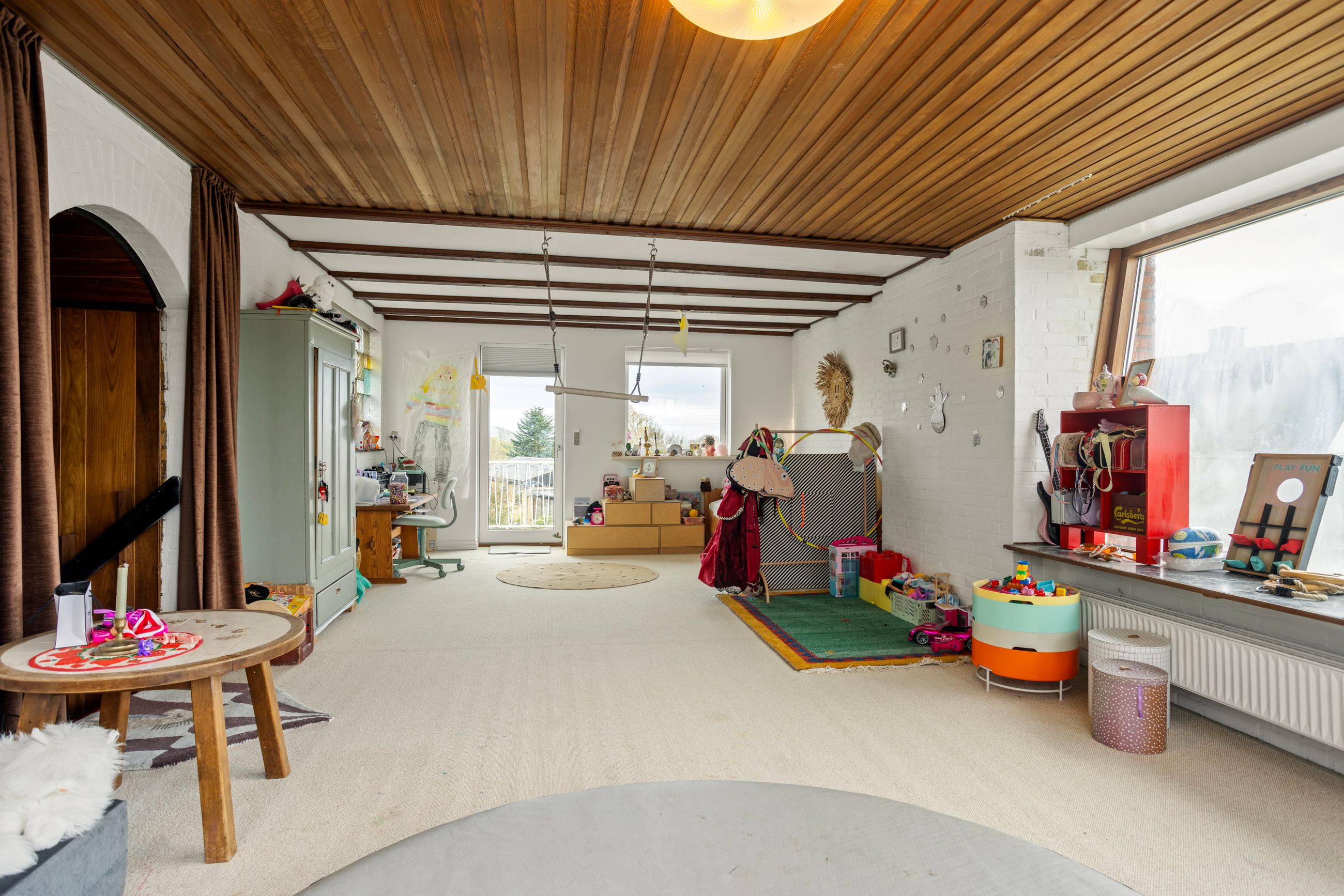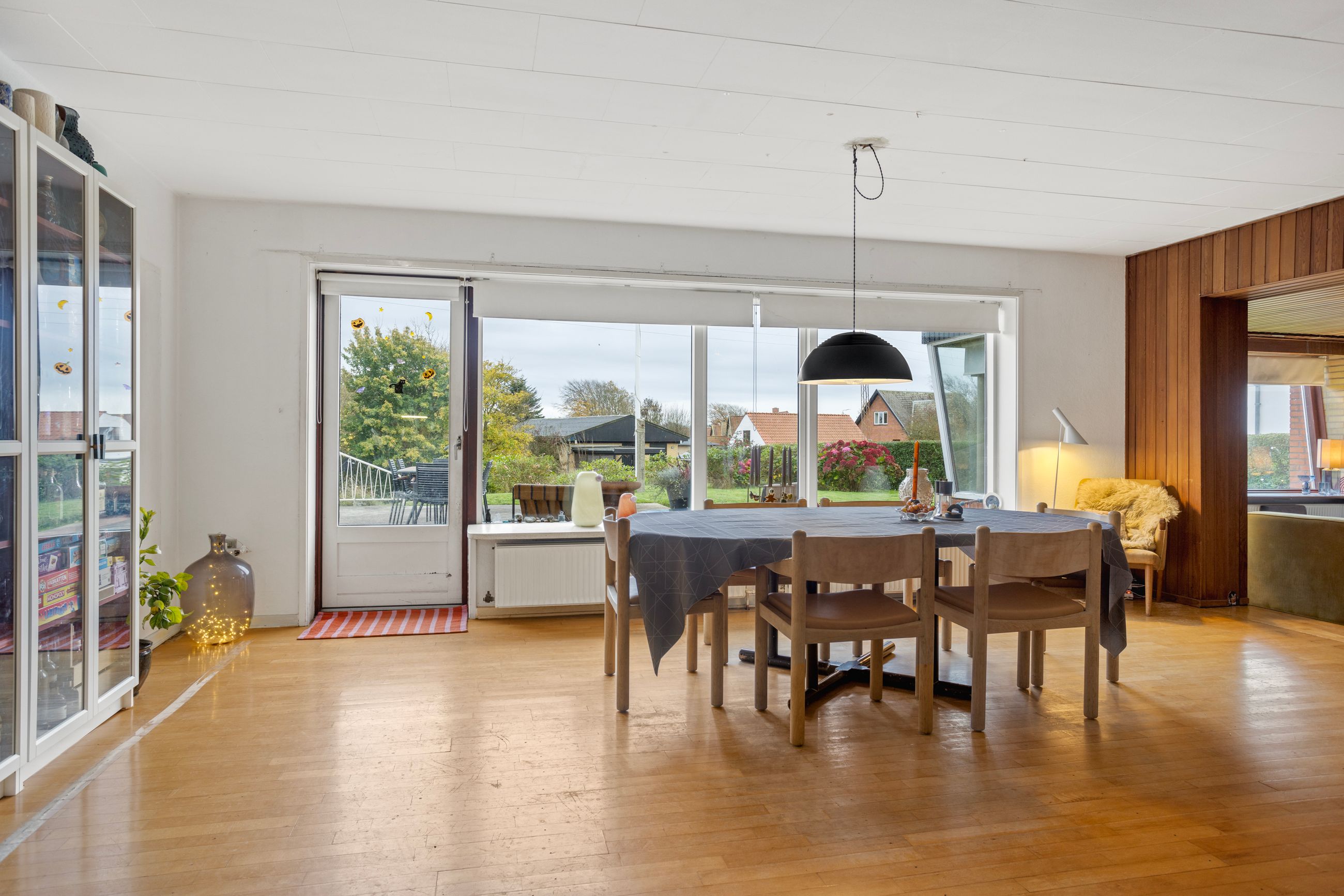 Boligen byder på en spændende og funktionel planløsning med mange muligheder. På førstesalen finder du et stort værelse med udgang til privat altan – perfekt som soveværelse, men i dag indrettet som legerum. Derudover rummer boligen tre gode værelser, to badeværelser, et velholdt køkken, en spisestue med direkte udgang til sydøstvendt terrasse samt en charmerende nedsænket tv-stue med brændeovn, der skaber hygge og varme på kølige dage.