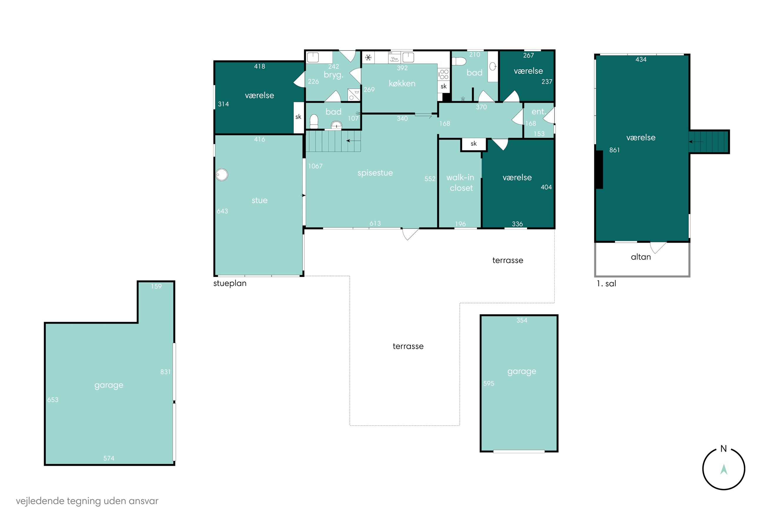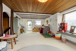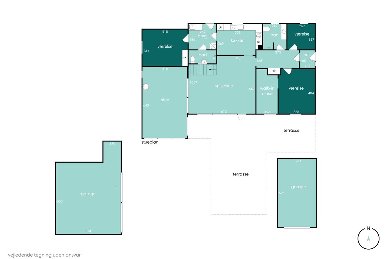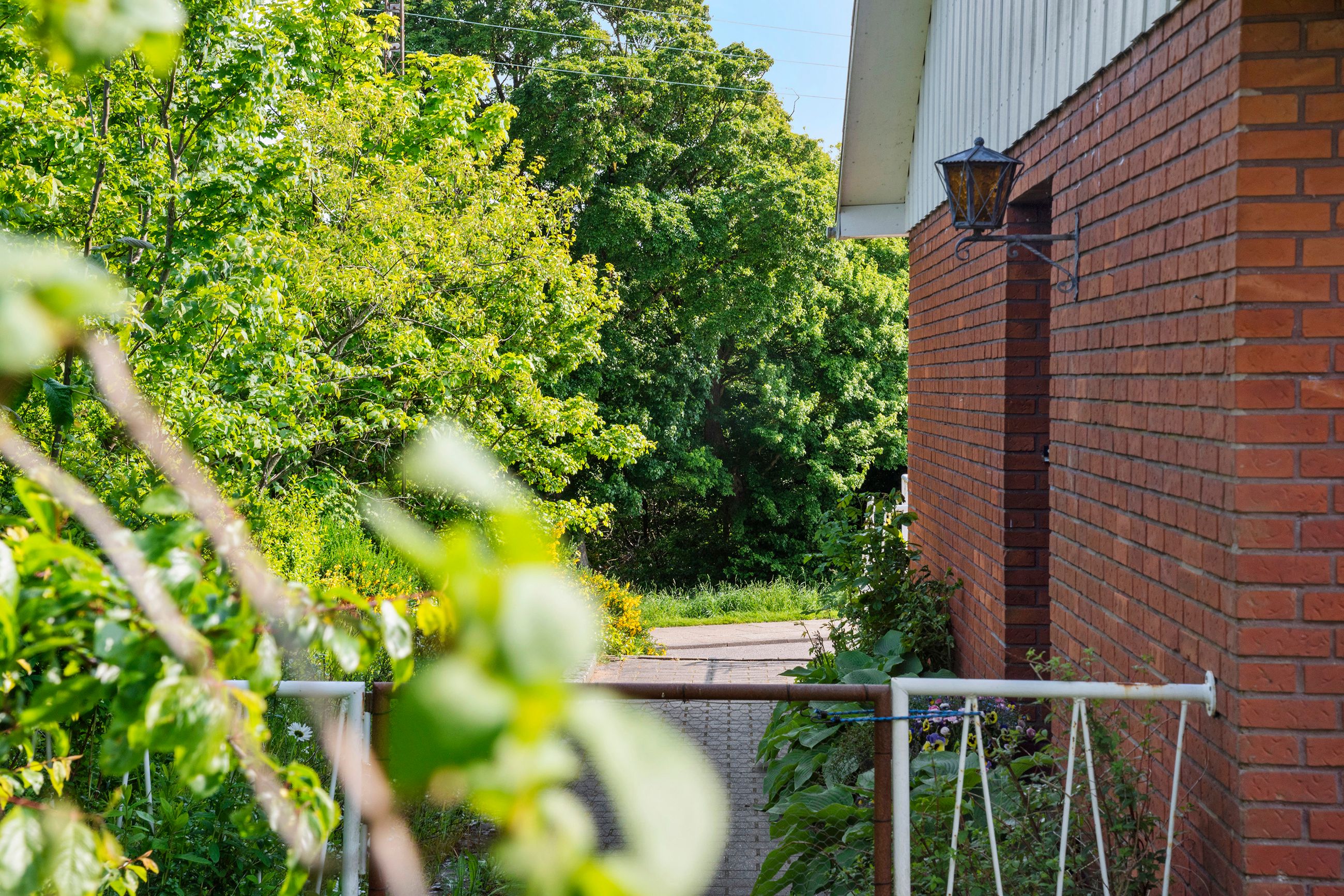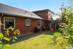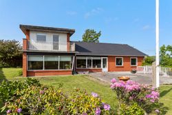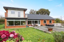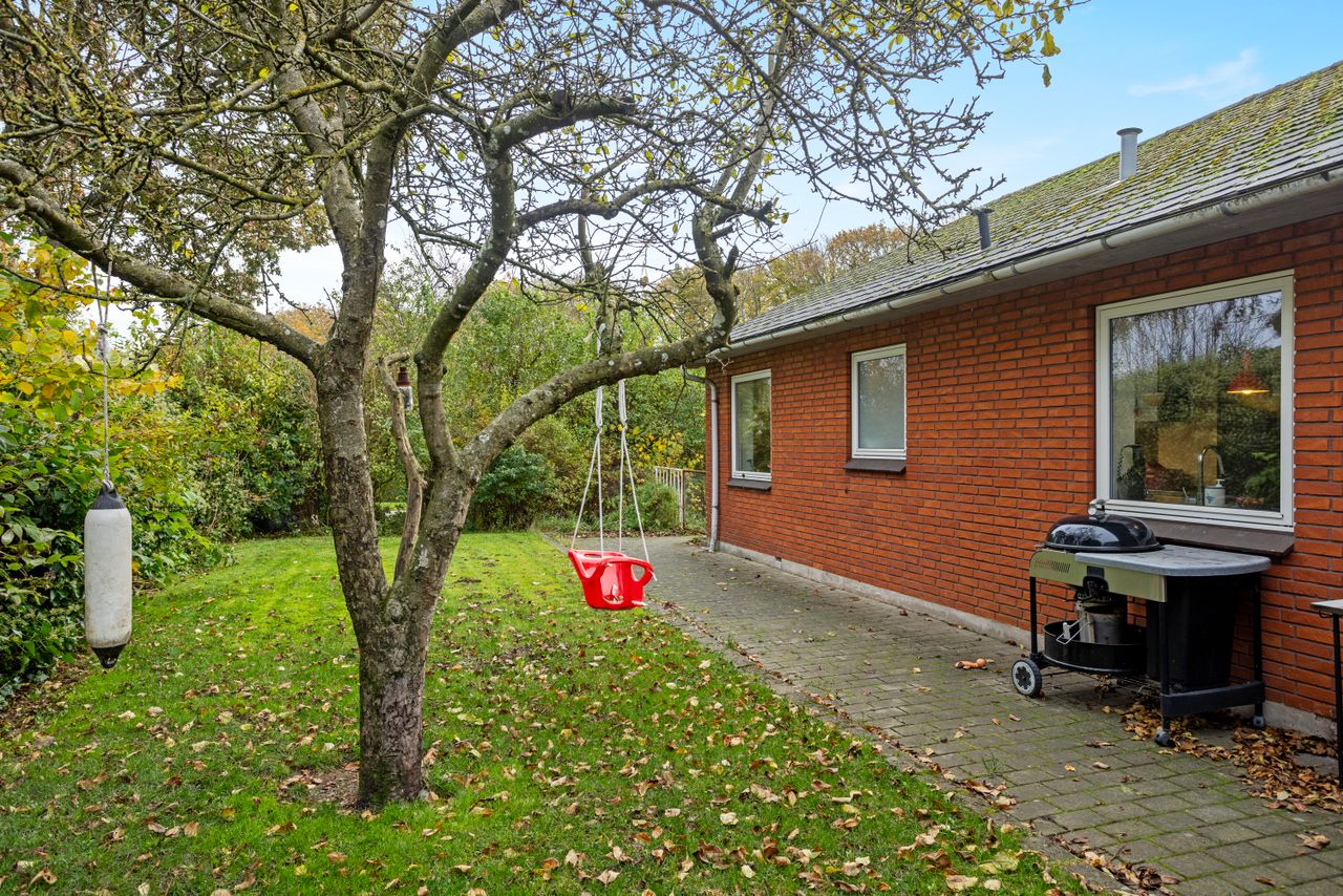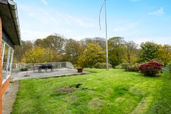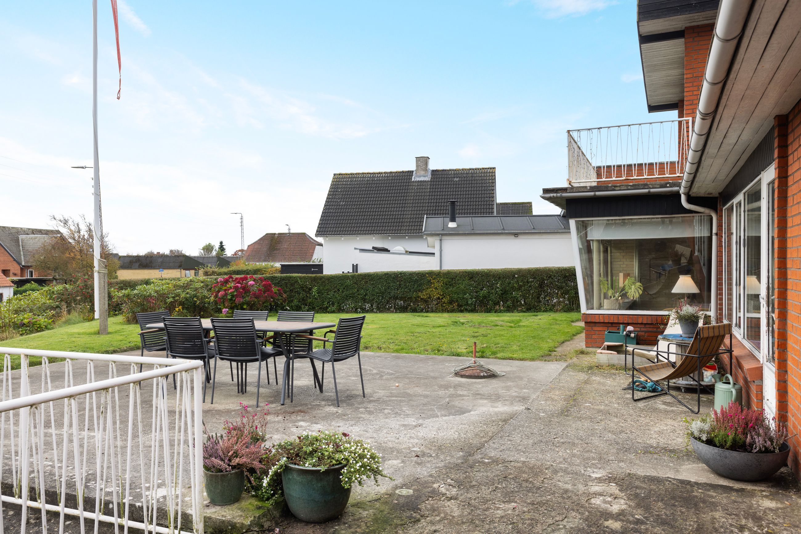 Terrassen indbyder til afslapning i solen og hyggelige stunder med familie og venner. Under huset og terrassen findes et rummeligt garageanlæg med plads til flere biler og god opbevaringsplads – en sjælden og praktisk detalje.
