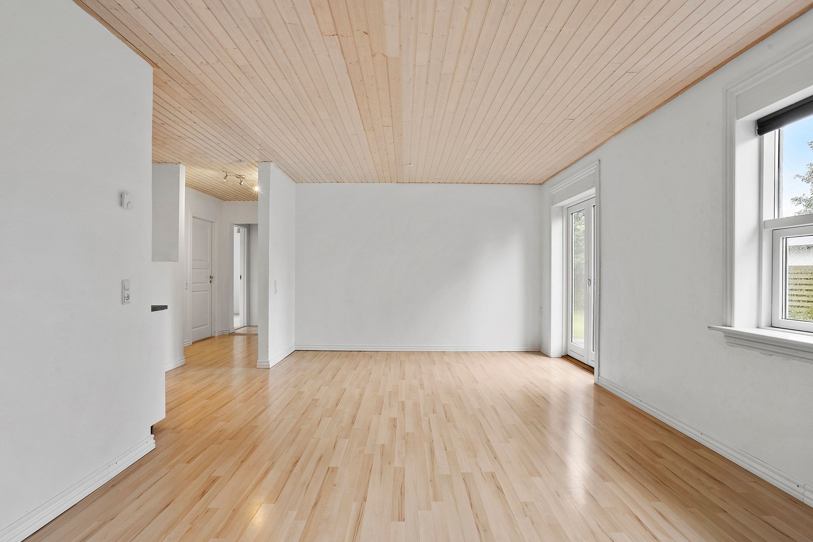 Huset rummer 124 kvm i ét plan og fremstår lyst og indbydende.