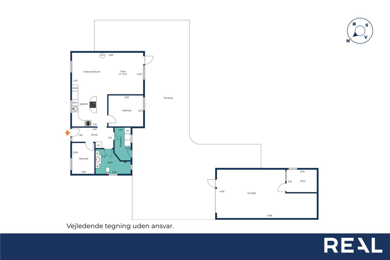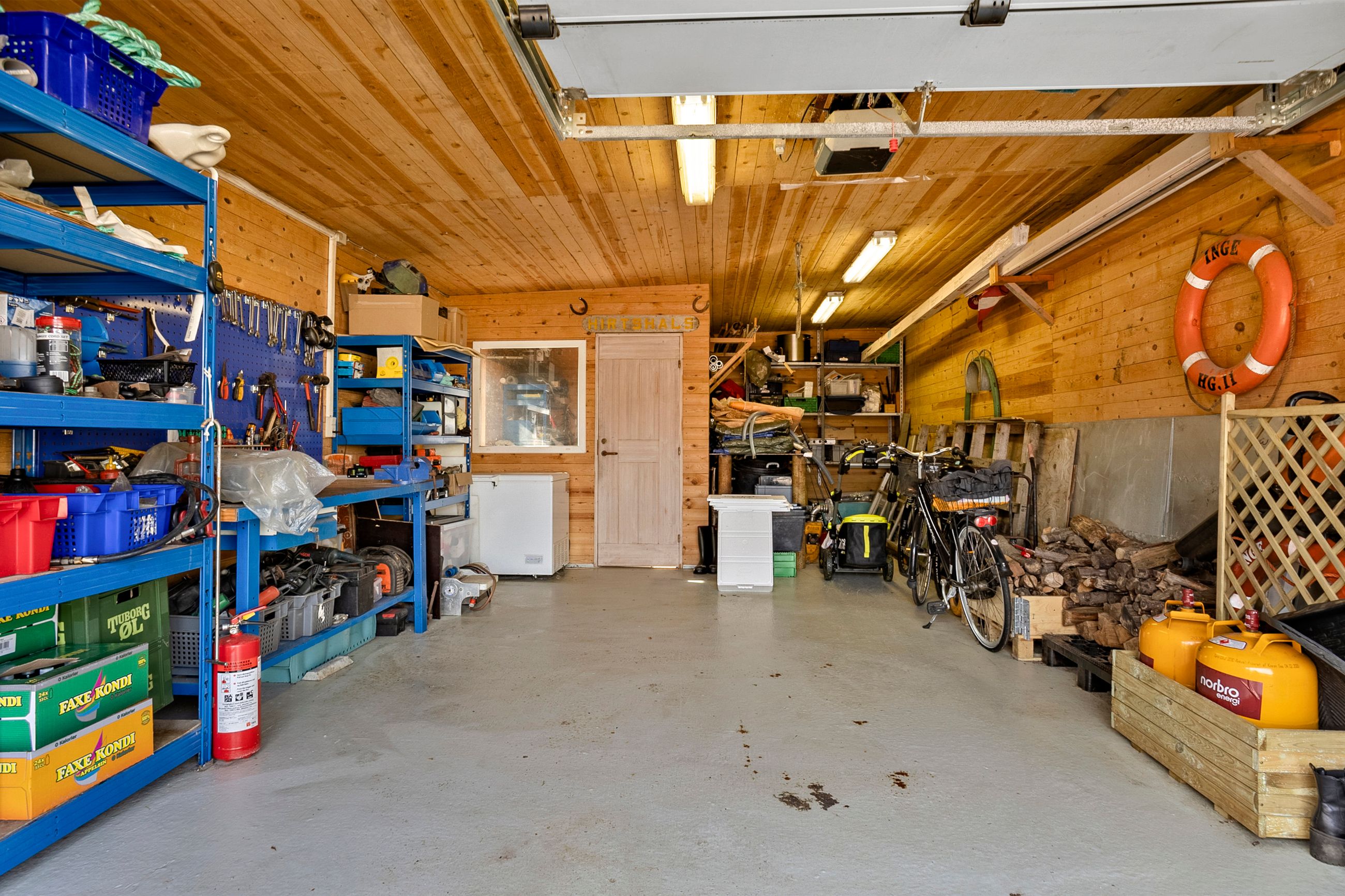 På den 618 m2 store grund er der plads til udeliv, og garagen på hele 50 m2, opført i 2003, giver masser af muligheder – både til bil, værksted og hobby.