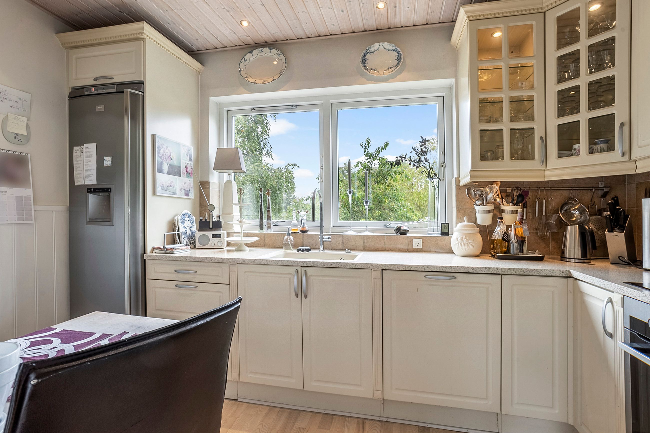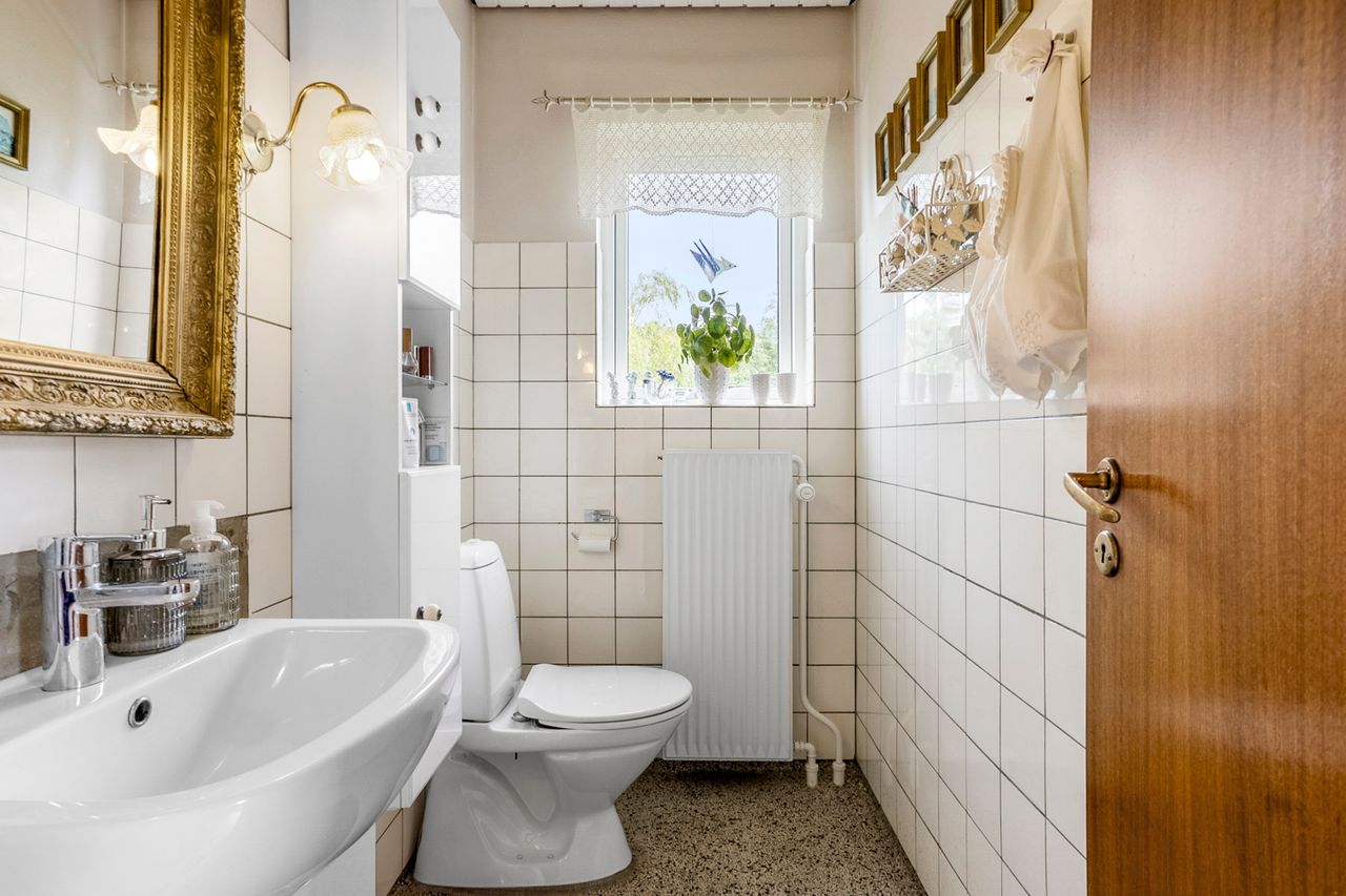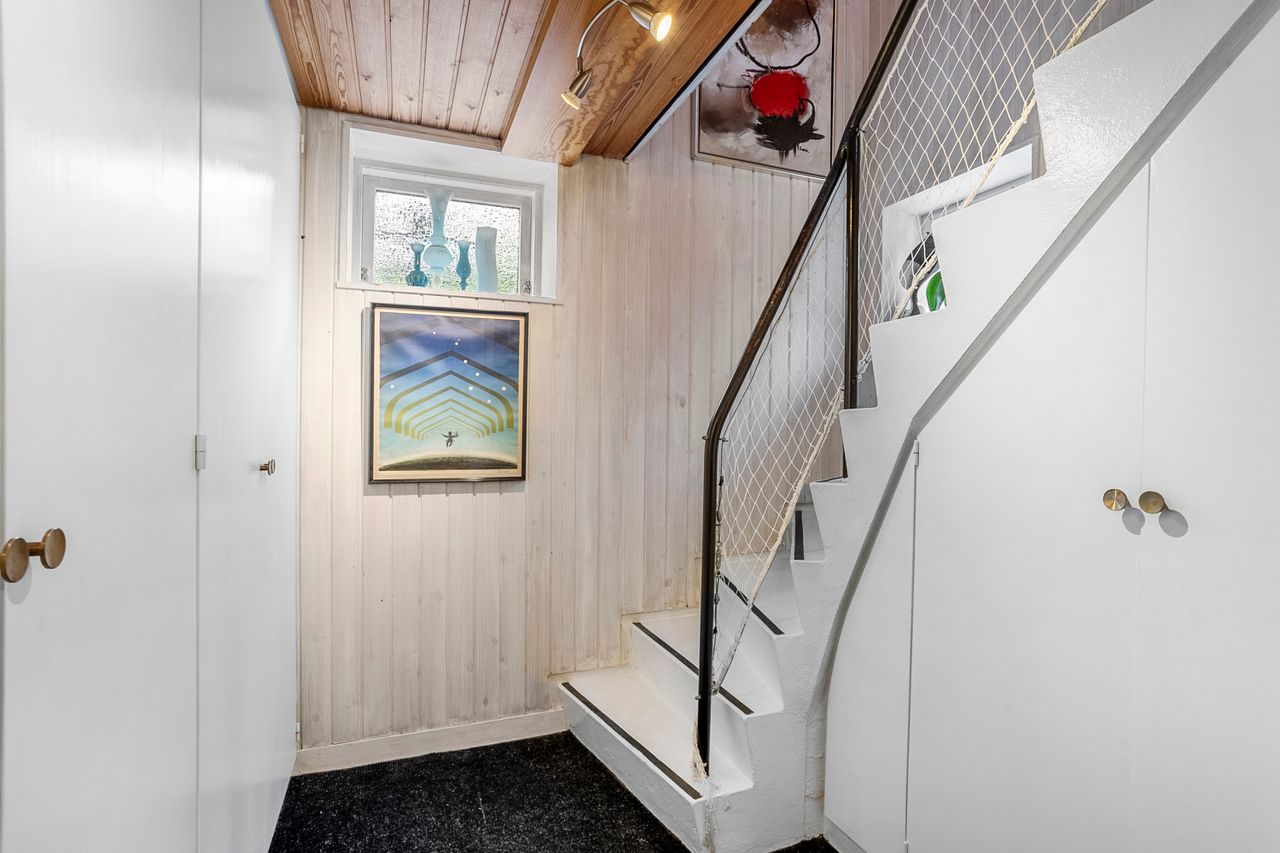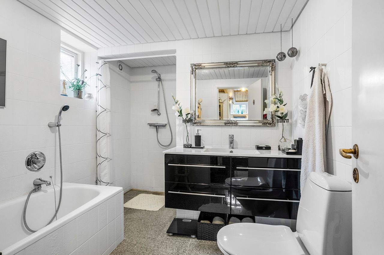 Boligen suppleres af en yderst anvendelig kælder på hele 86 m2. Her finder du et badeværelse fra 2011 med gulvvarme, stor bruseniche og badekar, et stort bryggers samt tre disponible rum, hvoraf det ene er indrettet med brændeovn – perfekt som ekstra hobbyrum.