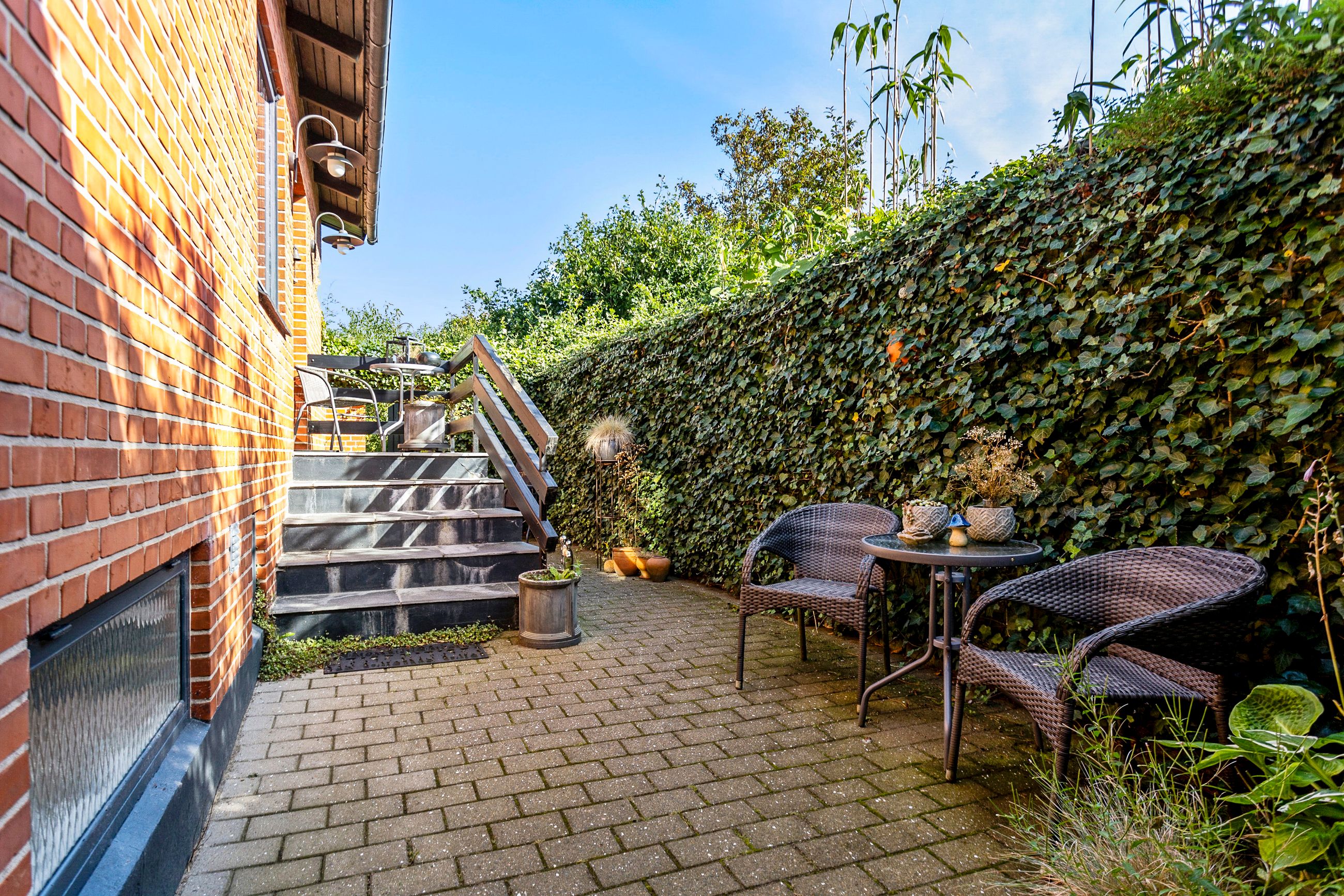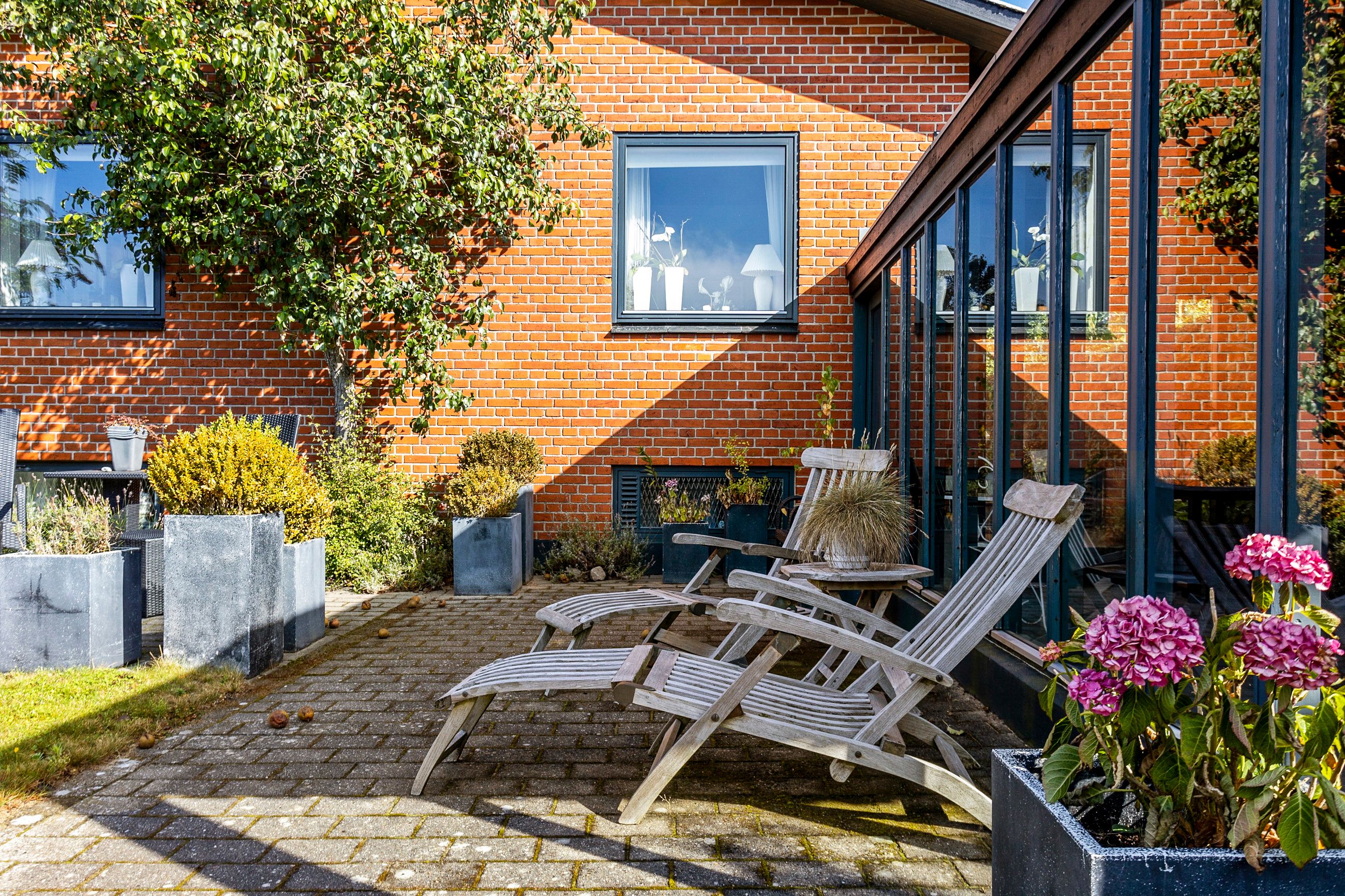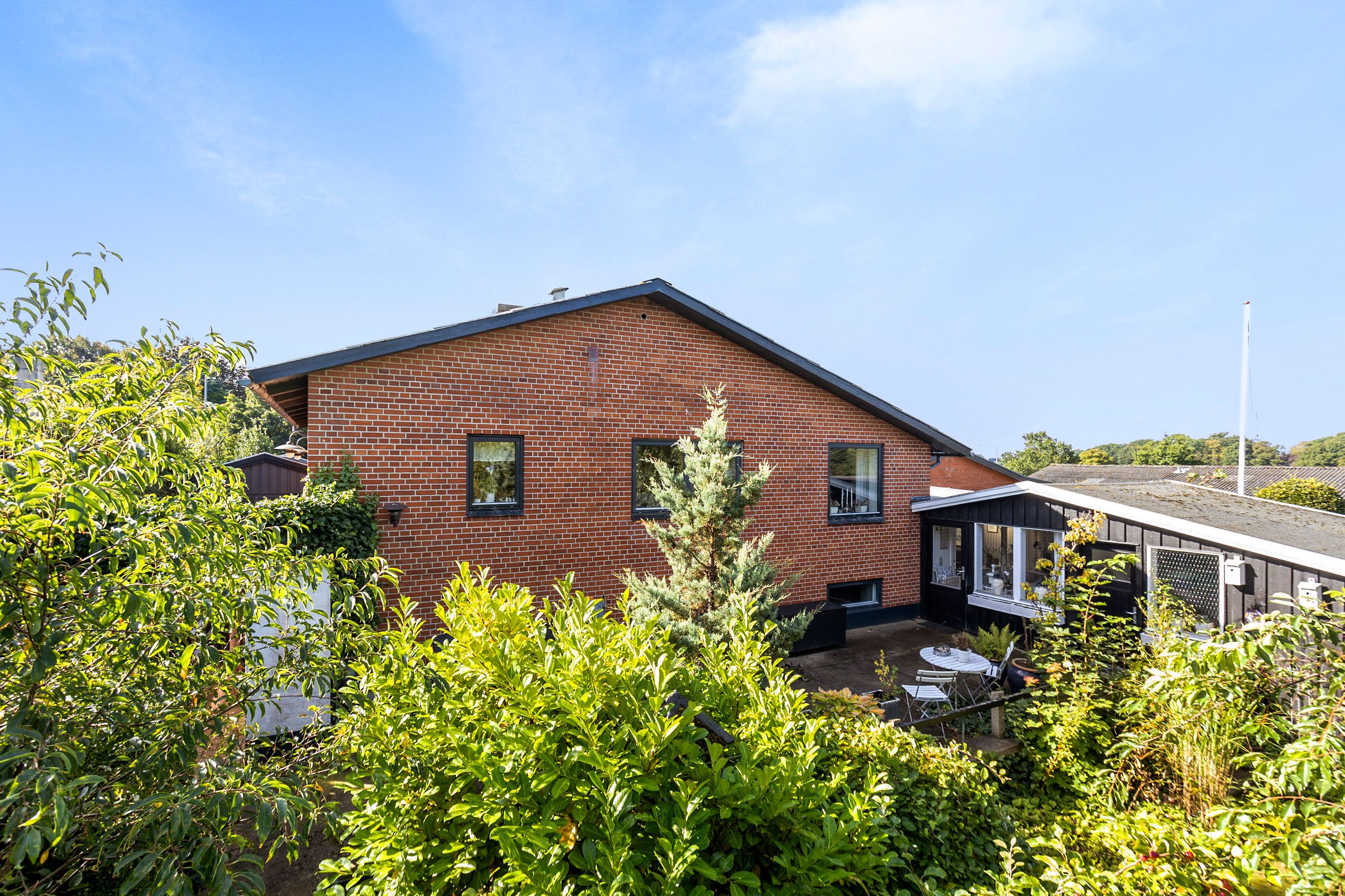 Udendørs får du en flot carport med tagpap, flere gode udhuse og en skøn overdækket terrasse, hvor vindruer slynger sig i loftet og danner en stemningsfuld ramme om sommerens og sensommerens aftener. Den 788 m2 store grund giver god plads til leg, havearbejde og udeliv, og ejendommen er samtidig praktisk opdateret med separat kloakering.