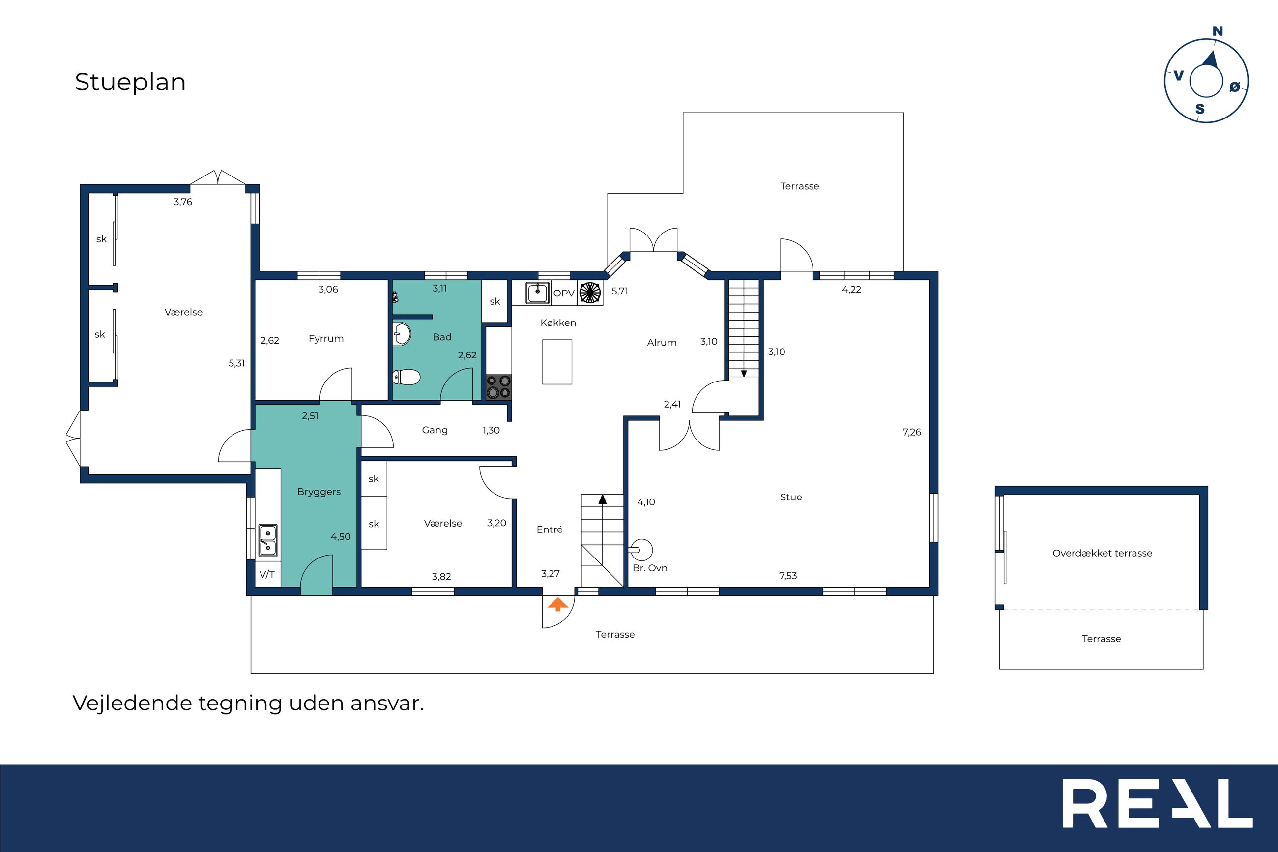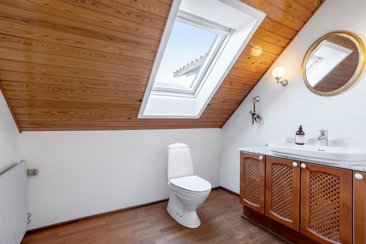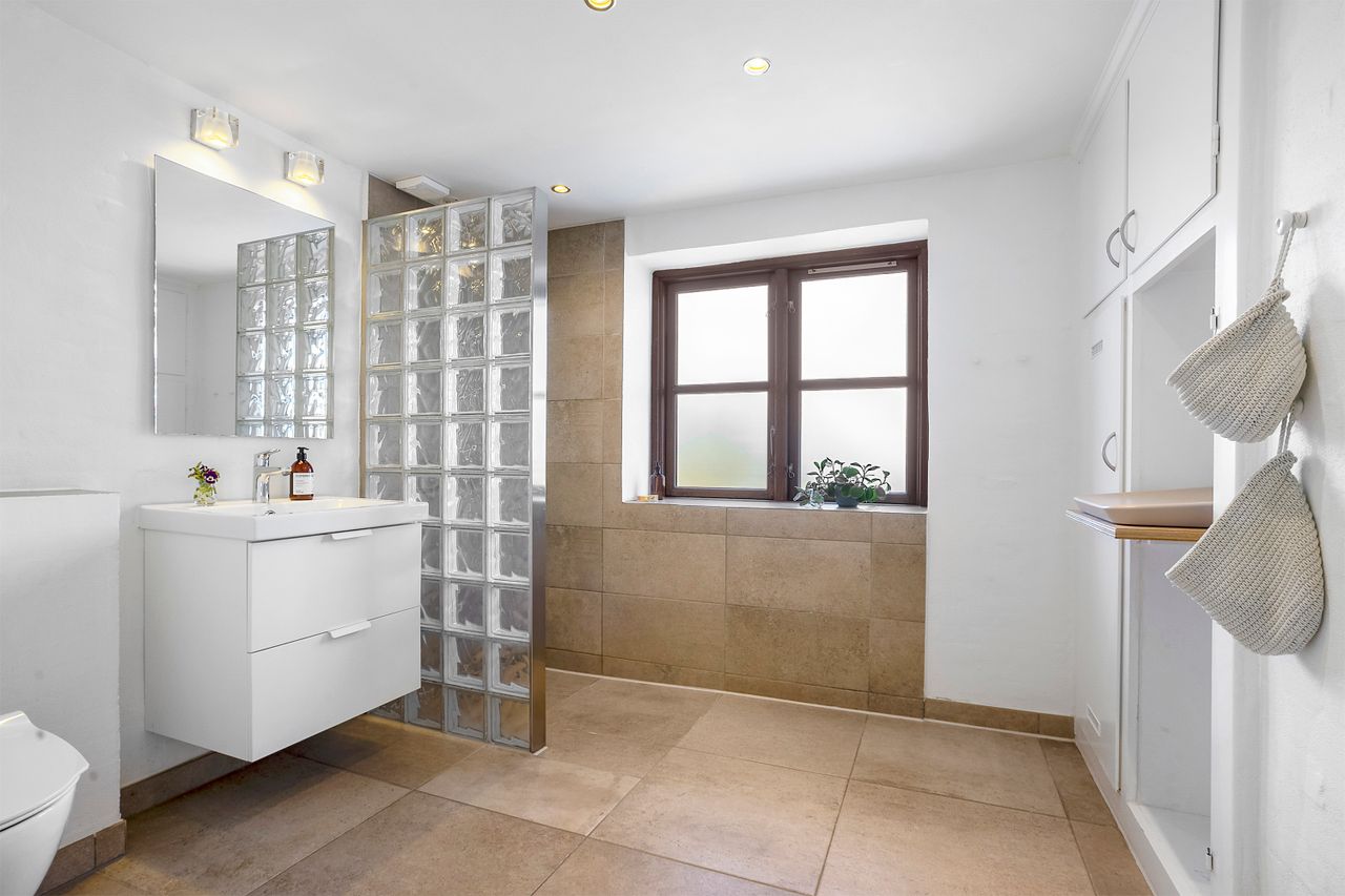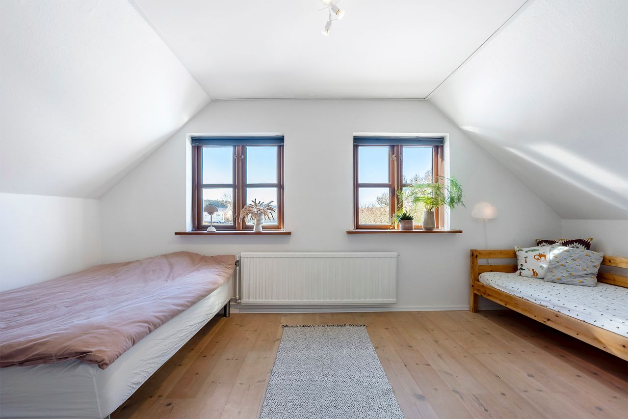 I stueetagen finder man desuden to værelser, et flot badeværelse med bruseniche, bryggers med egen indgang, samt et depot-/teknikrum.