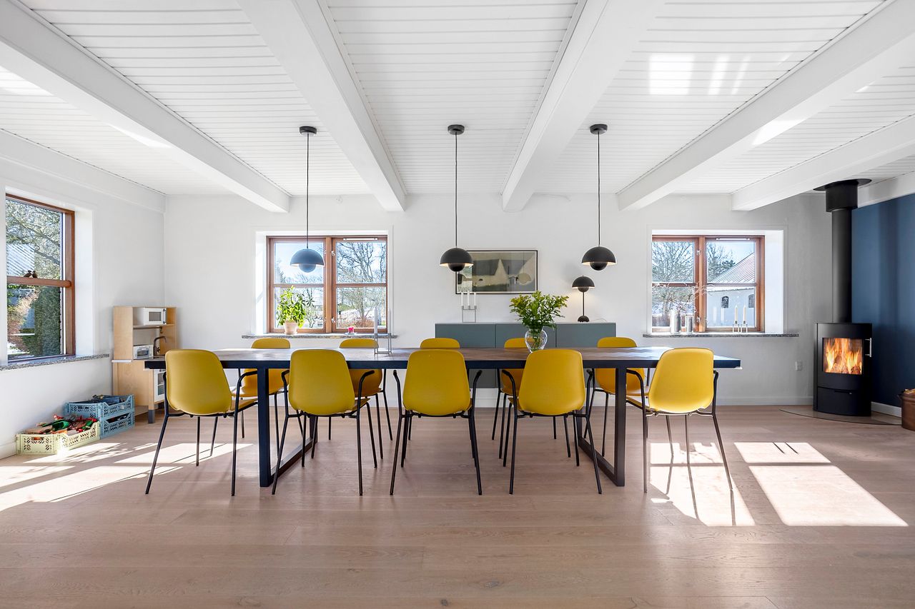 Ejendommen byder på 285 kvm fordelt på to plan, som løbende er moderniseret og fremstår i indflytningsklar stand.