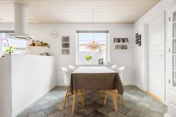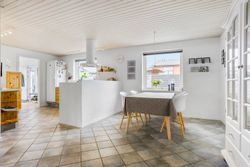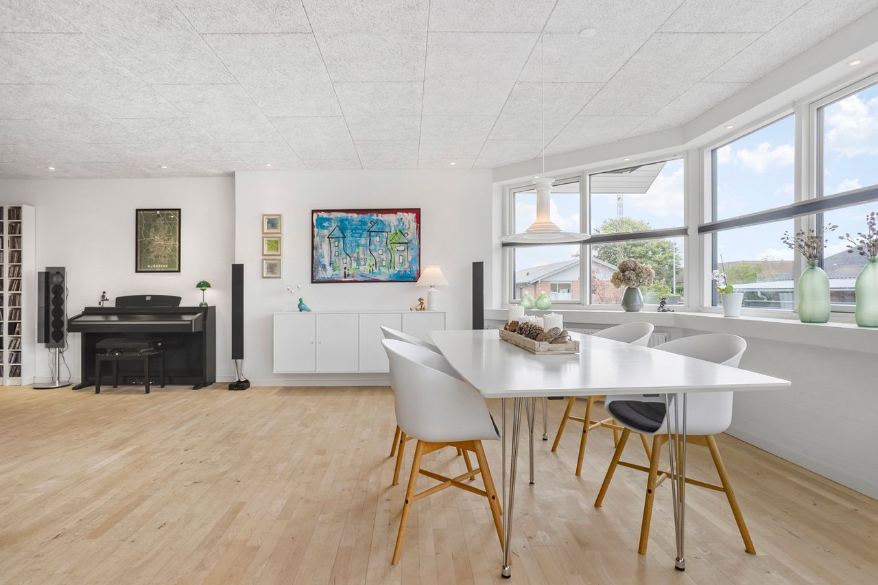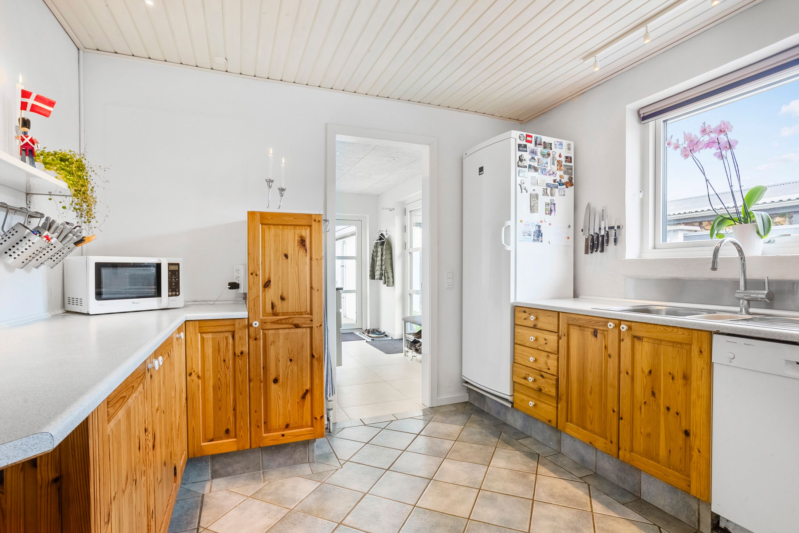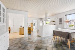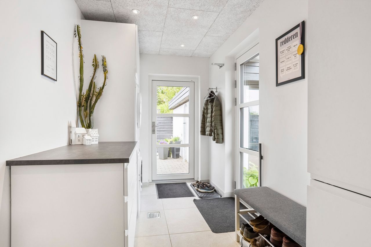 Boligen er indrettet med en praktisk entré/bryggers, et lyst og rummeligt køkken/alrum med spiseplads – perfekt til hverdagslivet og gæstebesøg. Køkkenet er fra IKEA og installeret i 2000. Fra alrummet er der adgang til et stilrent badeværelse fra 2014 med kvalitetsinventar fra Svane Køkkenet. Sidst men ikke mindst er der en stor stue med trægulve og troldtekt lofter som byder ind med sine akustiske egenskaber og naturlige udseende. Lofterne er også opsat i soveværelse og værelser og bryggers.
