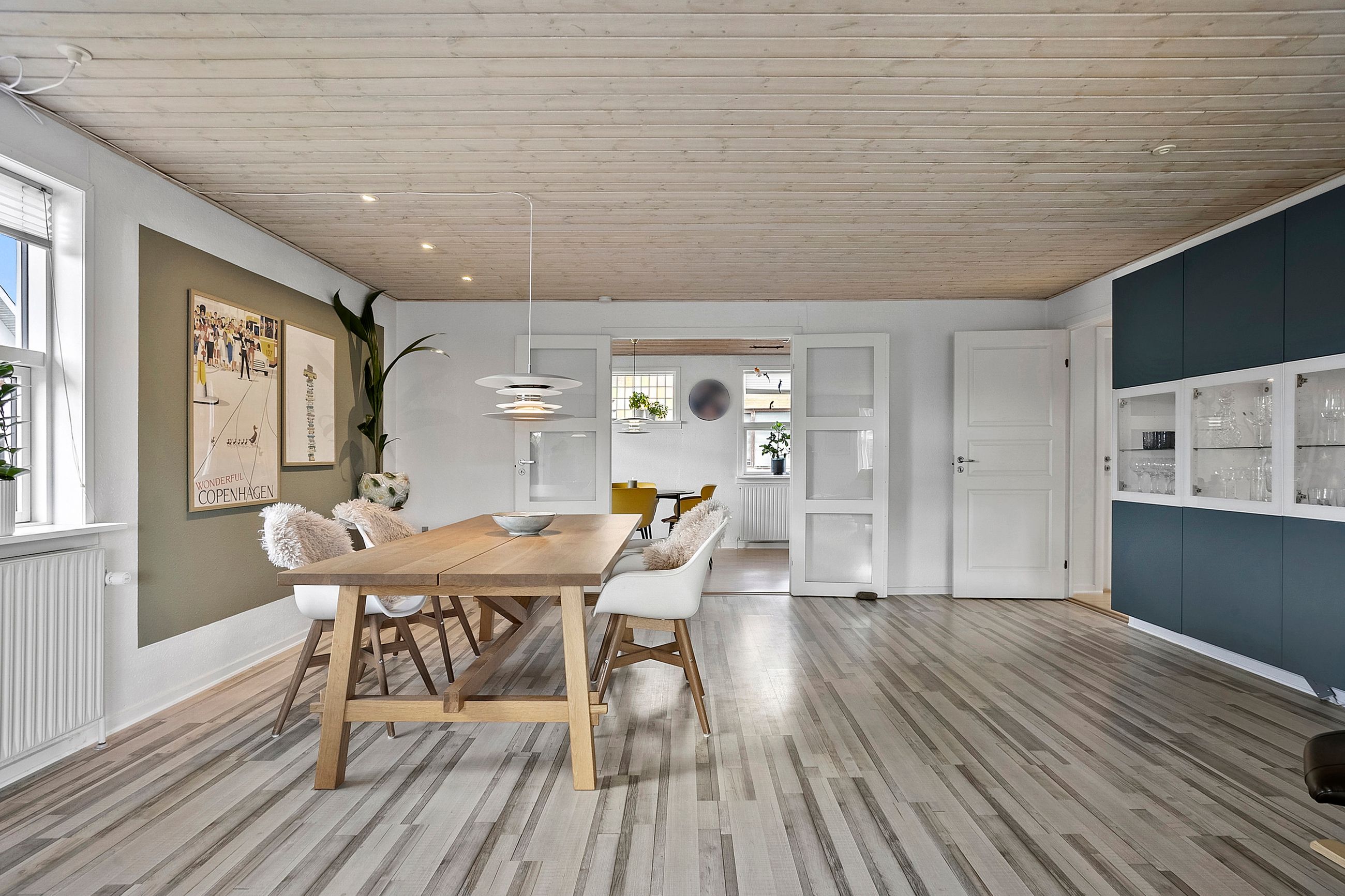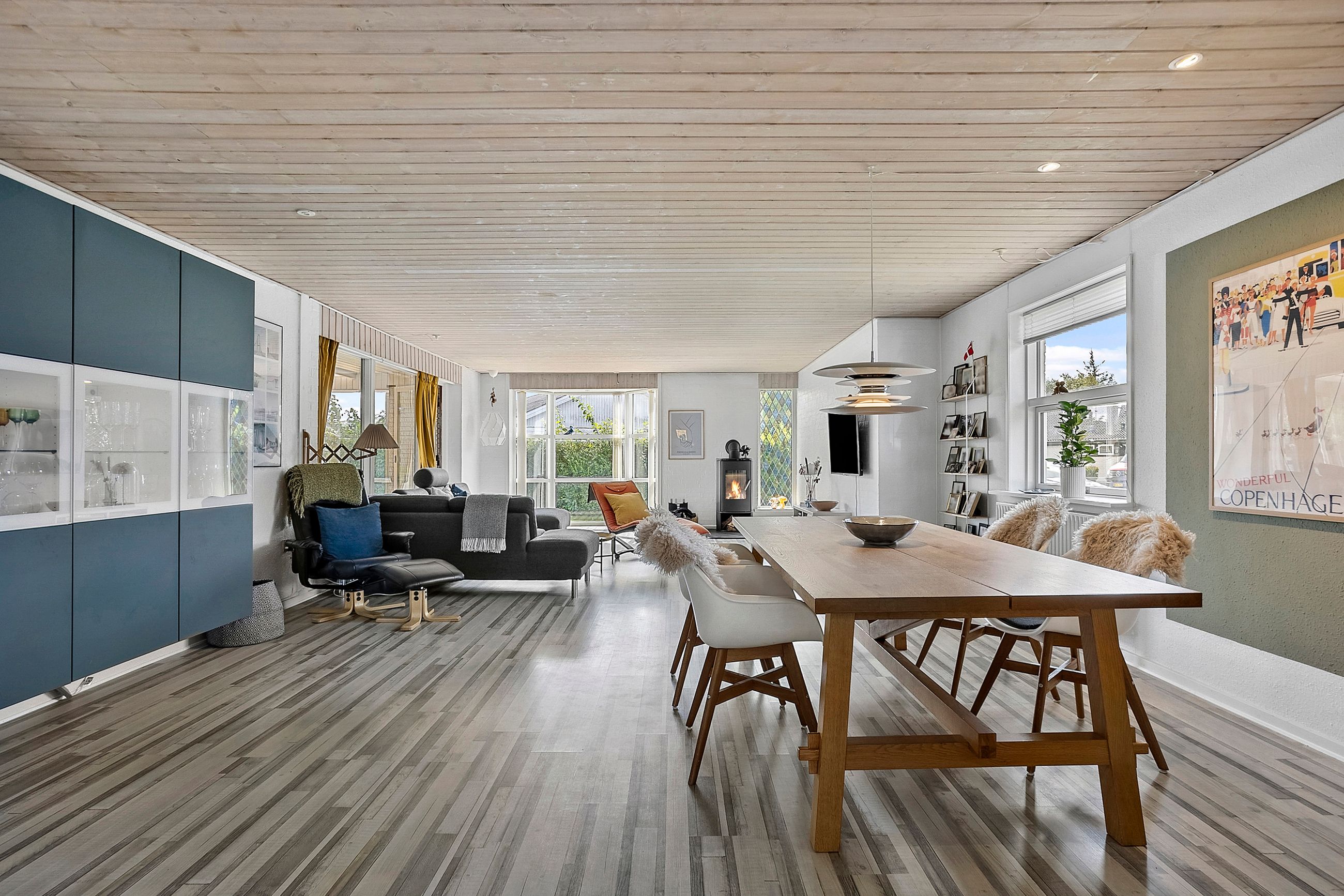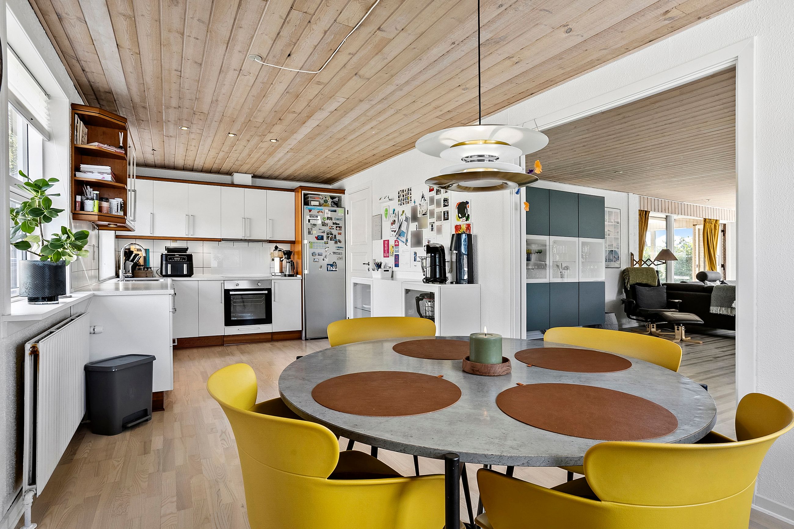 Husets hjerte er det store, åbne køkken-alrum, som ligger i direkte forbindelse med den lyse og indbydende stue. Her er der god plads til både hverdagsliv og større sammenkomster. Fra stuen er der udgang til en hyggelig udestue, som forlænger sæsonen og giver mulighed for at nyde haven året rundt.