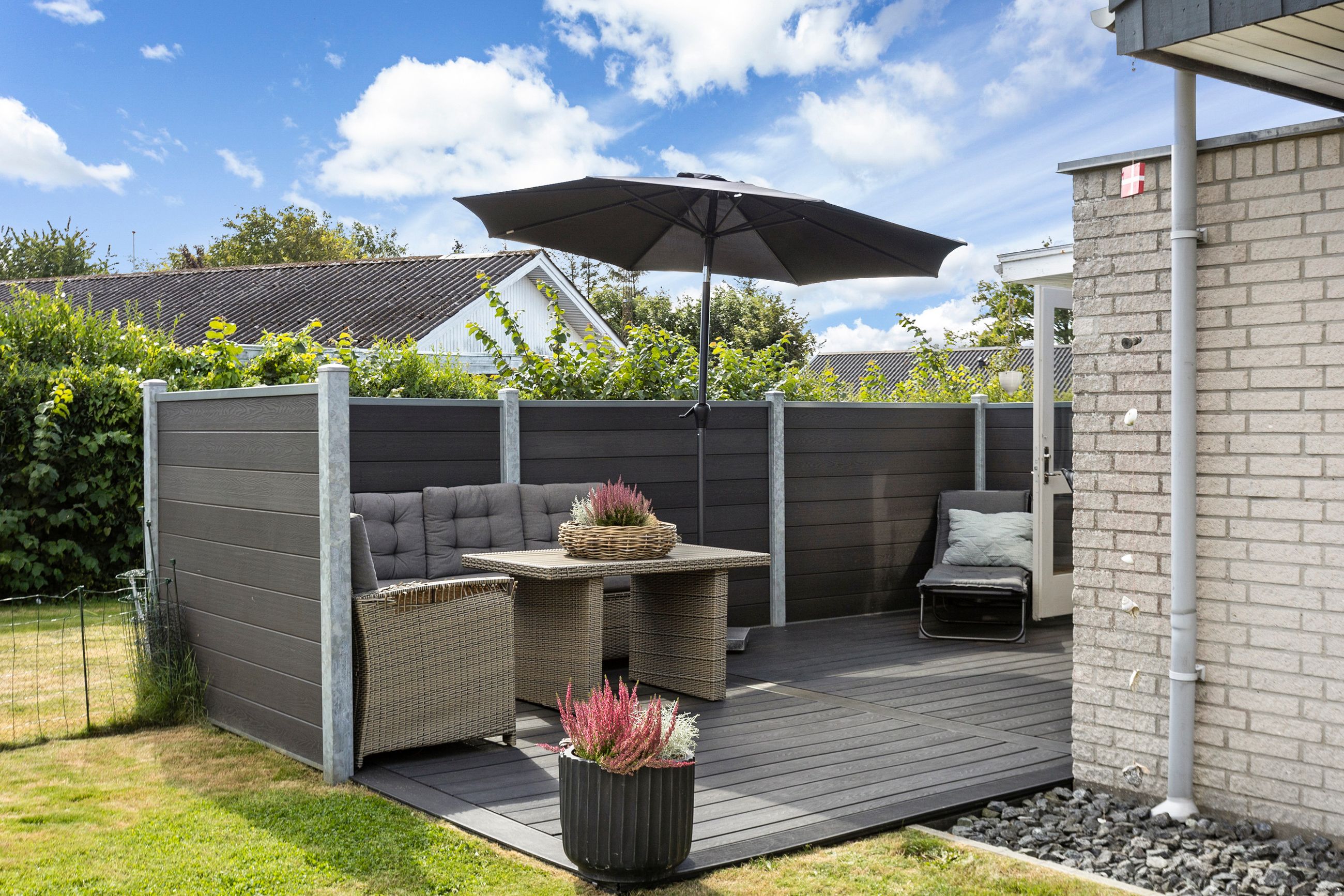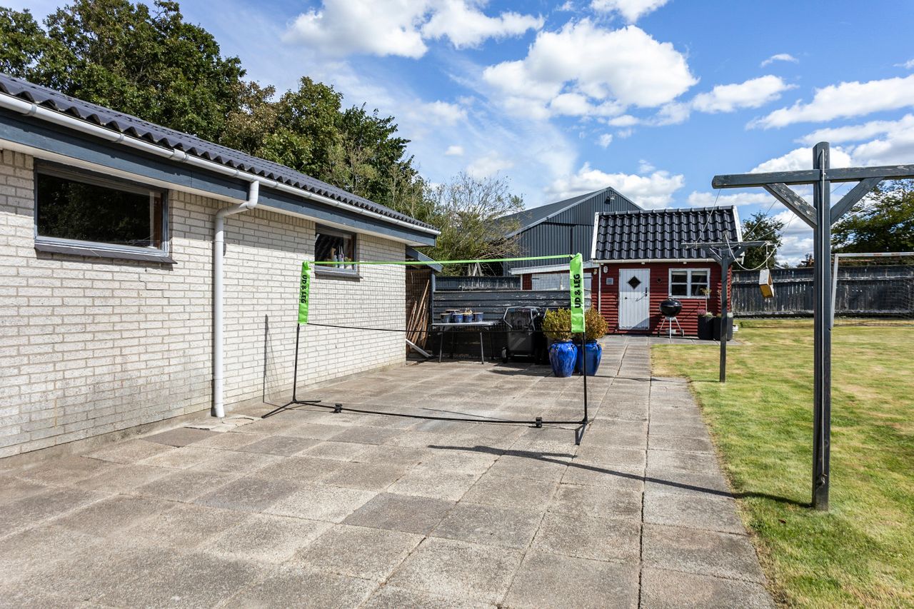 Udvendigt venter en dejlig grund på hele 962 m2 med plads til leg, udeliv og haveprojekter. Hertil hører en garage med el-port og nyt tag fra 2020.