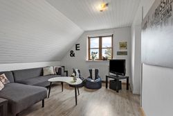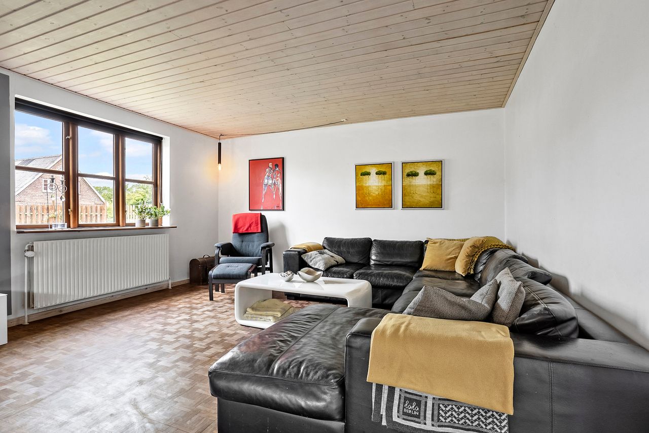 I forlængelse af køkkenet har man hyggelig stue, med udgang til terrasse.