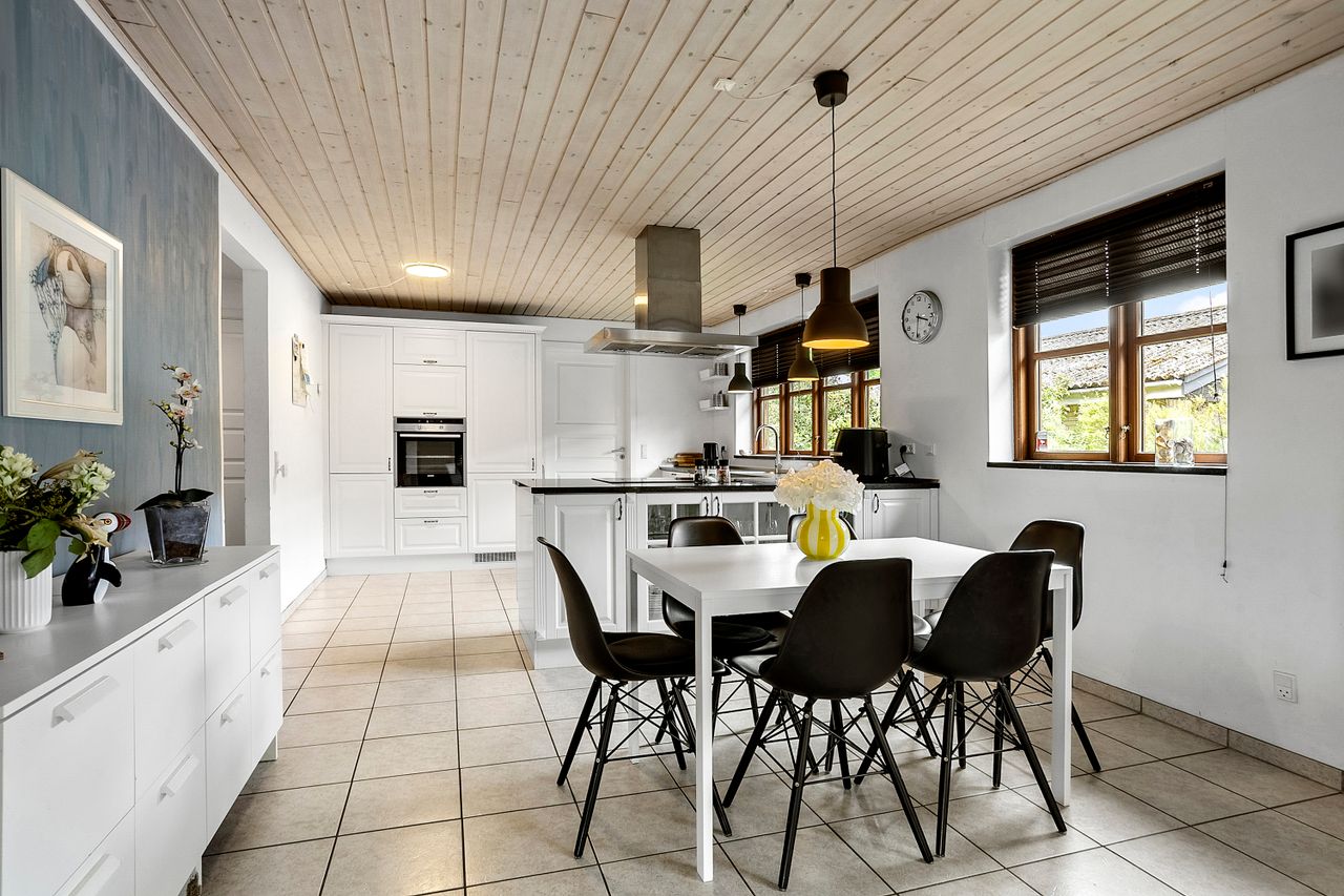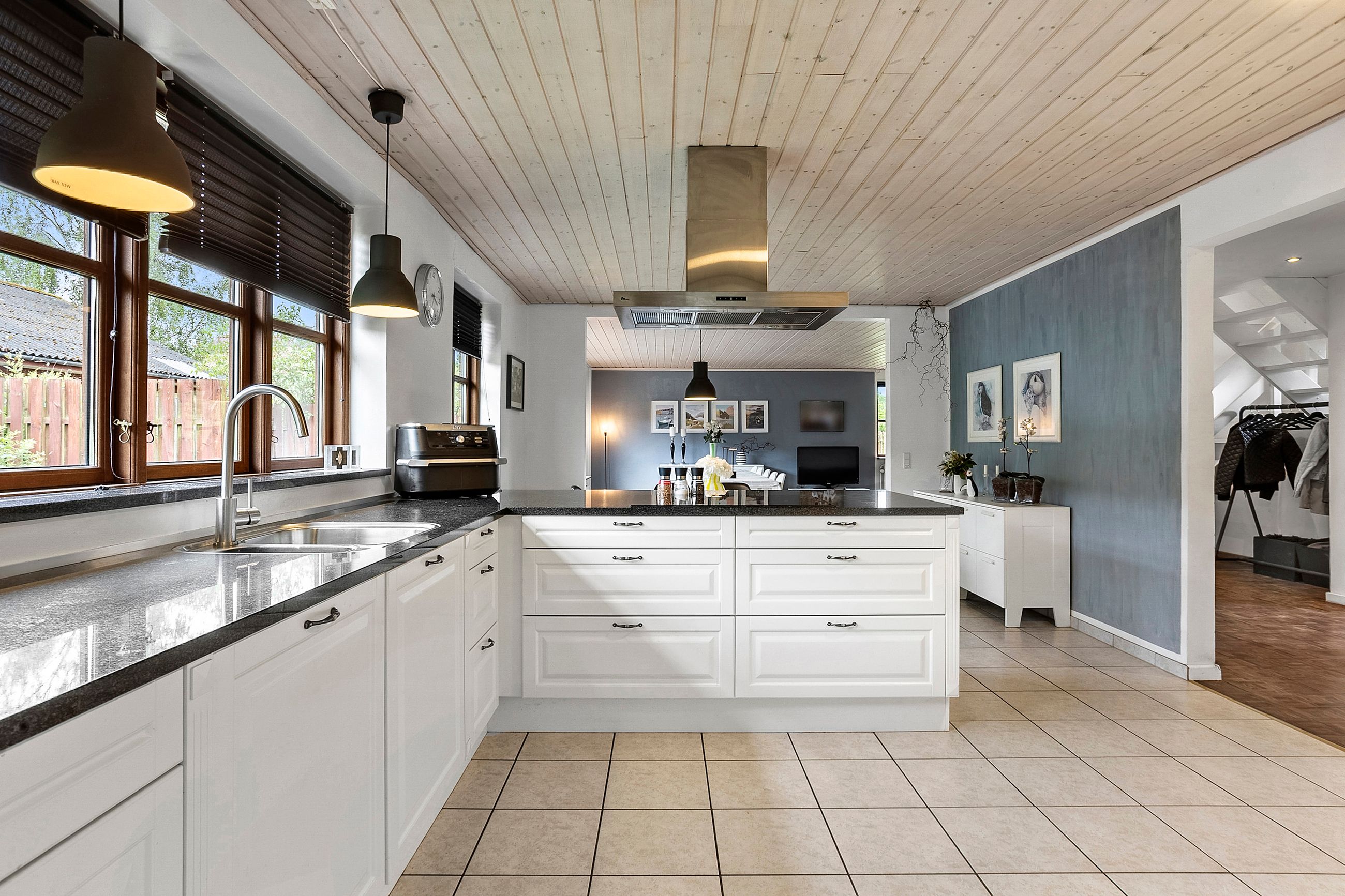 Husets samlingssted er det store lyse køkken-alrum fra 2016, hvor der er god plads til hele familien kan samles om madlavningen, eller rundt om spisebordet.