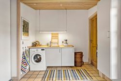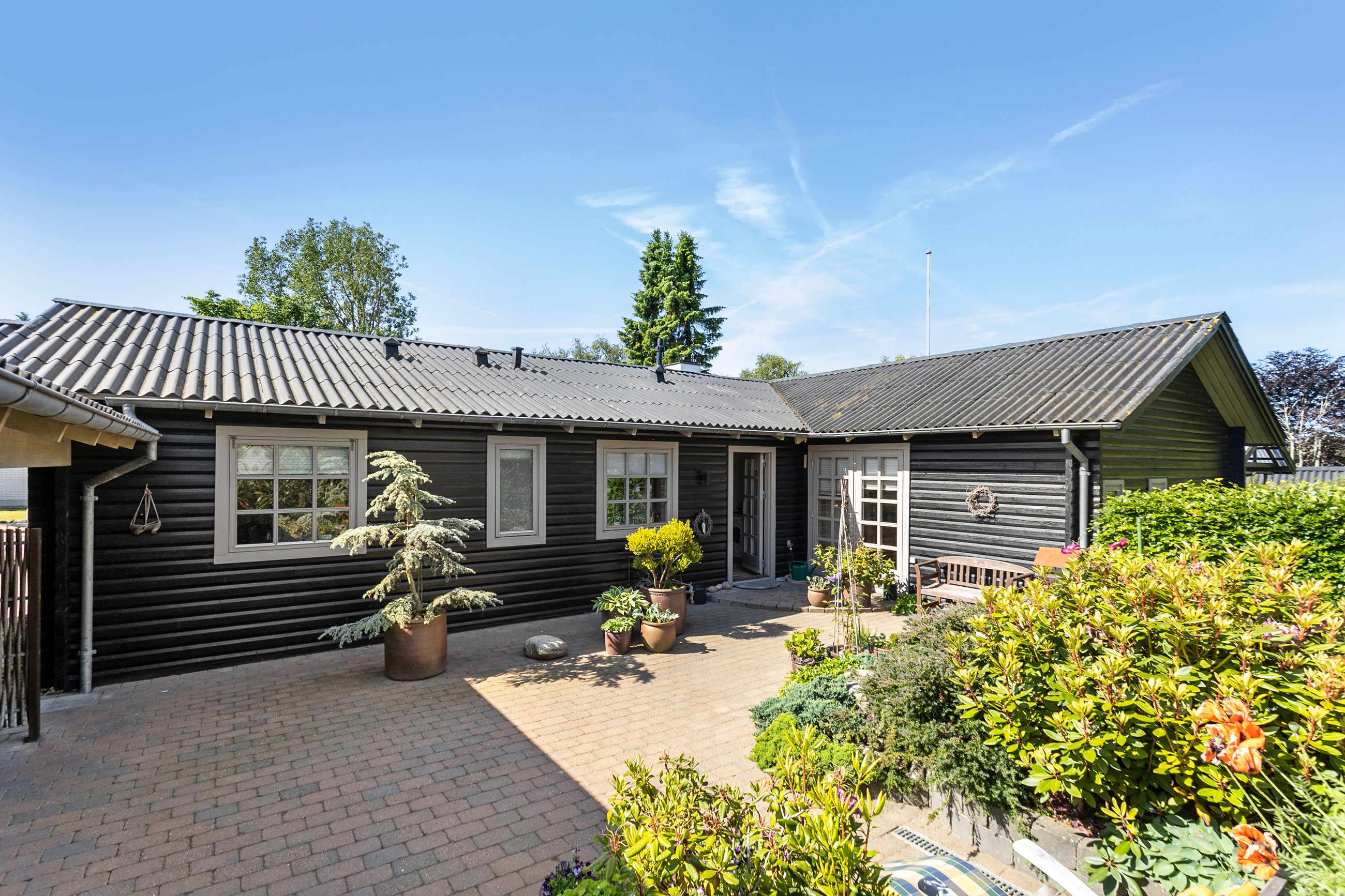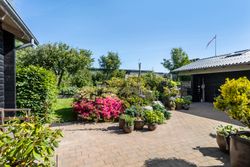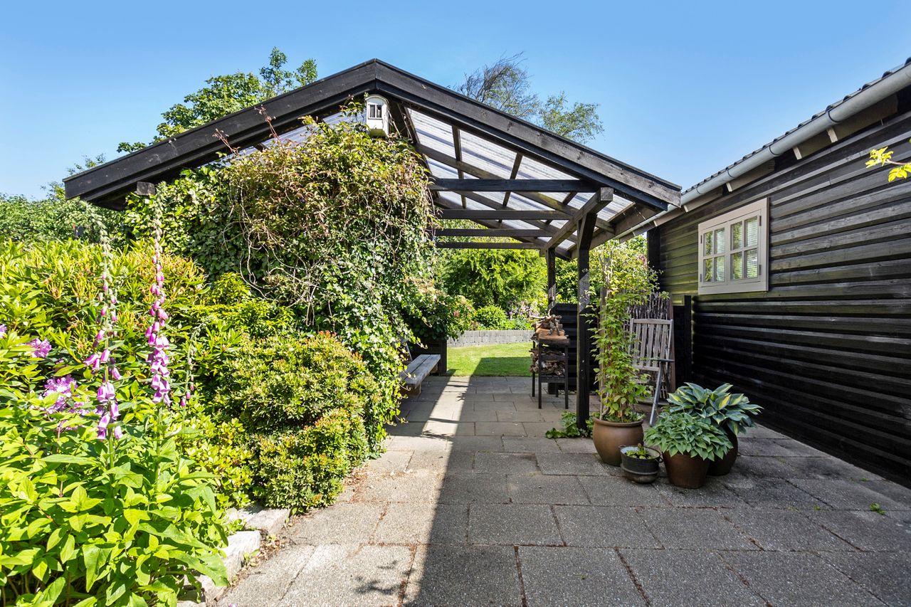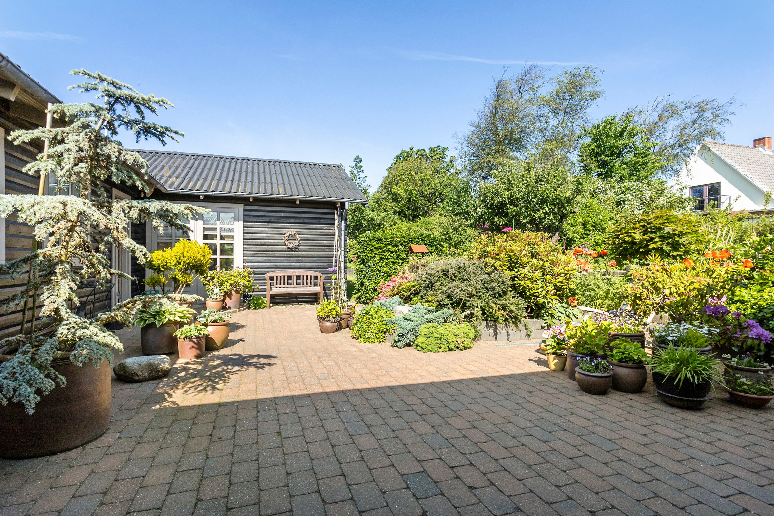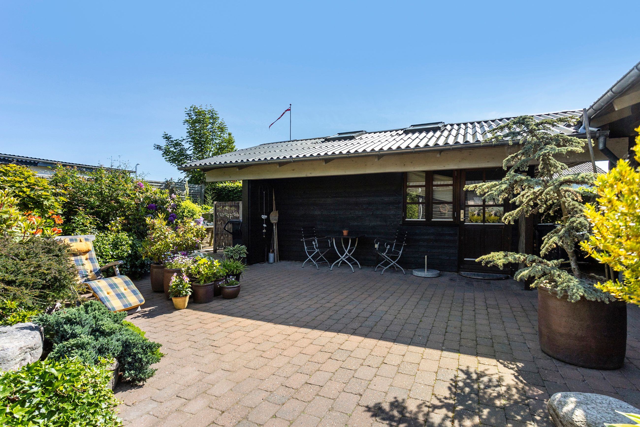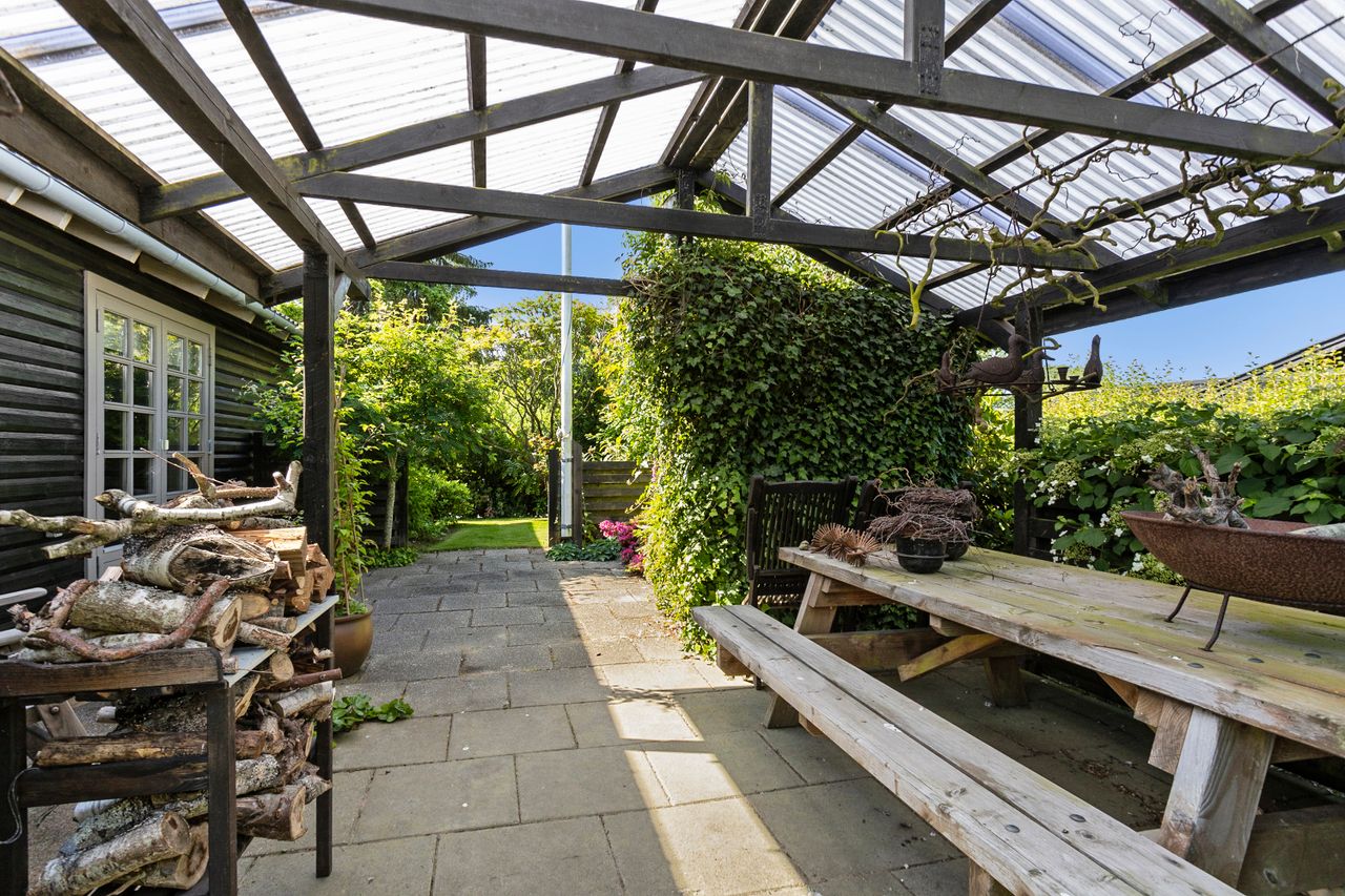 Et stort, praktisk bryggers forbinder huset med haven, som er noget helt særligt. Den 742 m2 store grund er anlagt med stor omhu – et væld af blomster og frodige planter vidner om en have i særklasse, hvor alt er velplejet og passet.