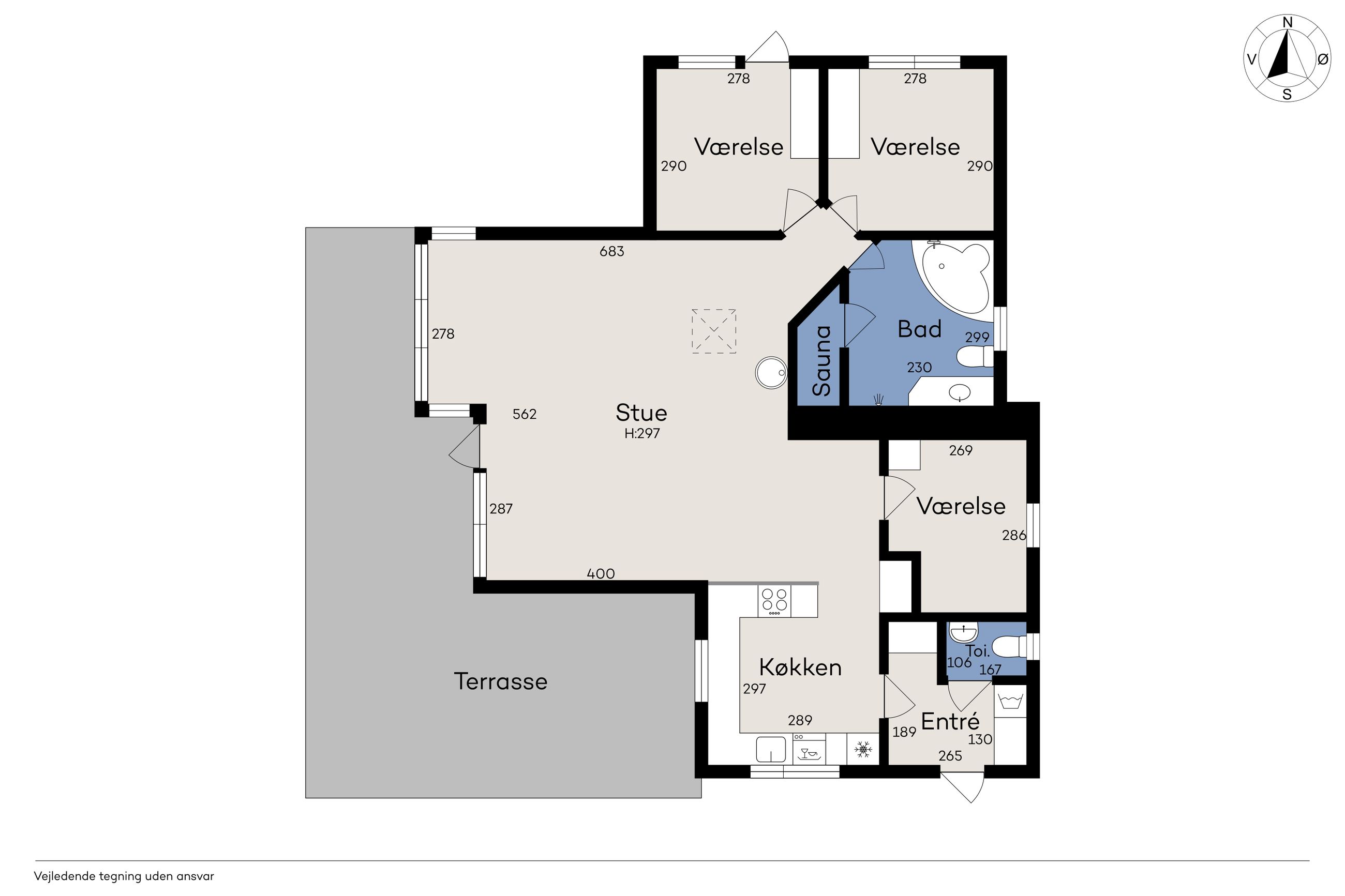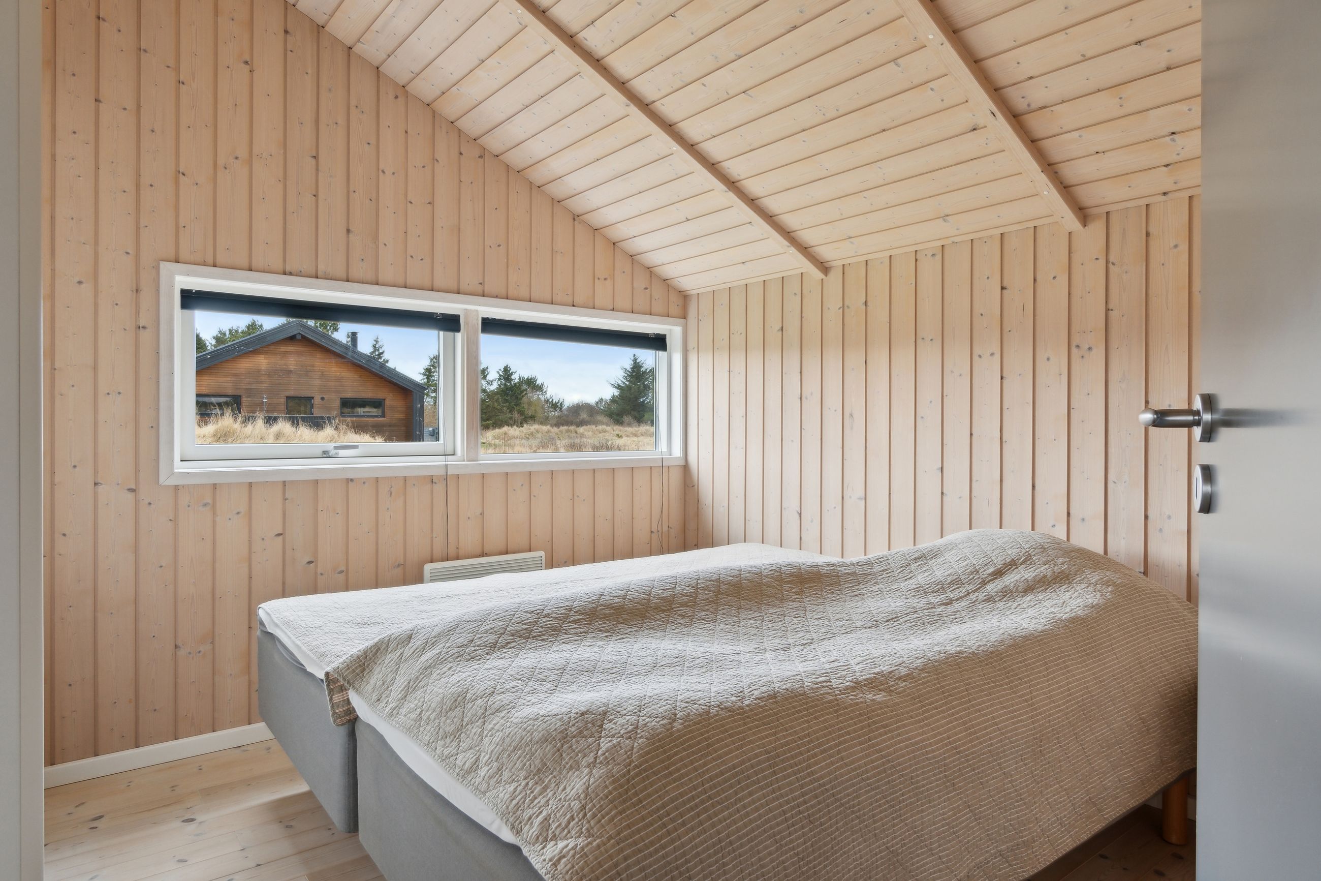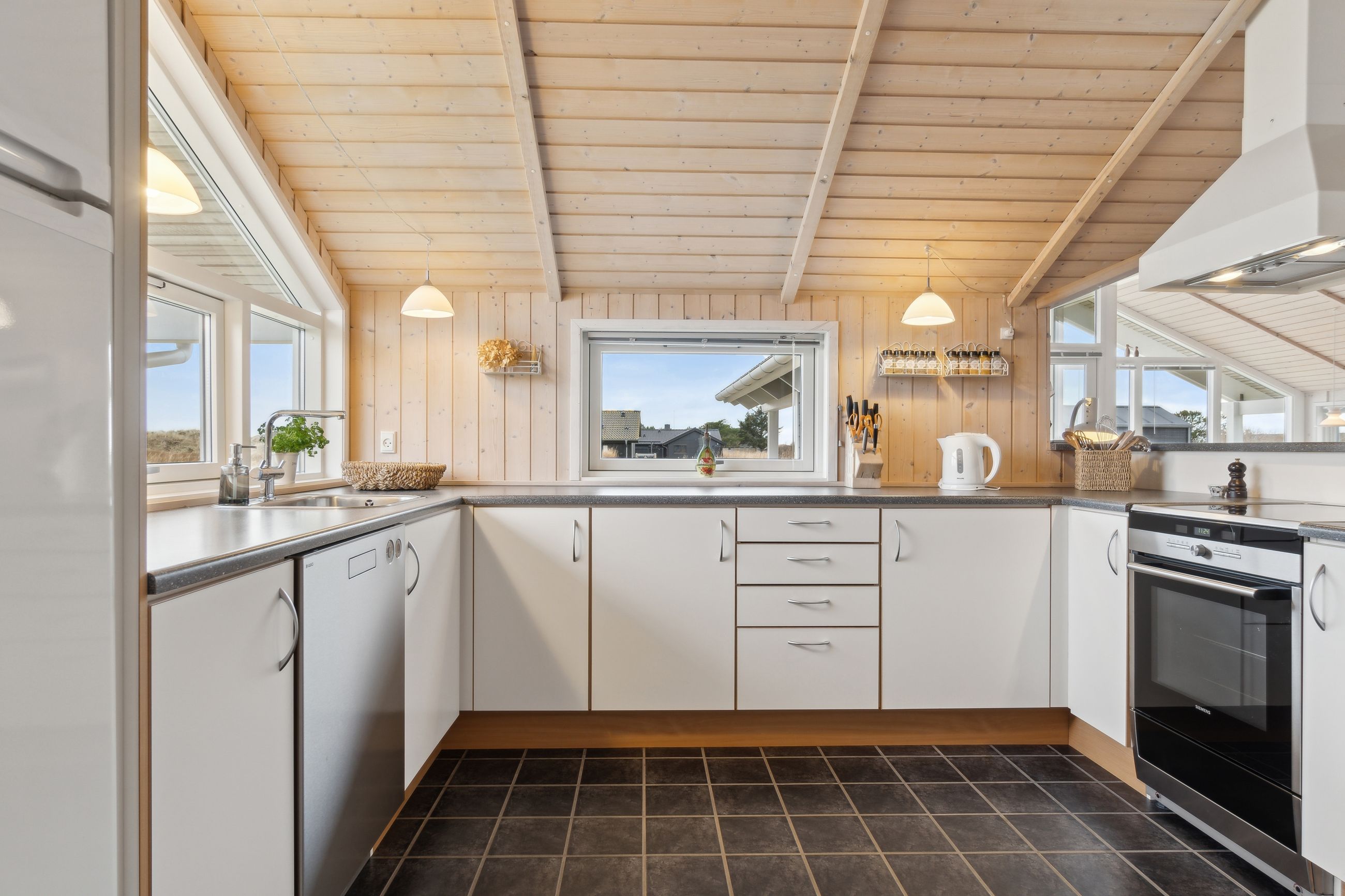 Boligen rummer 98 velindrettede kvadratmetern med tre gode værelser, badeværelser med badekar og sauna, gæstetoilet og et åbent opholdsrum, hvor køkken, spiseplads og stue smelter sammen i ét lyst og hyggeligt rum. Store vinduespartier inviterer naturen indenfor og giver et smukt lysindfald hele dagen, mens brændeovnen sørger for varme og stemning året rundt. Her er plads til både afslapning og samvær – hvad end du søger fredelige weekender, sommerferier med familien eller et sted at invitere gode venner til en weekend i naturens tegn.