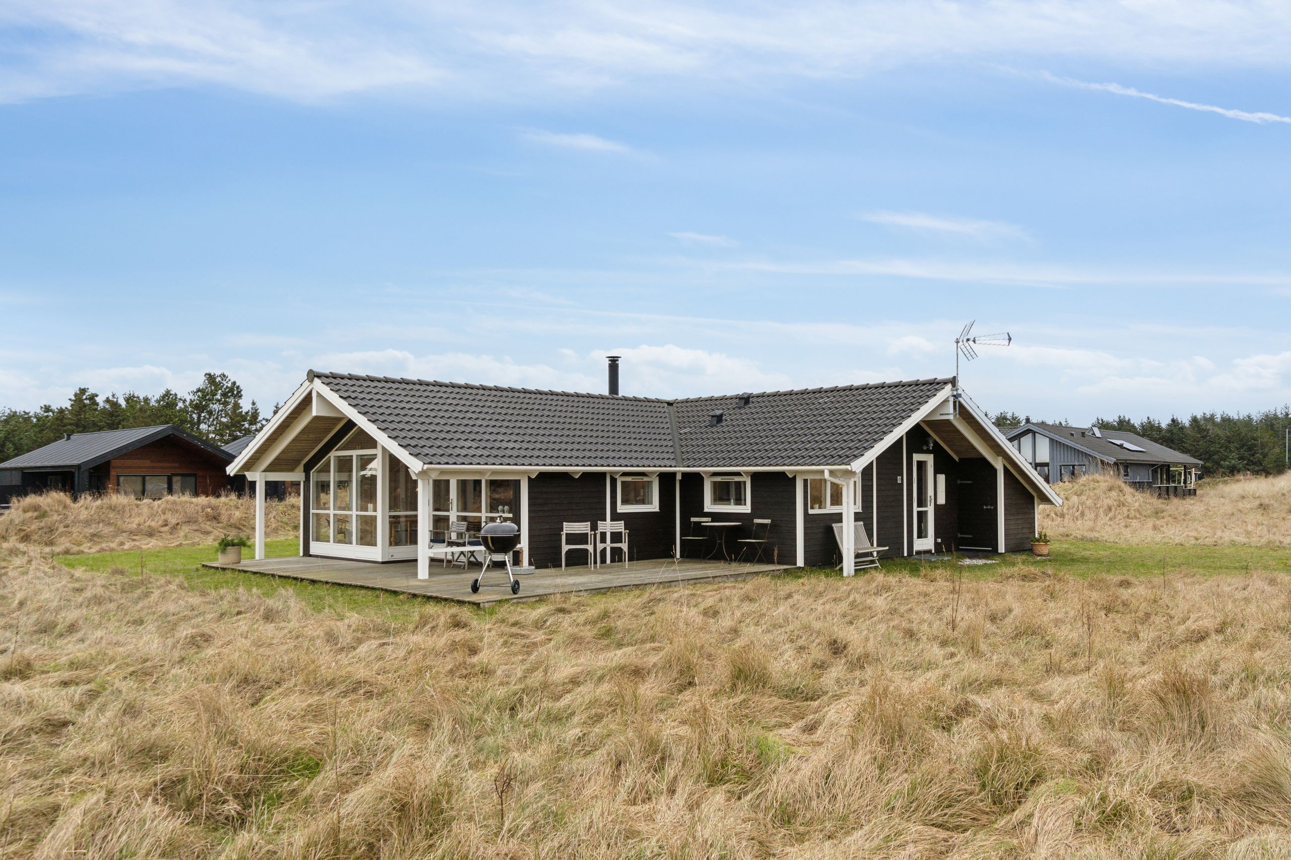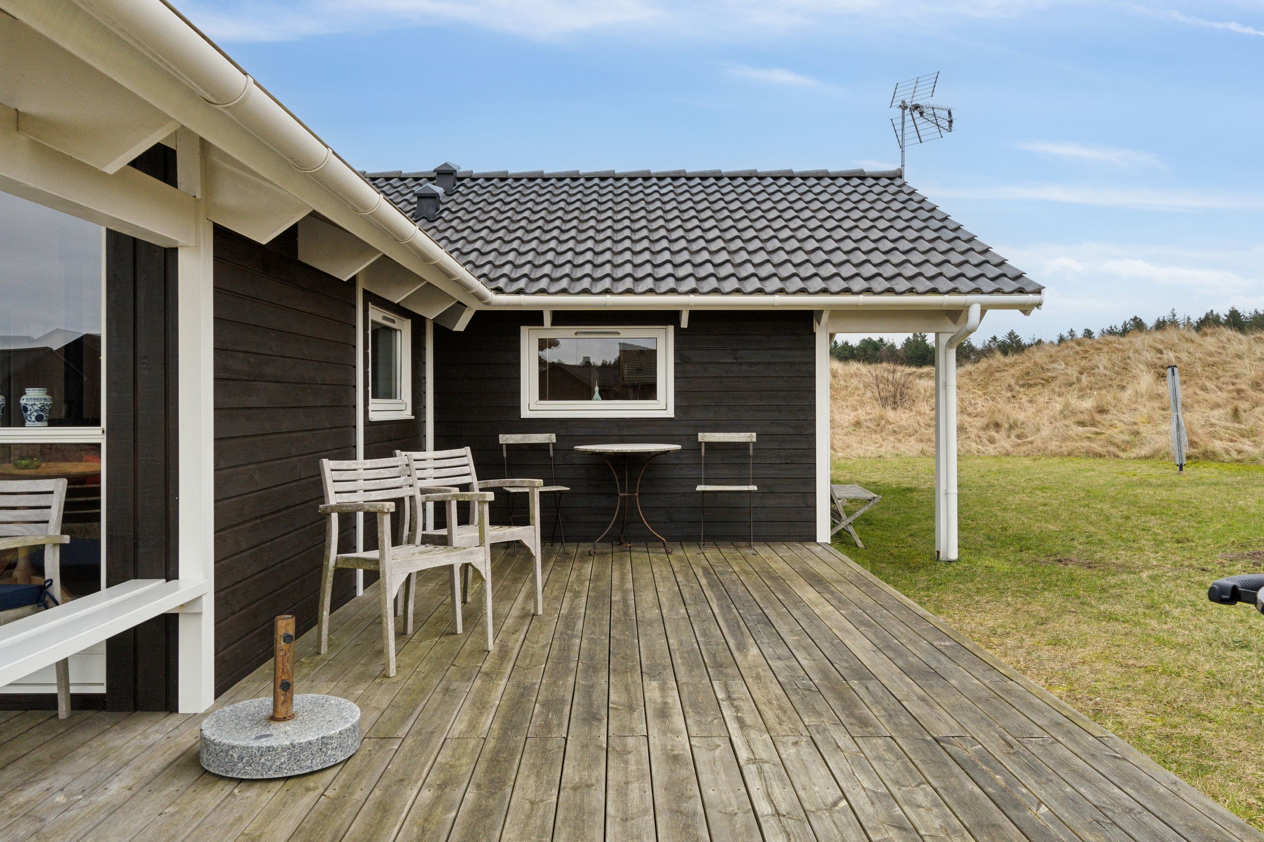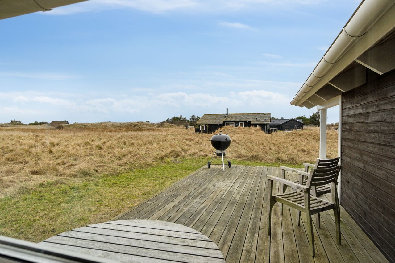 Velkommen til Mellemklitvej 17 - Et moderne og velholdt fritidshus fra 2005, der ligger midt i det smukke og kuperede klitområde kun få hundrede meter fra Vesterhavet. Huset er opført i klassiske materialer med træbeklædning og cementtag, og fremstår både indbydende og tidløst.