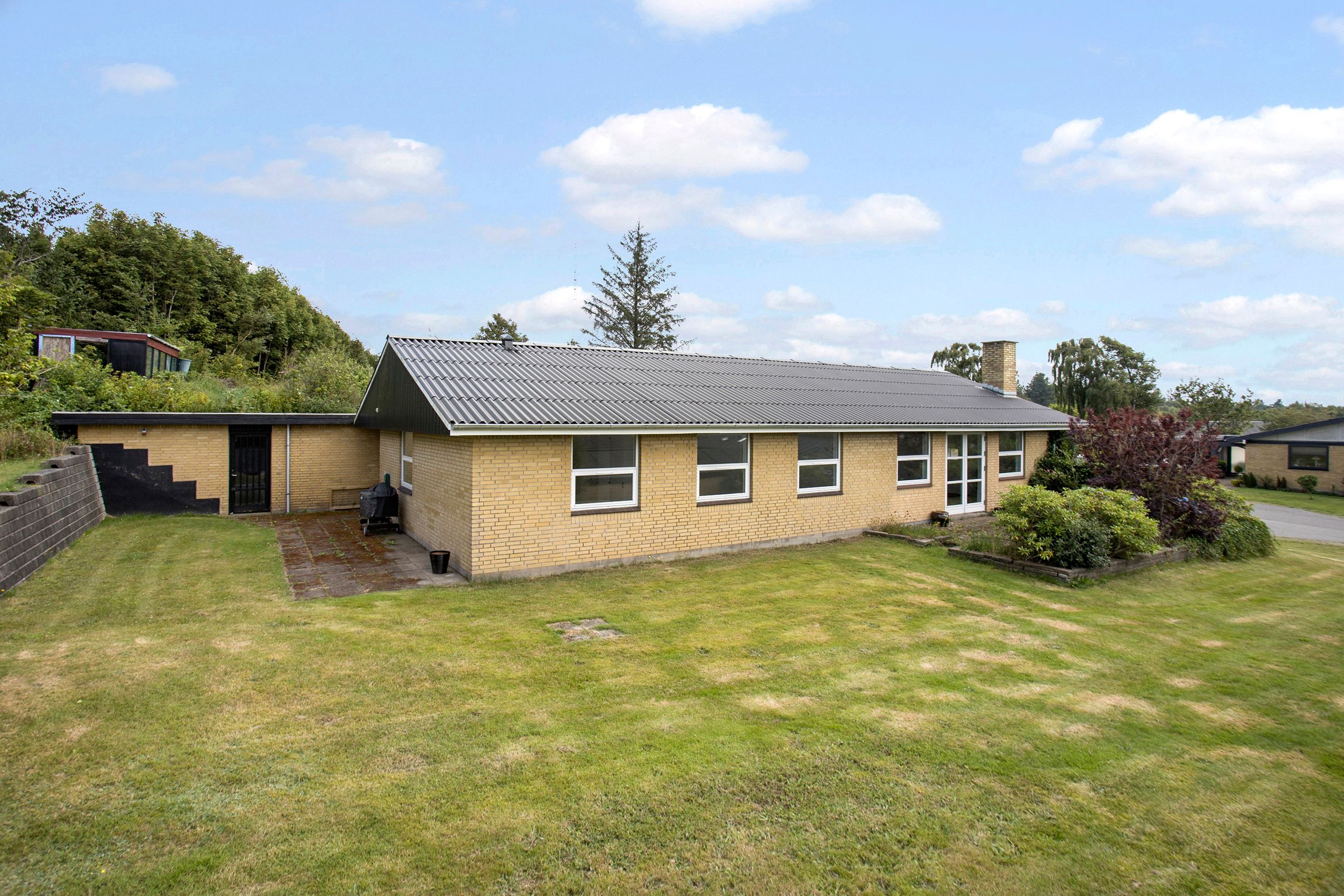 Villaen er omgivet af naturskønne områder, hvor bakkelandskabet starter blot 50 meter fra grunden – perfekt til gåture og friluftsliv. Her får du trygge omgivelser med nærhed, fællesskab og privatliv i harmoni.