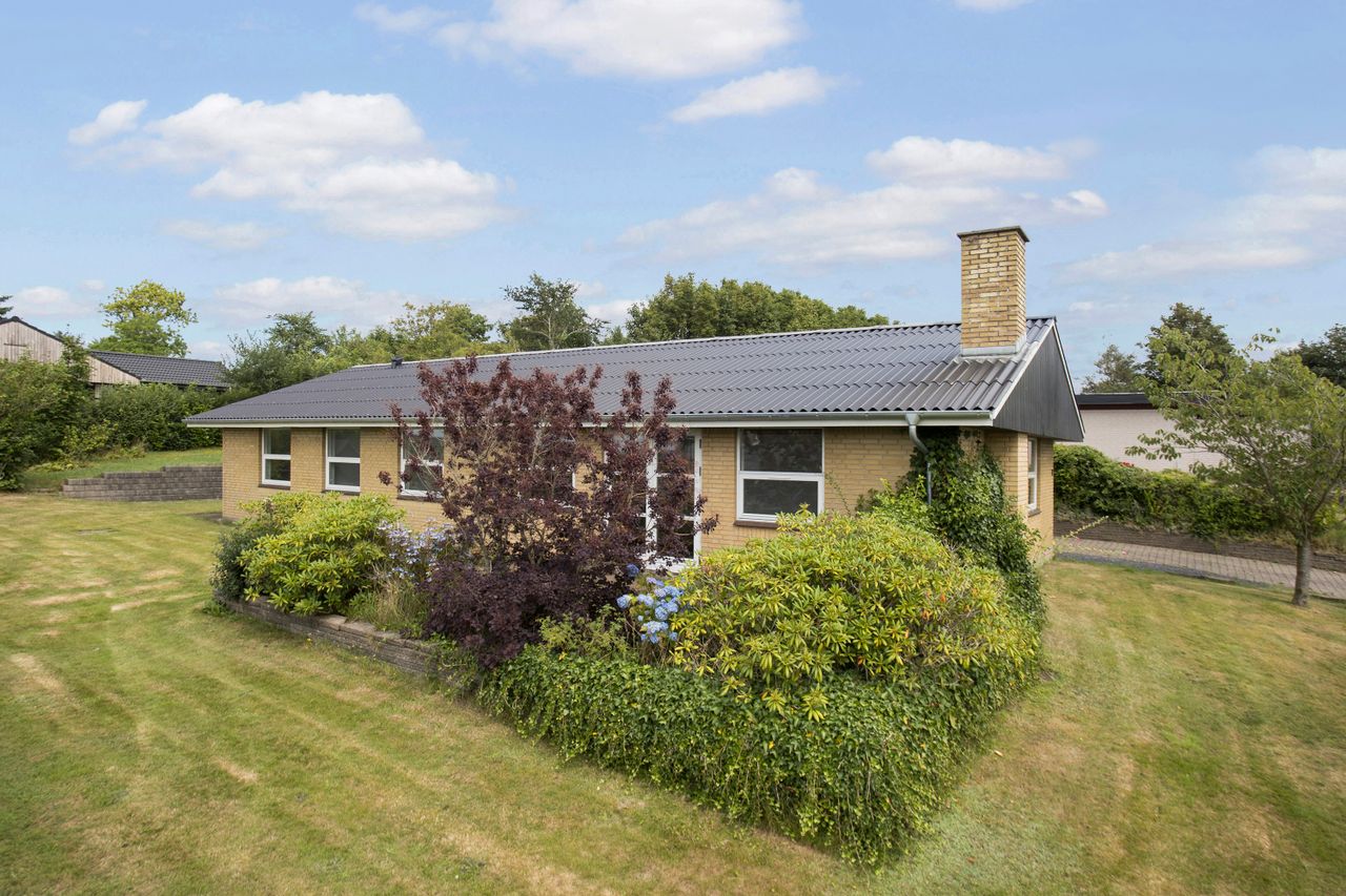 Velkommen til denne velindrettede og rummelige etplansvilla fra 1972, beliggende for enden af en rolig villavej i den eftertragtede bydel Bjergby – kun 6 km nord for Hjørring. Villaen har netop i 2025 fået nyt eternittag uden asbest, hvilket er en væsentlig forbedring og giver boligen et moderne løft.