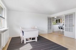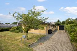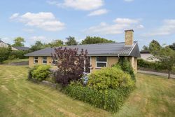 Indenfor byder boligen på en rummelig og funktionel planløsning med entré, praktisk bryggers, lyst køkken-alrum, stor stue med brændeovn og udgang til en vestvendt terrasse. Boligen rummer tre gode børneværelser, et stilfuldt badeværelse med gulvvarme samt separat soveværelse med tilhørende gæstetoilet.