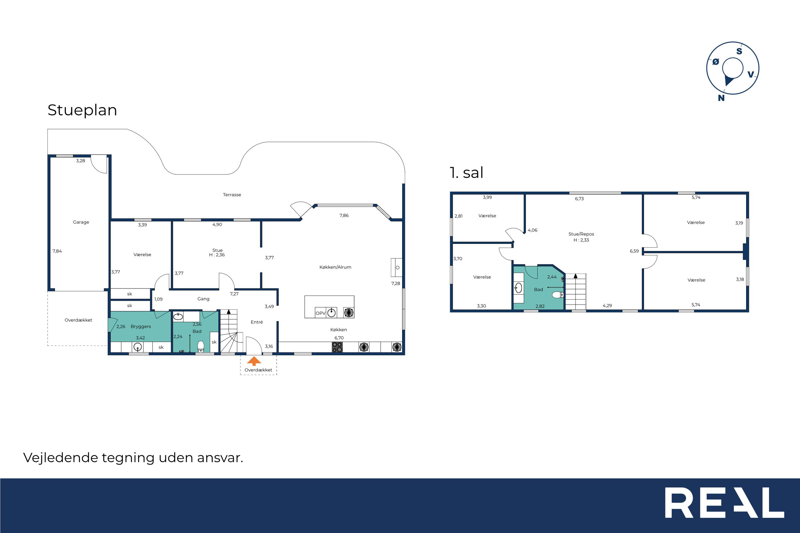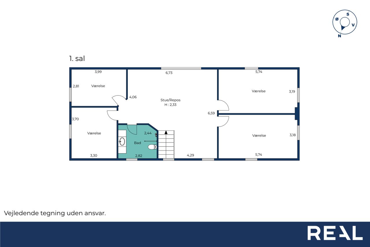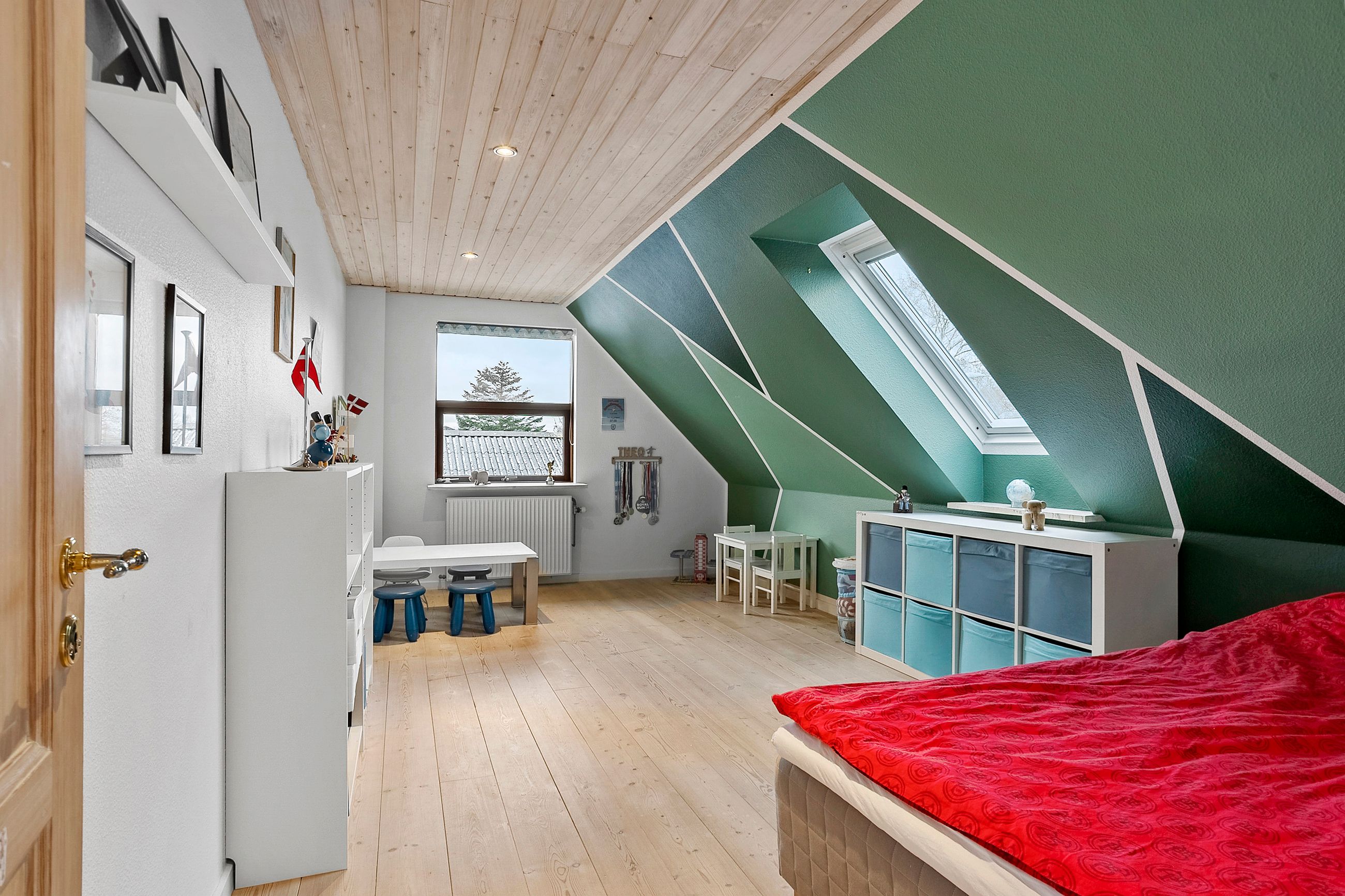 Overetagen består af et lyst og rummeligt repos, der kan bruges som ekstra opholdsstue, multirum eller legerum afhængigt af familiens behov. Hertil kommer fire store værelser samt et badeværelse, som er gennemgribende renoveret i 2025 og fremstår helt nyt og tidssvarende. Det giver et moderne og komfortabelt supplement til boligens øvrige faciliteter.