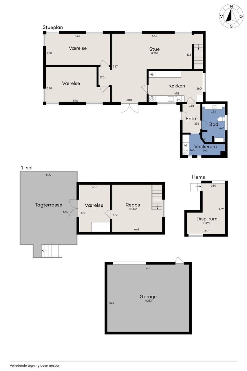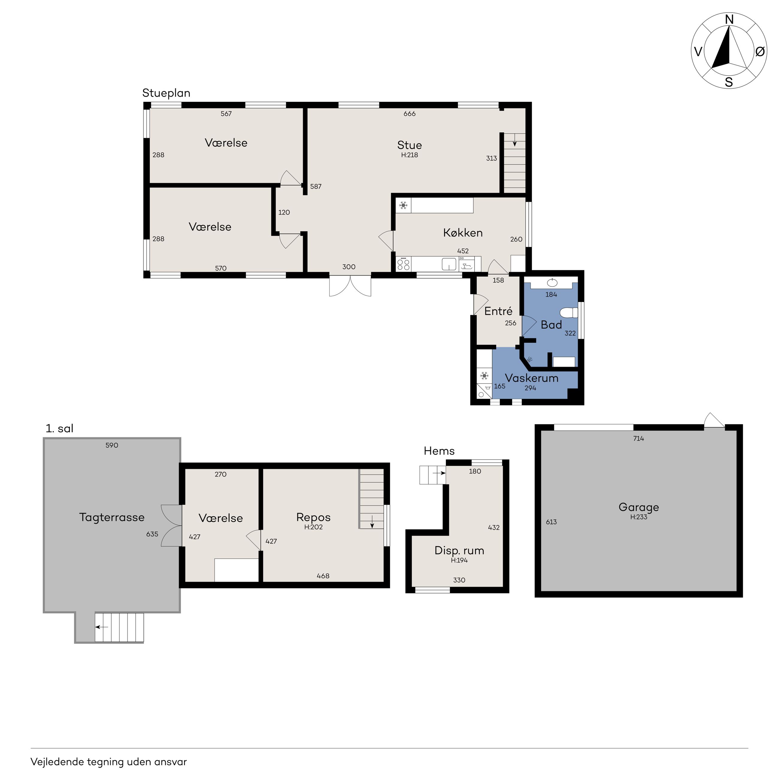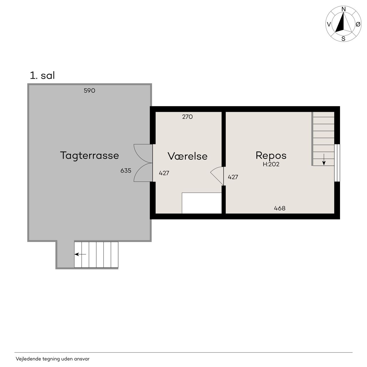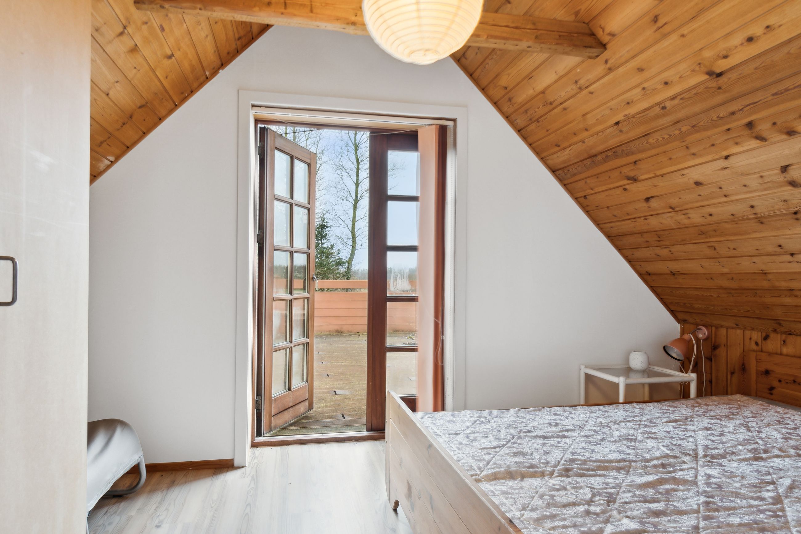 Boligen rummer 144 kvm fordelt på to plan. I stueplan finder du to gode værelser, et badeværelse med gulvvarme, et praktisk bryggers med vaskesøjle samt et lyst og åbent køkken-alrum, der fungerer som hjemmets naturlige samlingspunkt. På førstesalen ligger et rummeligt soveværelse med udgang til en stor altan samt en repos, der binder etagen smukt sammen.