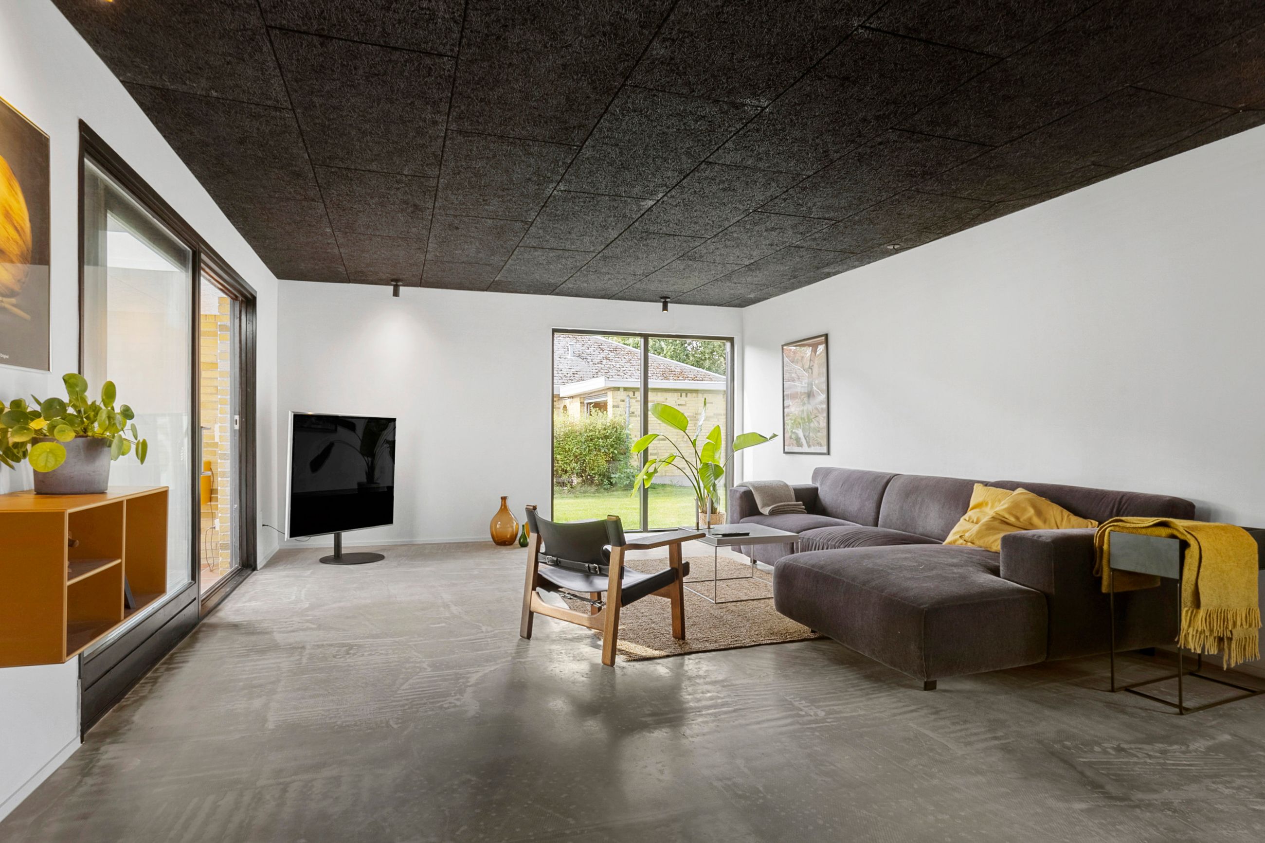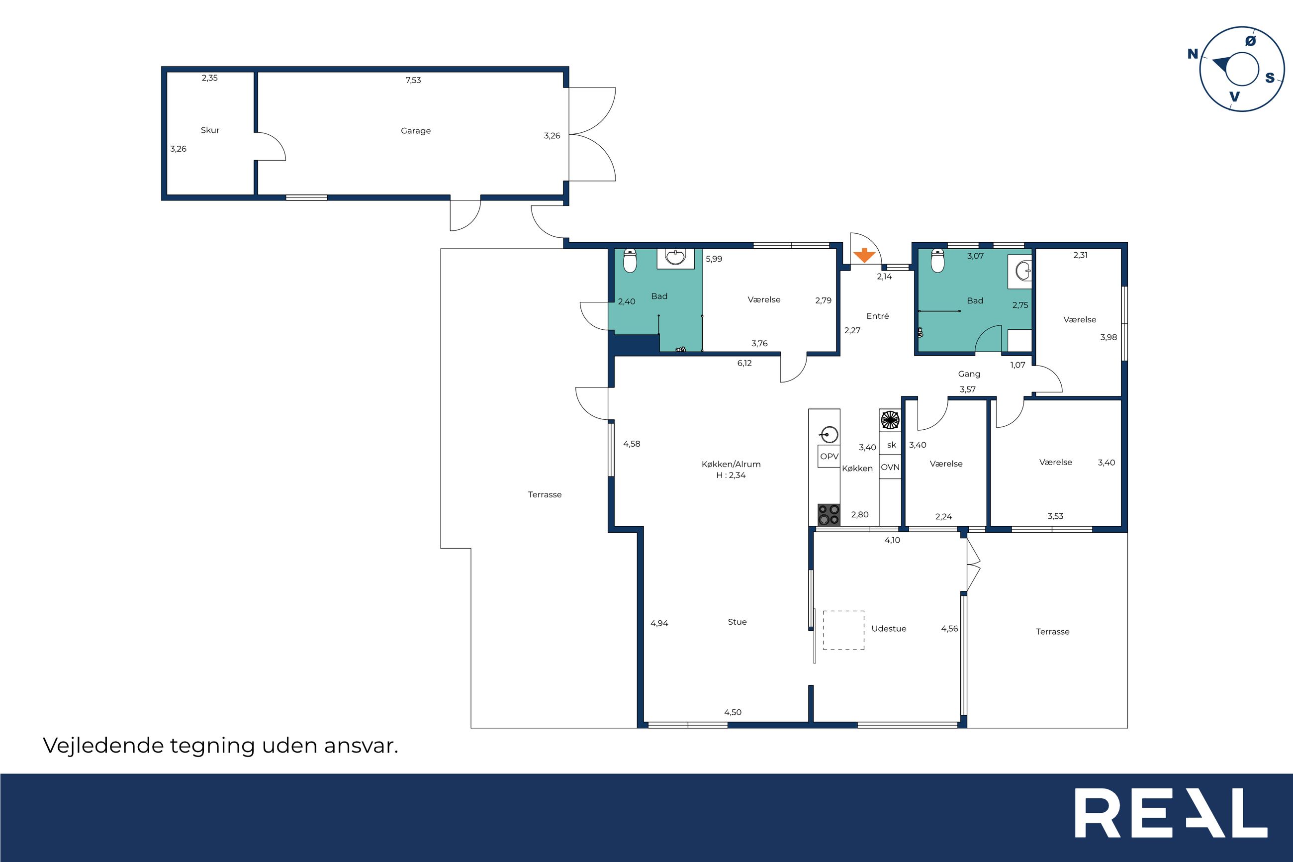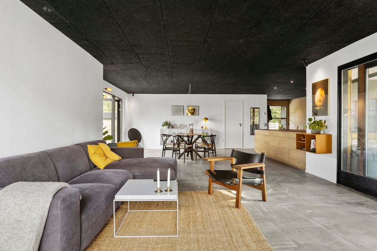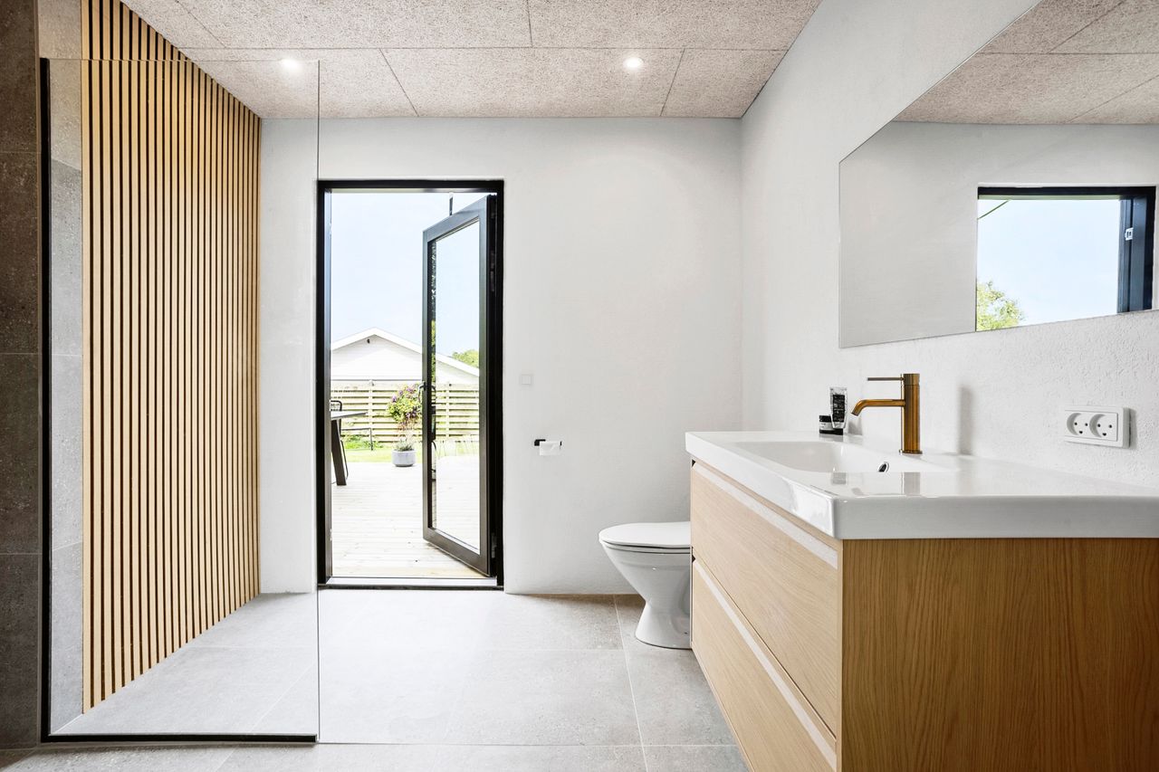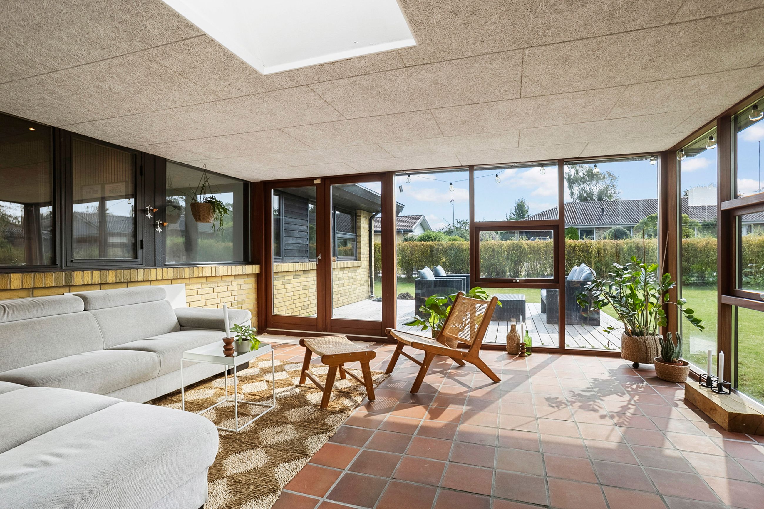 Boligen byder på entre, som åbner op til et stort og lyst køkken-alrum med god plads til både madlavning og samvær. Herfra er der direkte udgang til en skøn træterrasse. i forlængelse af køkken har man stuen som har udgang til en hyggelig udestue, der forlænger udesæsonen og giver mulighed for afslapning i grønne omgivelser.