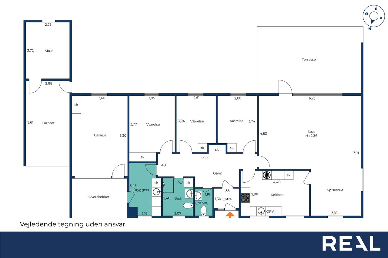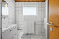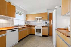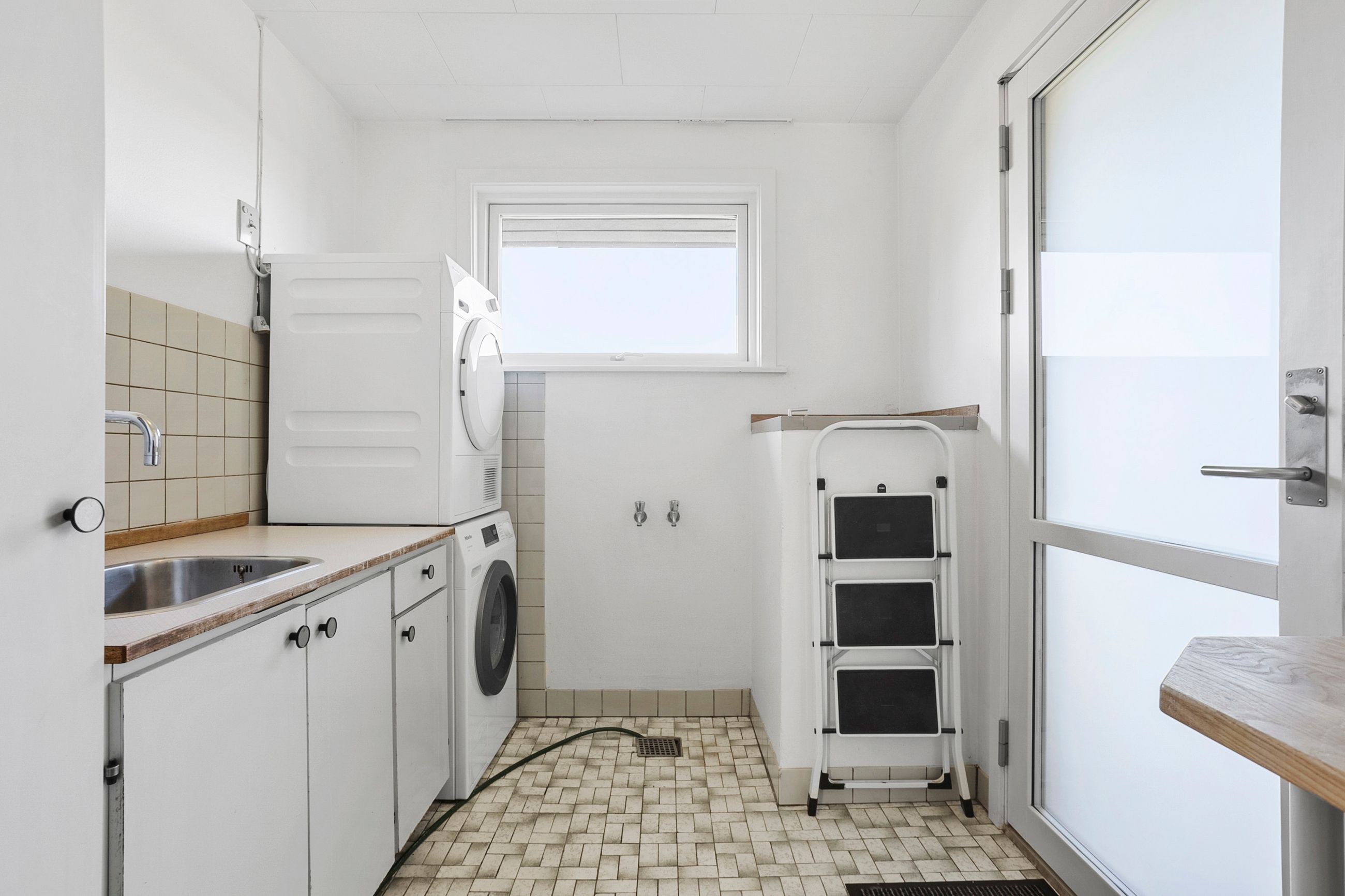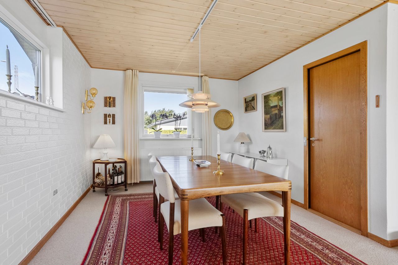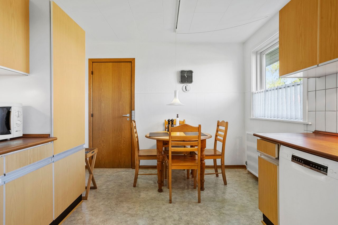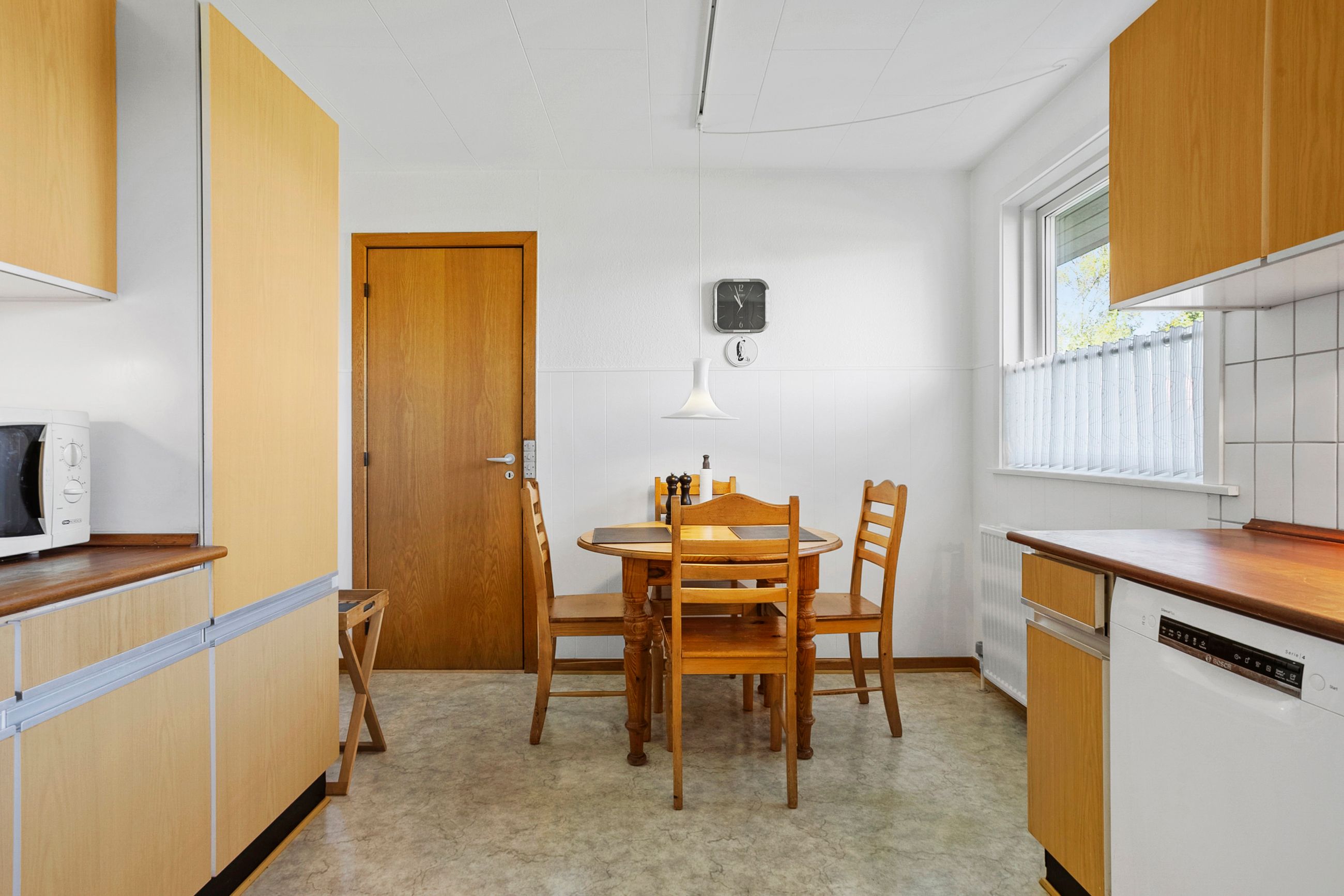 Køkkenet er oprindeligt men funktionelt og har god spiseplads tæt på spisestuen. Boligen rummer desuden både gæstetoilet og badeværelse, placeret praktisk i forhold til værelserne. I bryggerset er der plads til hverdagens gøremål, og med en indbygget garage på 23 kvadratmeter kan du gå tørskoet ind i huset via en lille overdækning. Derudover får du en carport på 34 kvadratmeter, hvoraf 14 kvadratmeter er indbygget som et praktisk udhus/skur med god plads til opbevaring.