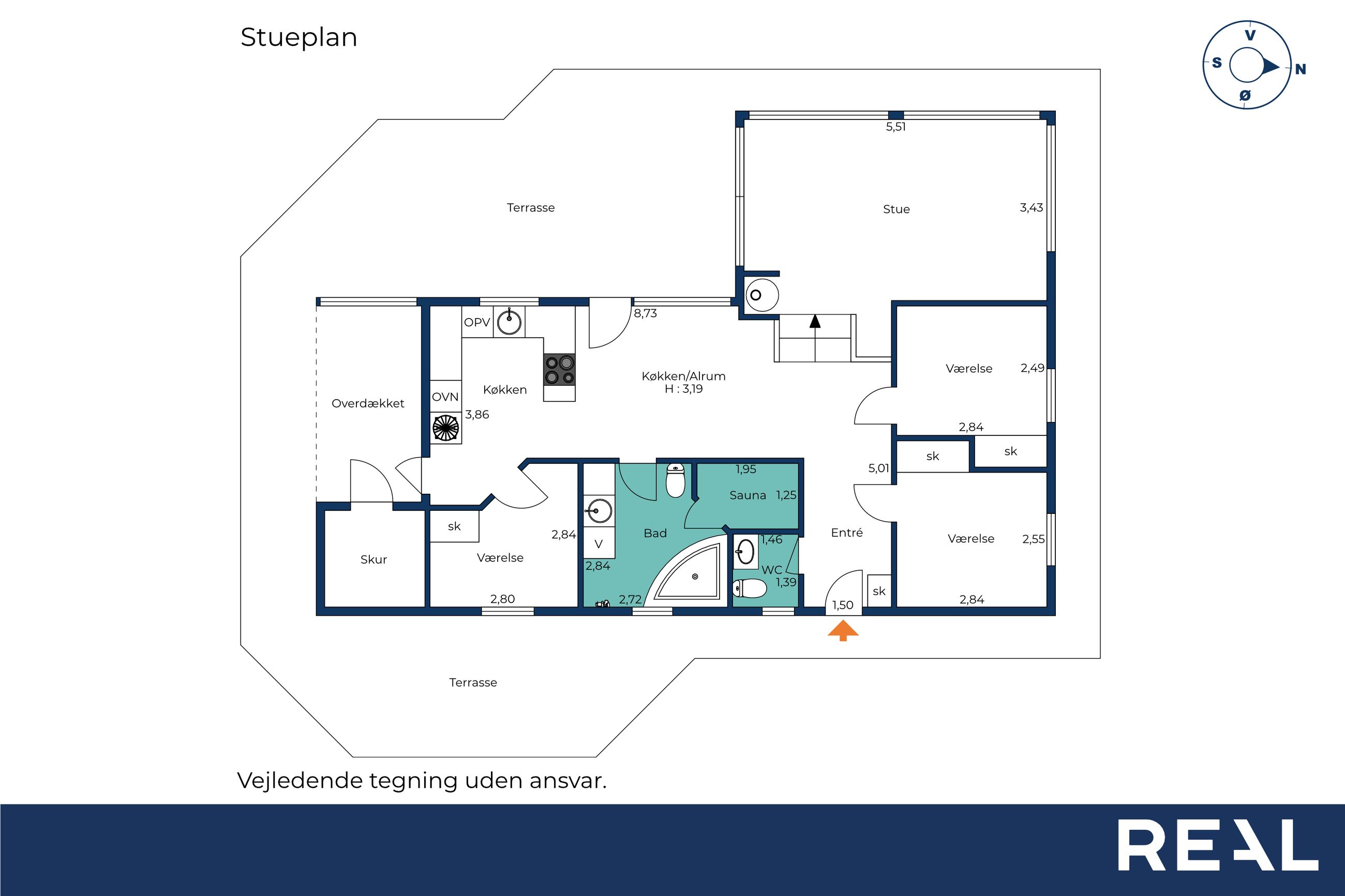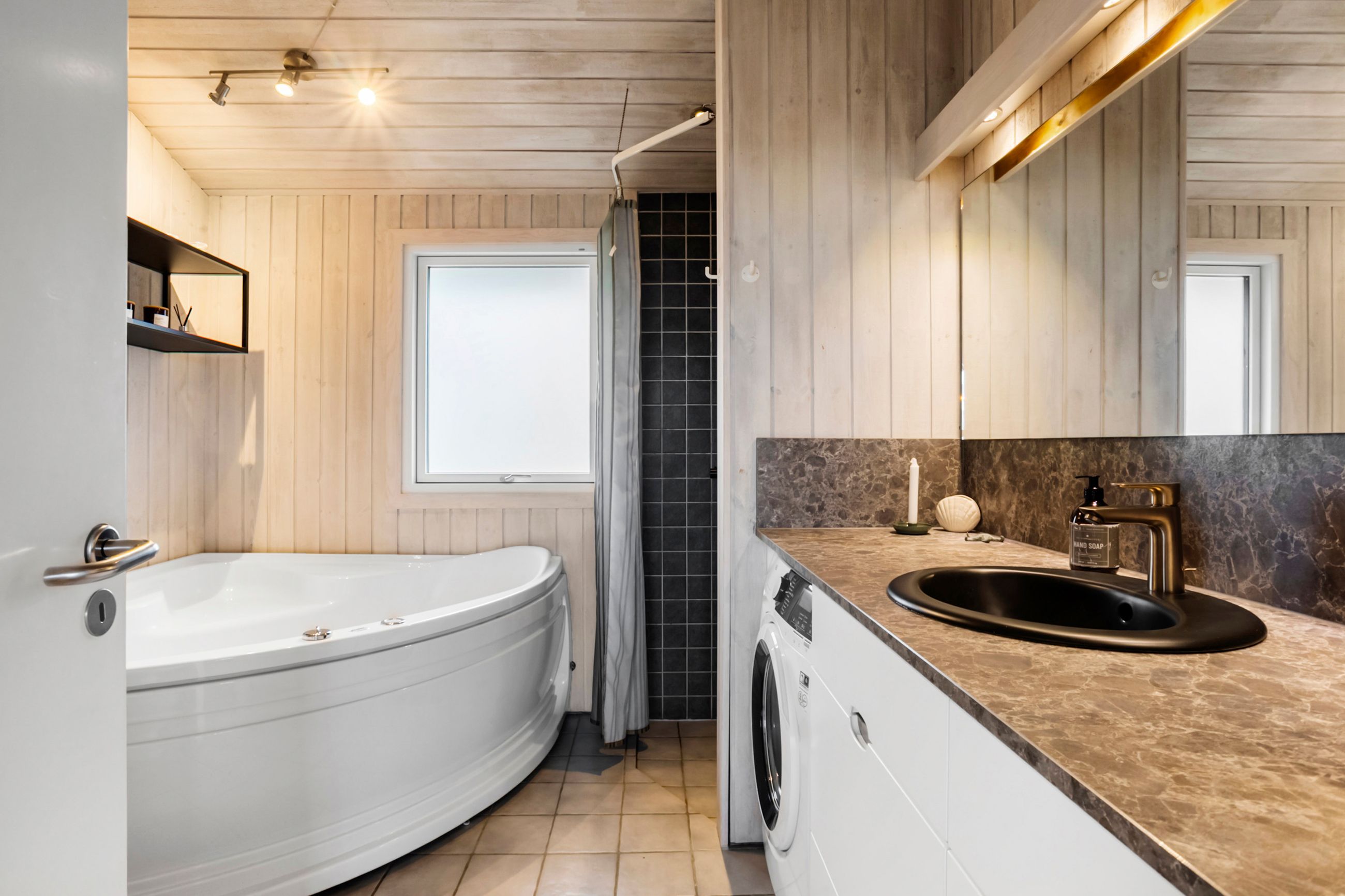 Boligen rummer tre soveværelser, samt to ekstra sovepladser på hemsen. Derudover rummer huset et gæstetoilet, samt et rummeligt badeværelse med spa og sauna.