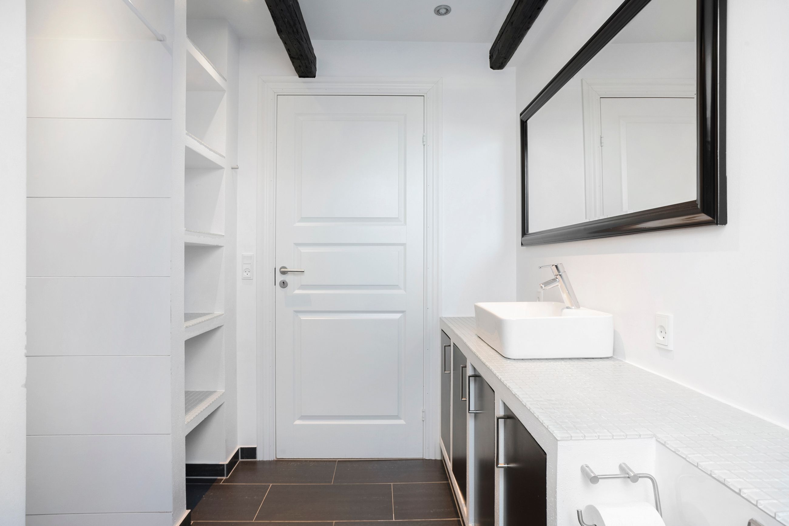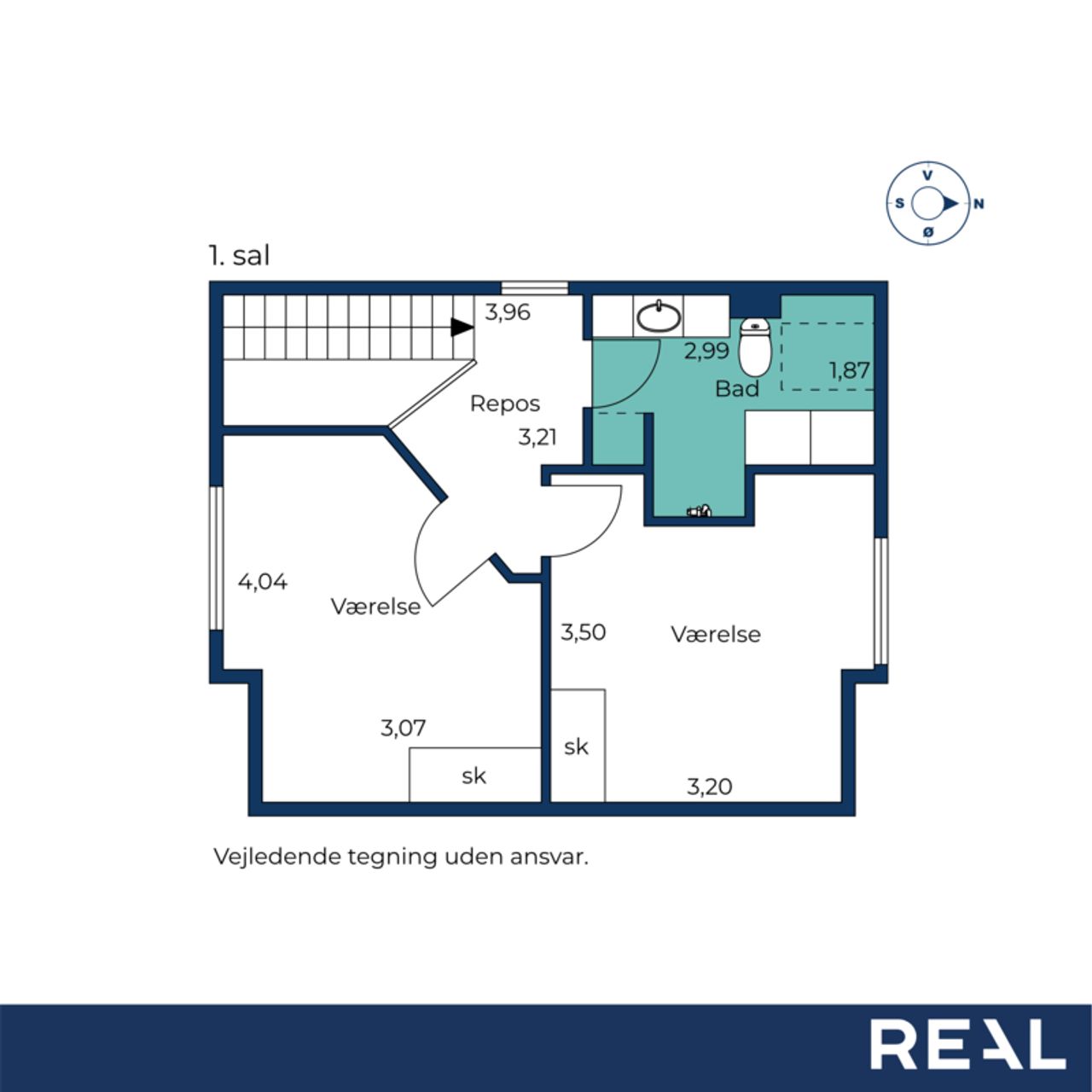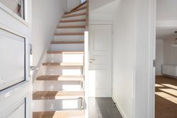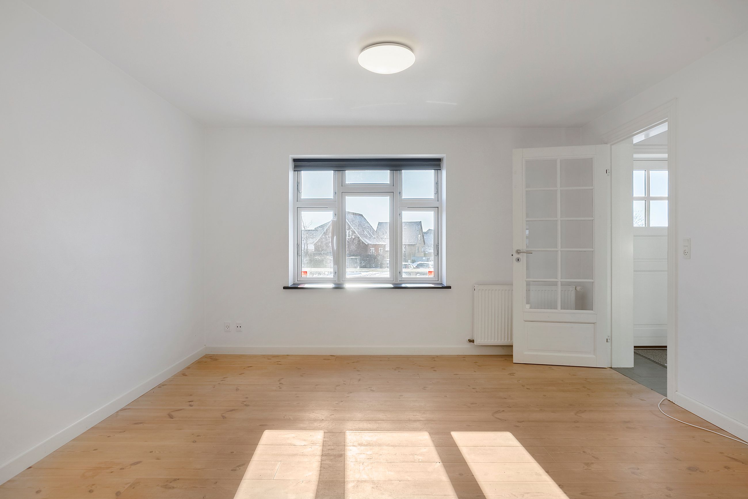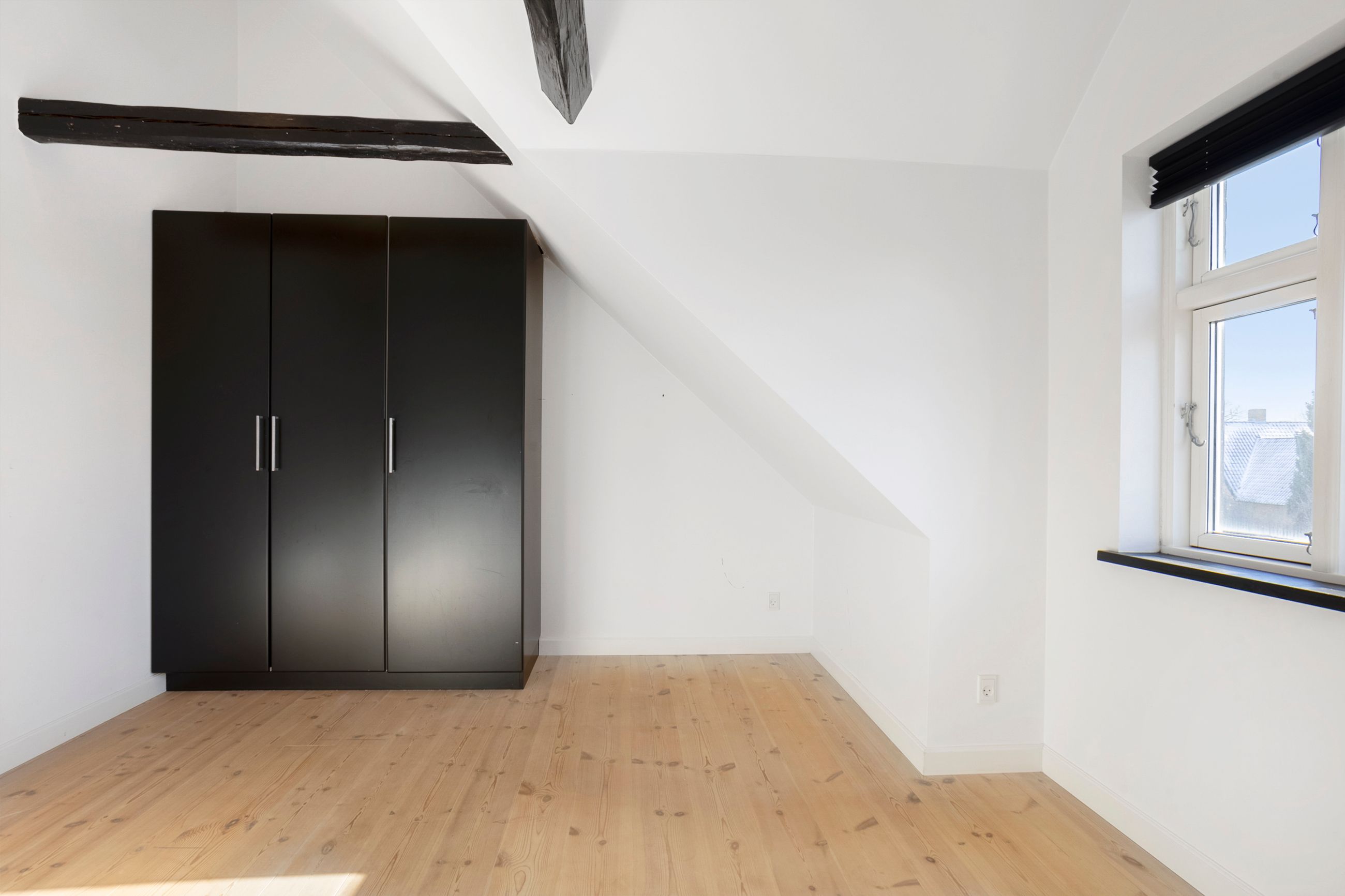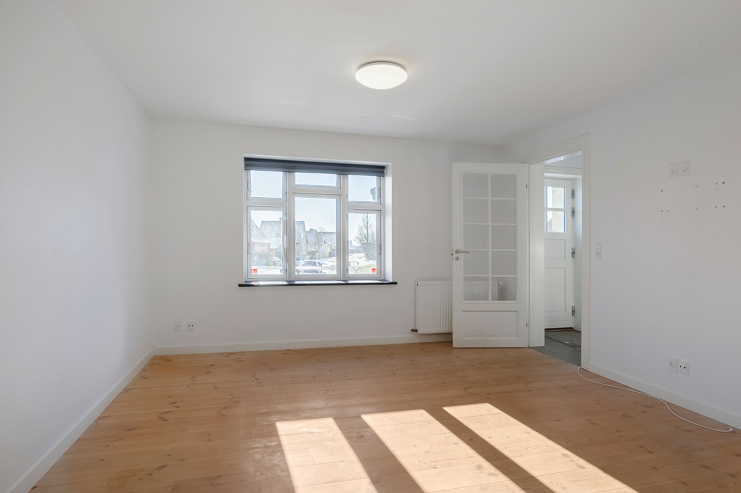 På 1. salen finder I et flot badeværelse med gulvvarme og rummelig bruseniche. Derudover rummer etagen et lyst soveværelse med god skabsplads samt et ekstra værelse, der oplagt kan indrettes som børneværelse, kontor eller hobbyrum – alt efter behov.