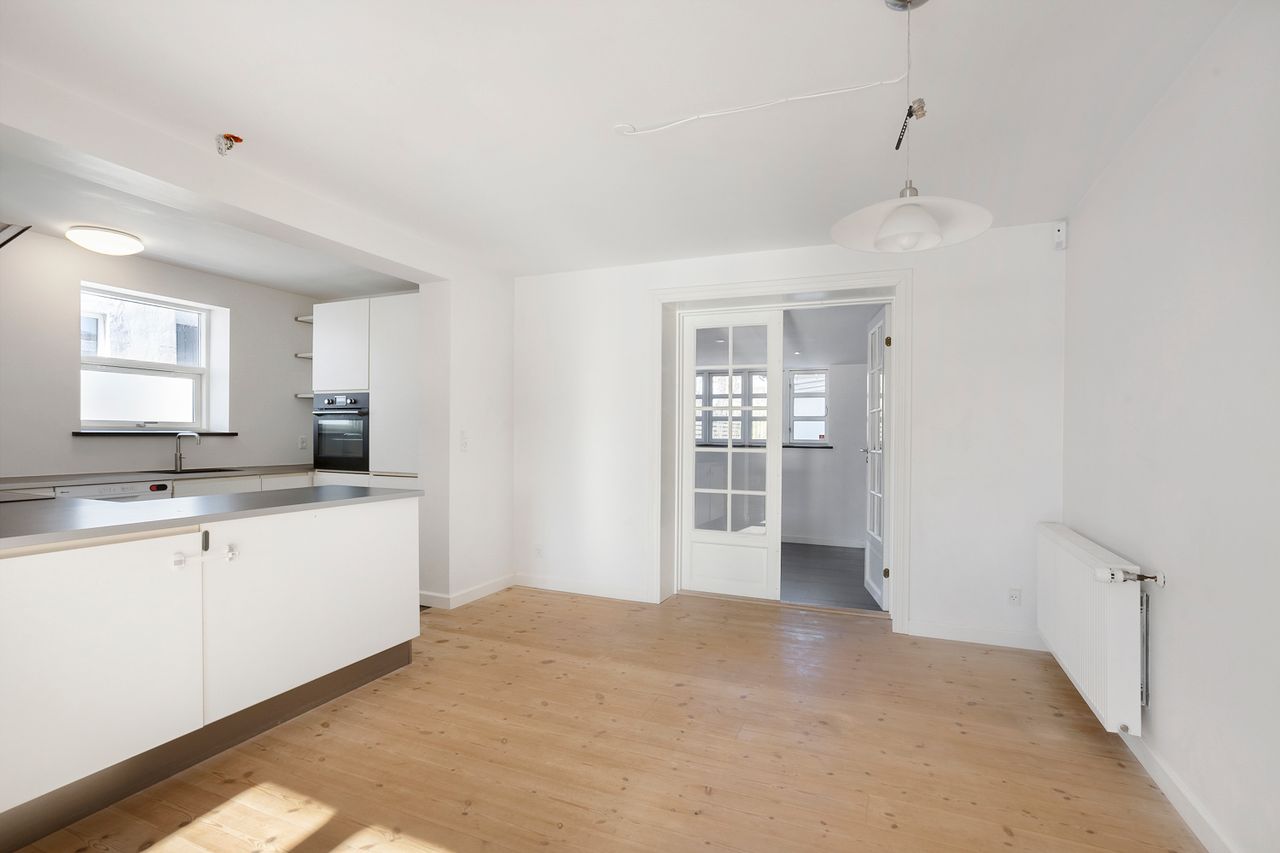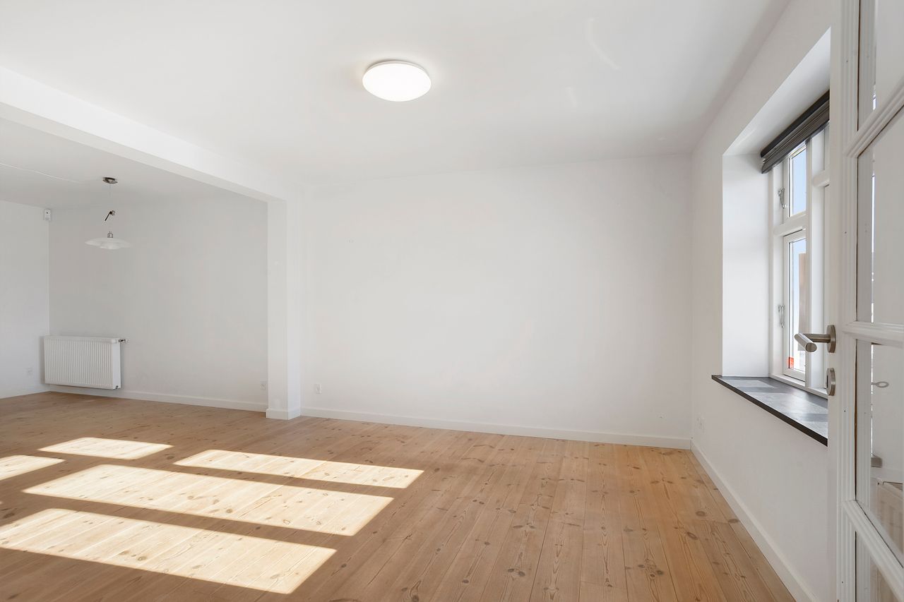 Her bosætter I jer centralt i Hjørring med kort afstand til byens faciliteter, indkøb, skole og offentlig transport – samtidig med at I får en totalistandsat og indflytningsklar bolig med masser af sjæl.