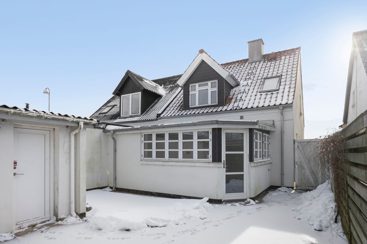 På Møllevej 21 i 9800 Hjørring finder I dette indbydende og gennemrenoverede byhus, hvor charme og moderne komfort går hånd i hånd. Her får I en bolig, der siden 2012 har gennemgået en omfattende modernisering – med blandt andet nyere tag fra 2012/2013, udskiftning af vinduer i 2013 samt pudset facade, som giver huset et stilrent og velholdt udtryk.