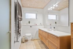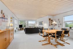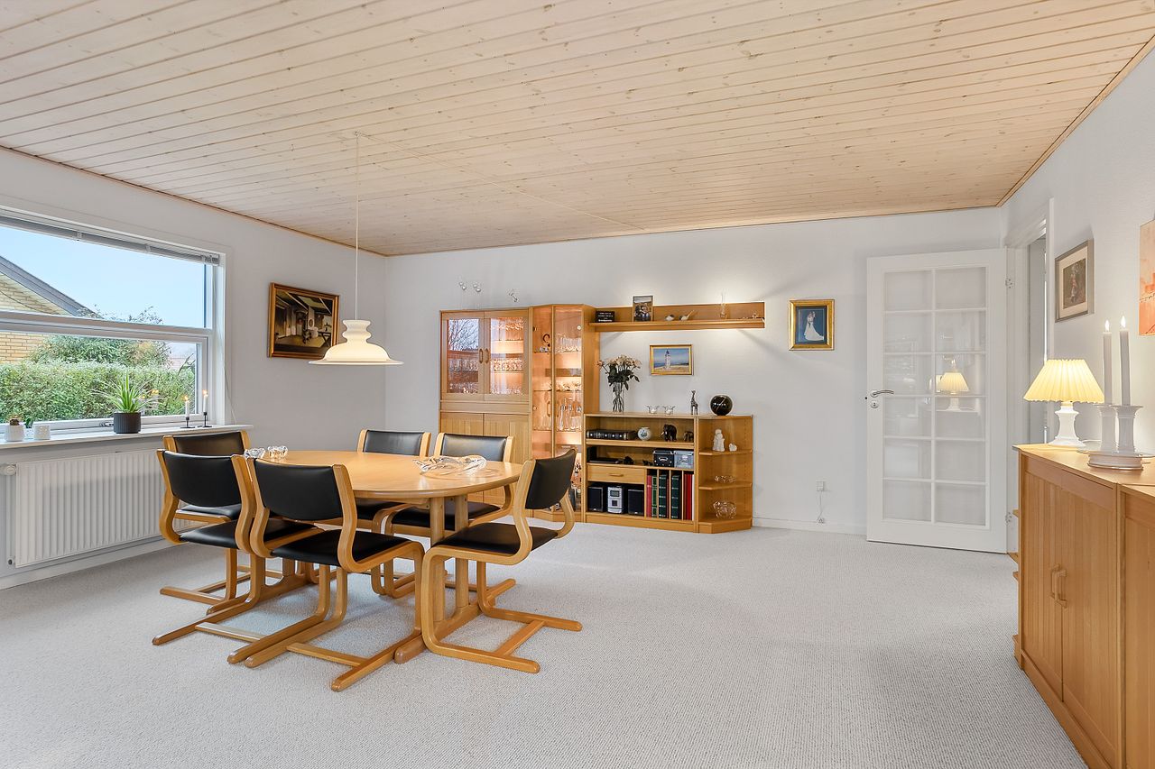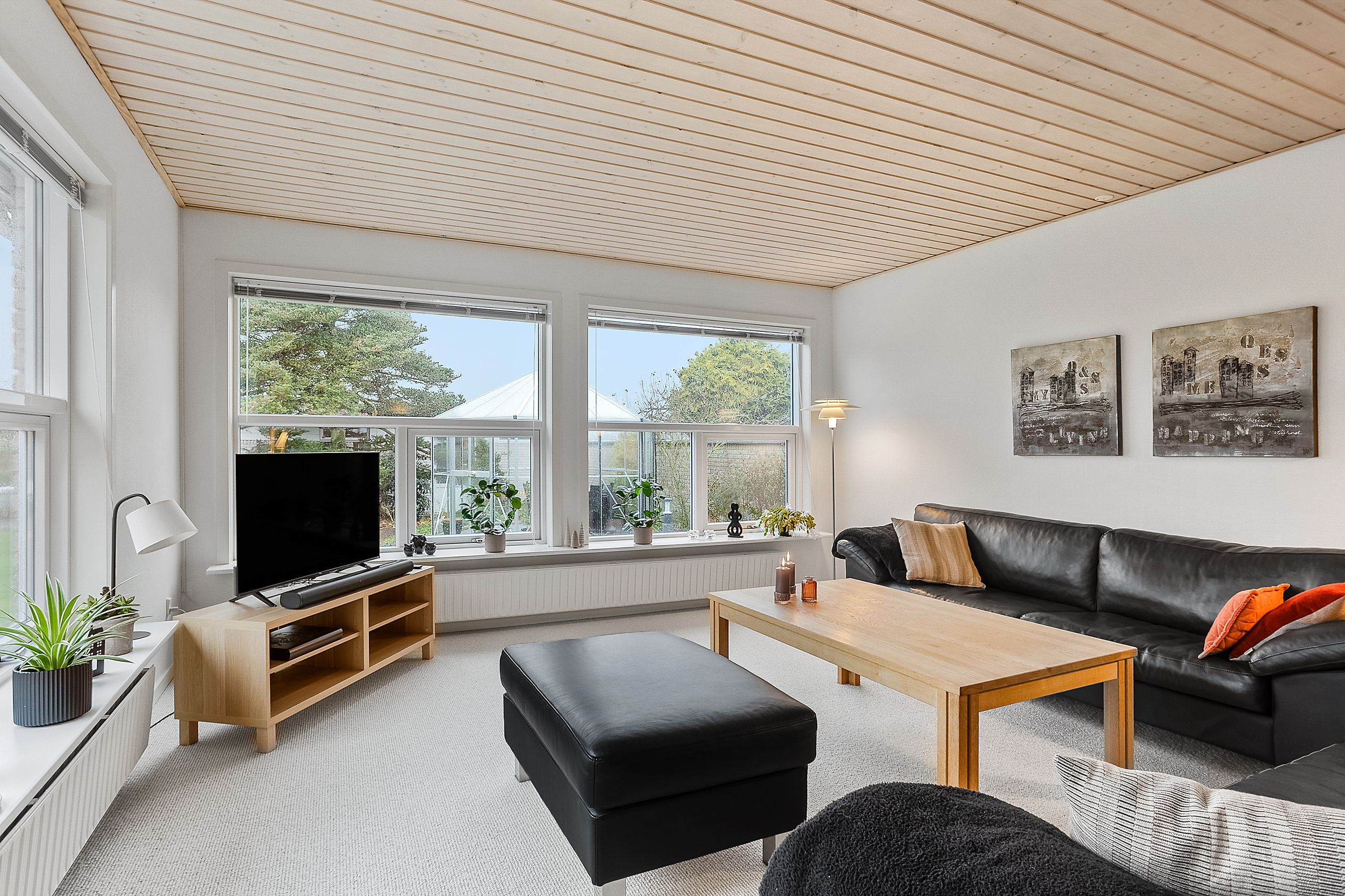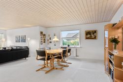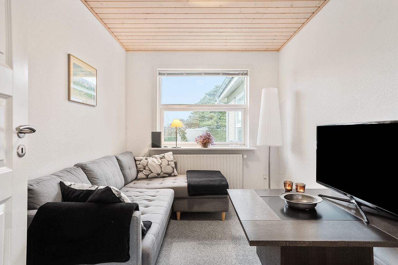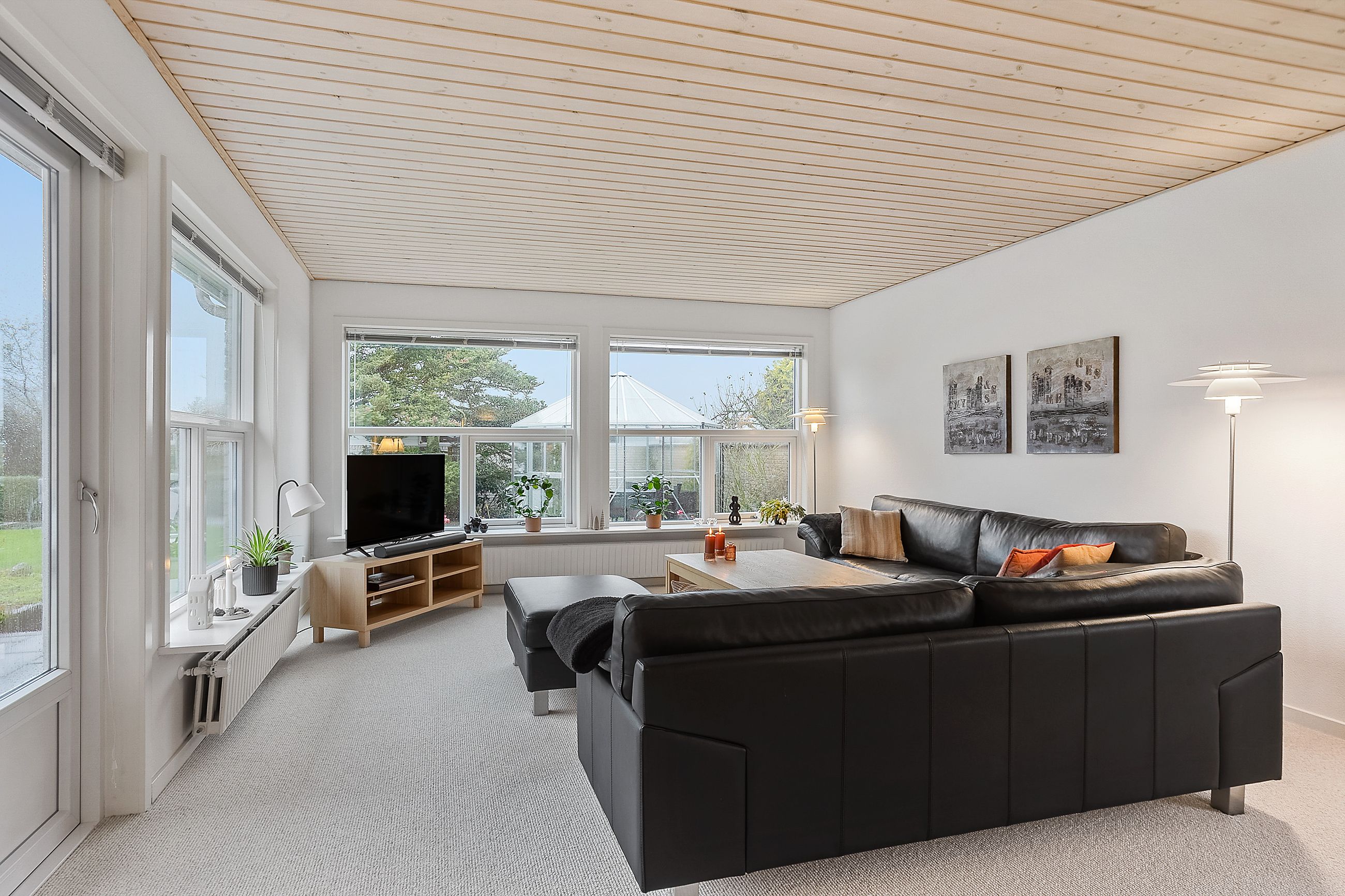 Køkkenet er et stilrent JKE-køkken fra 2015 med god skabsplads og moderne faciliteter, der gør hverdagen både praktisk og indbydende. Den store, lyse stue er husets samlingspunkt og har direkte udgang til en skøn terrasse, hvor du kan nyde solen og den velanlagte have.