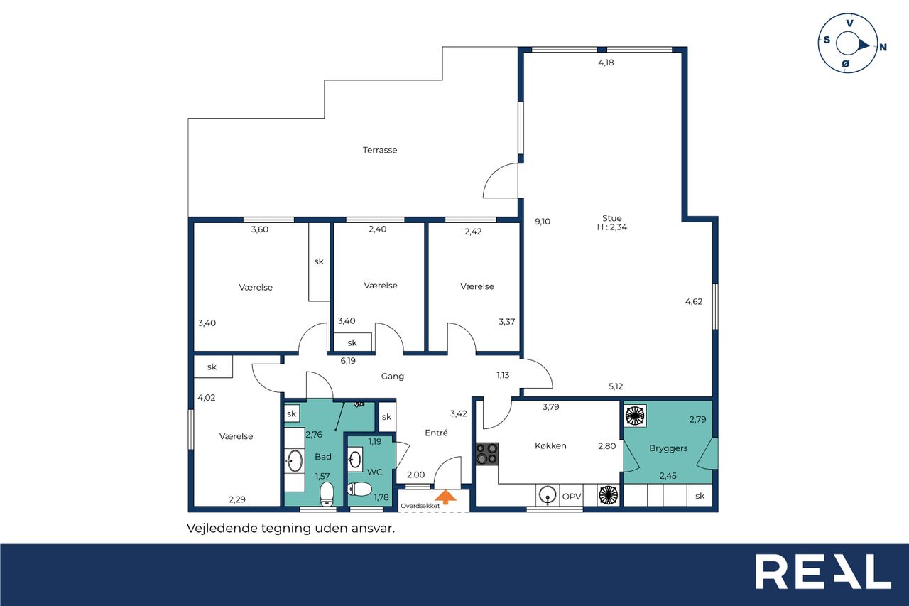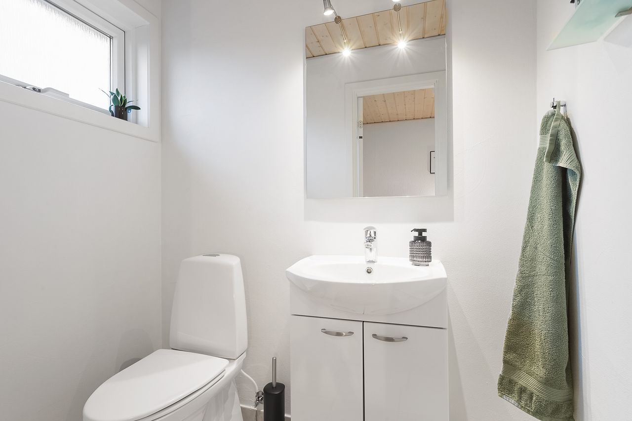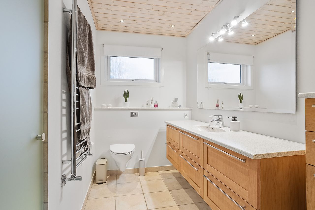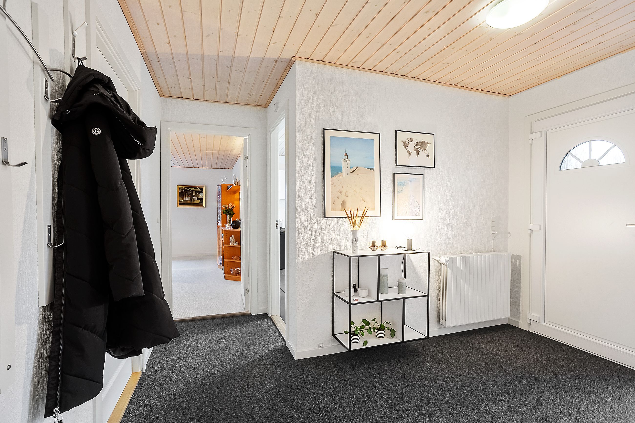 Boligen rummer 136 kvm og er indrettet med tre gode værelser, et rummeligt soveværelse med integrerede skabe, et gæstetoilet, samt et stort og moderne badeværelse.