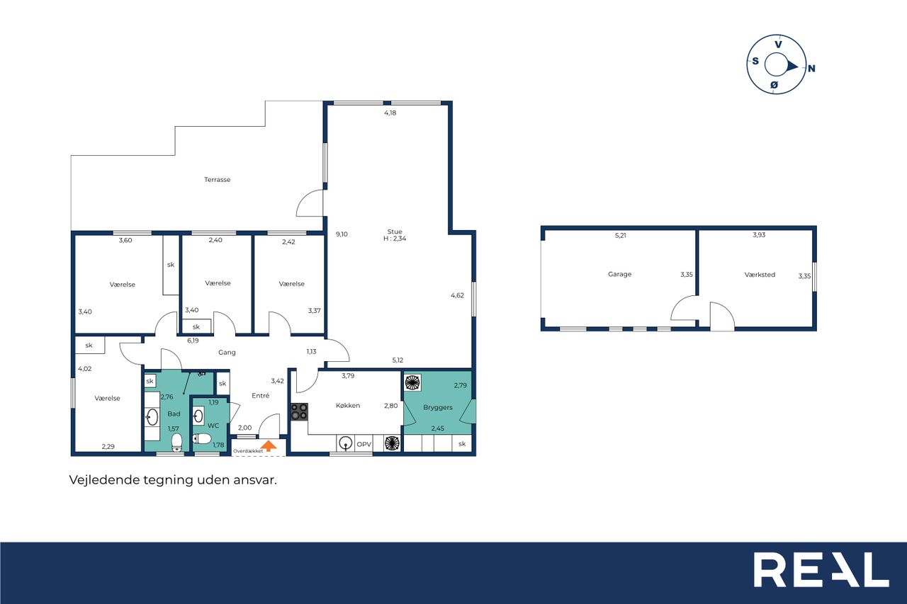 Udvendig får man desuden en god garage med værksted, samt udhus, som giver rig mulighed for opbevaring, hobby eller ekstra plads til projekter.