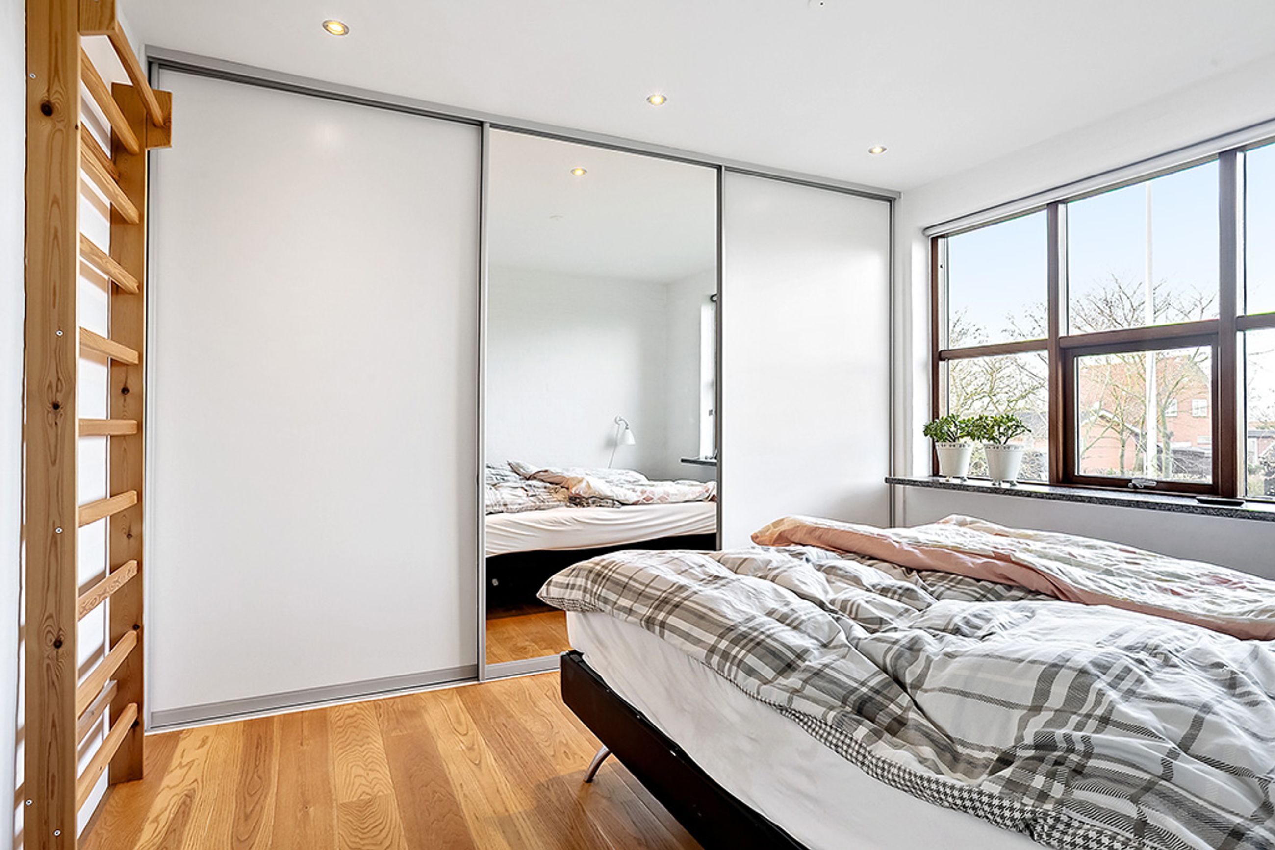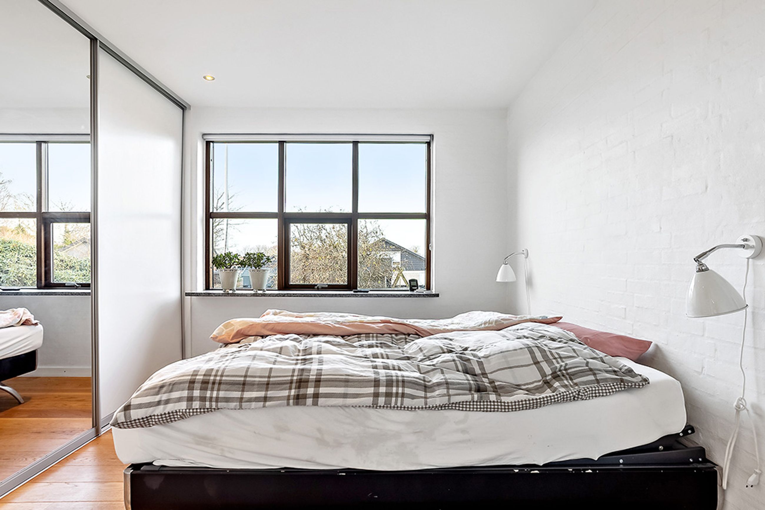 Detaljerne i boligens materialevalg er gennemgående velafstemte. Vinduerne er udført i mahogni og er løbende skiftet fra 2005 og frem. De fremstår i en smuk og velholdt stand, og deres varme træfarve står flot i kontrast til husets gule mursten, hvilket giver facaden et klassisk og indbydende udtryk.