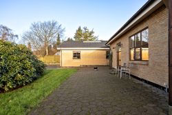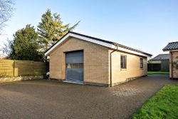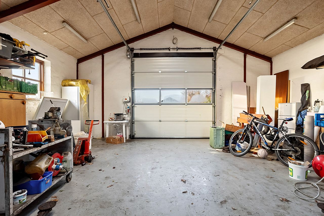 Boligen har gulvvarme overalt og opvarmes via fjernvarme, hvilket både øger komforten og bidrager til en energieffektiv hverdag. Taget blev udskiftet i 2005 til IBF betontegl, som sikrer en robust og tidssvarende løsning. Udenfor suppleres ejendommen af en usædvanligt stor garage på hele 80 m2 med imponerende loftshøjde, perfekt til hobbyprojekter, opbevaring eller værkstedsaktiviteter. Garagen er opført med betonteglstag fra 2007 og fremstår i flot stand – endnu et vidnesbyrd om den løbende vedligeholdelse, der præger hele ejendommen.
