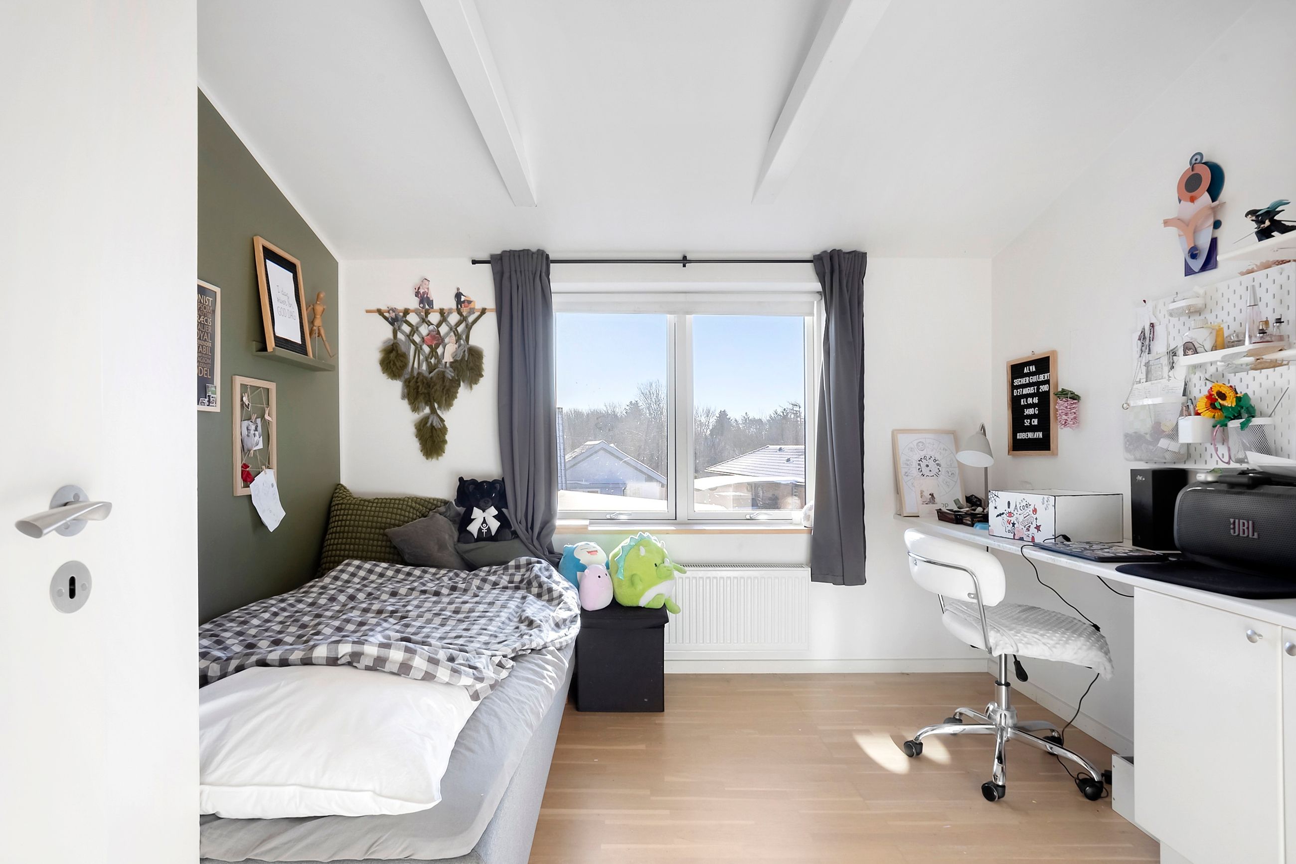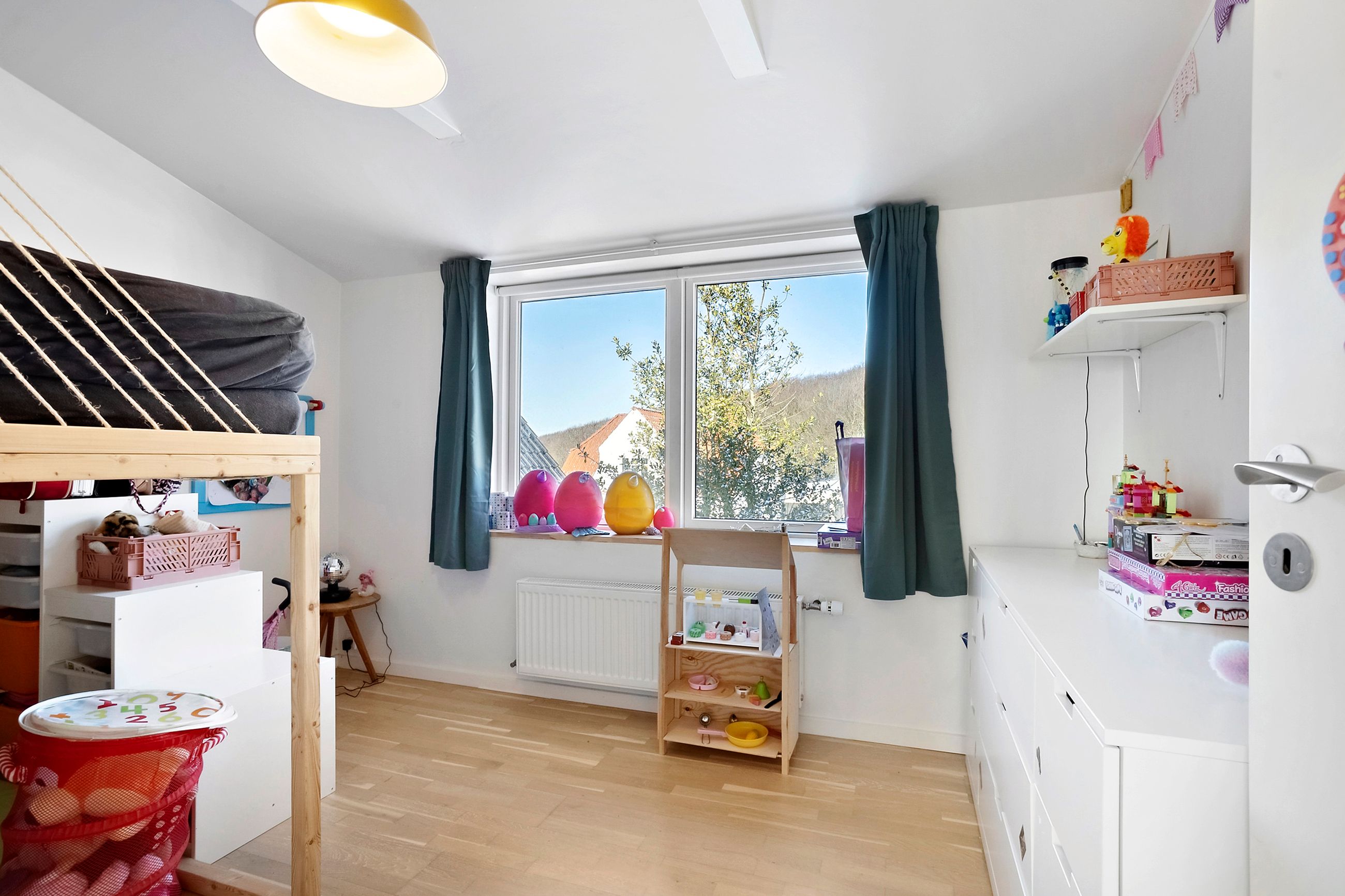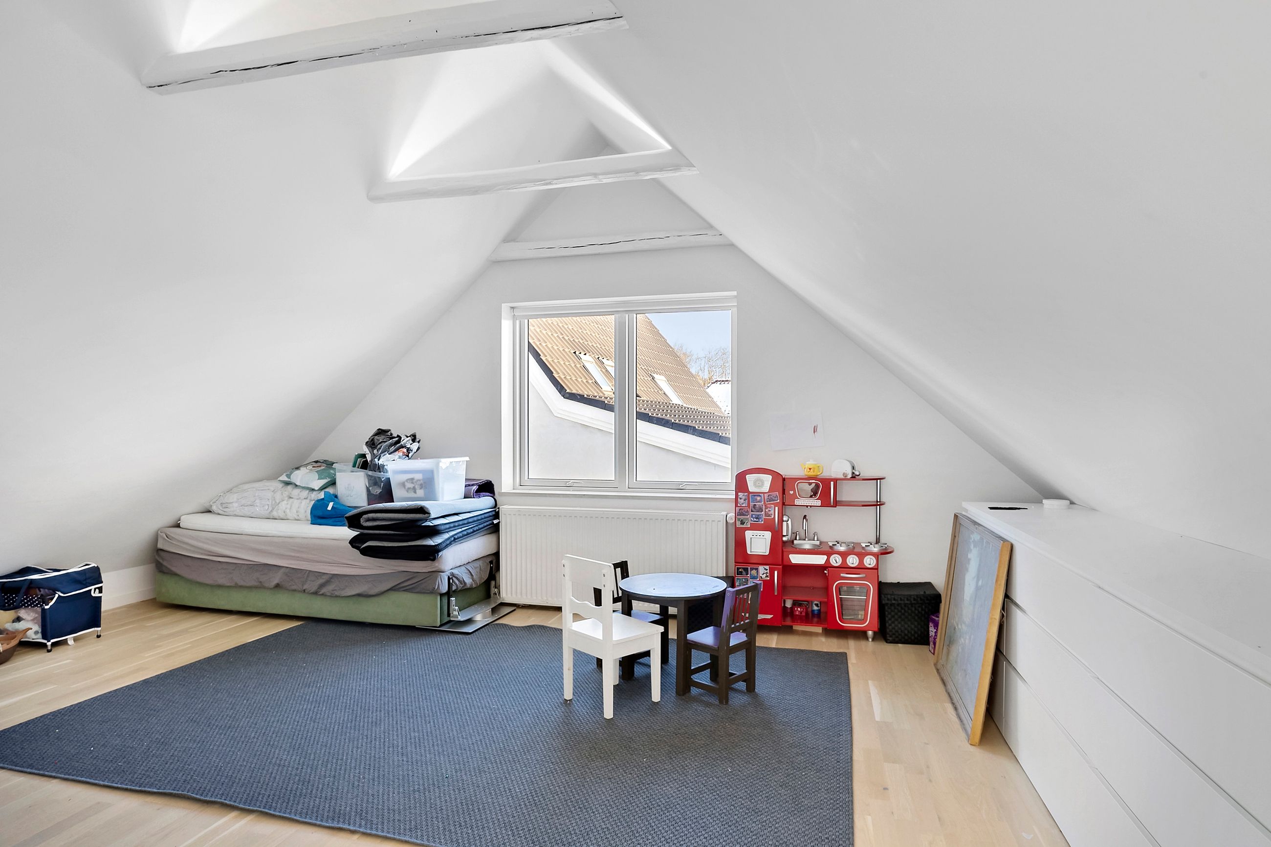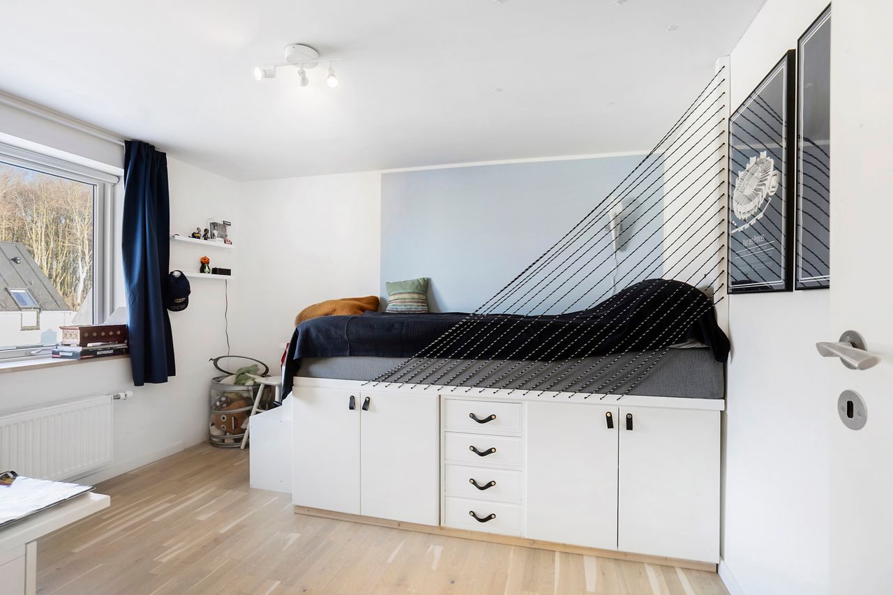 På overetagen mødes I af en repos med adgang til hele fire gode værelser, der giver masser af muligheder for børneværelser, kontor eller hobbyrum. Hertil kommer endnu et badeværelse, hvilket gør planløsningen ideel til den større familie.