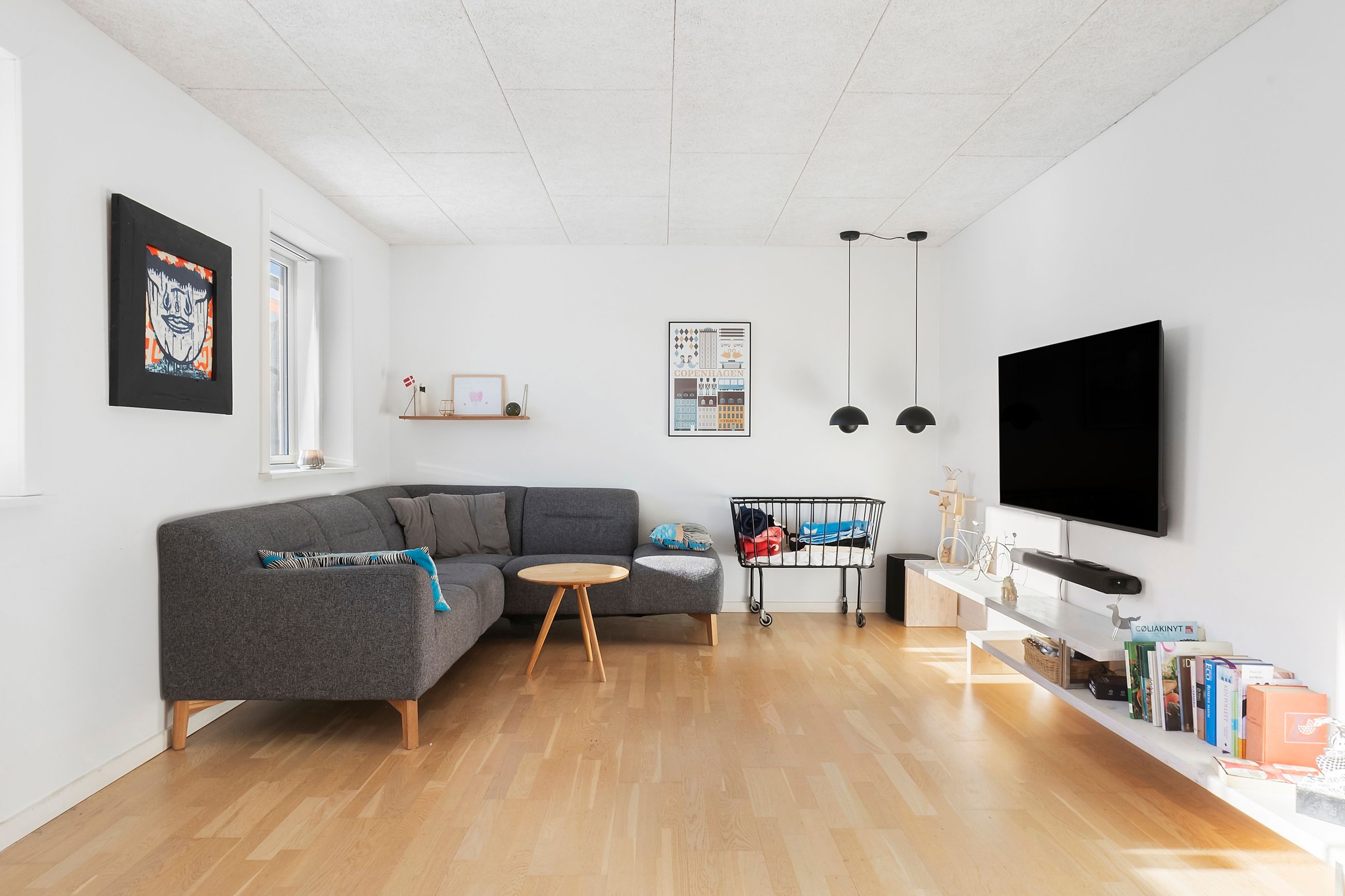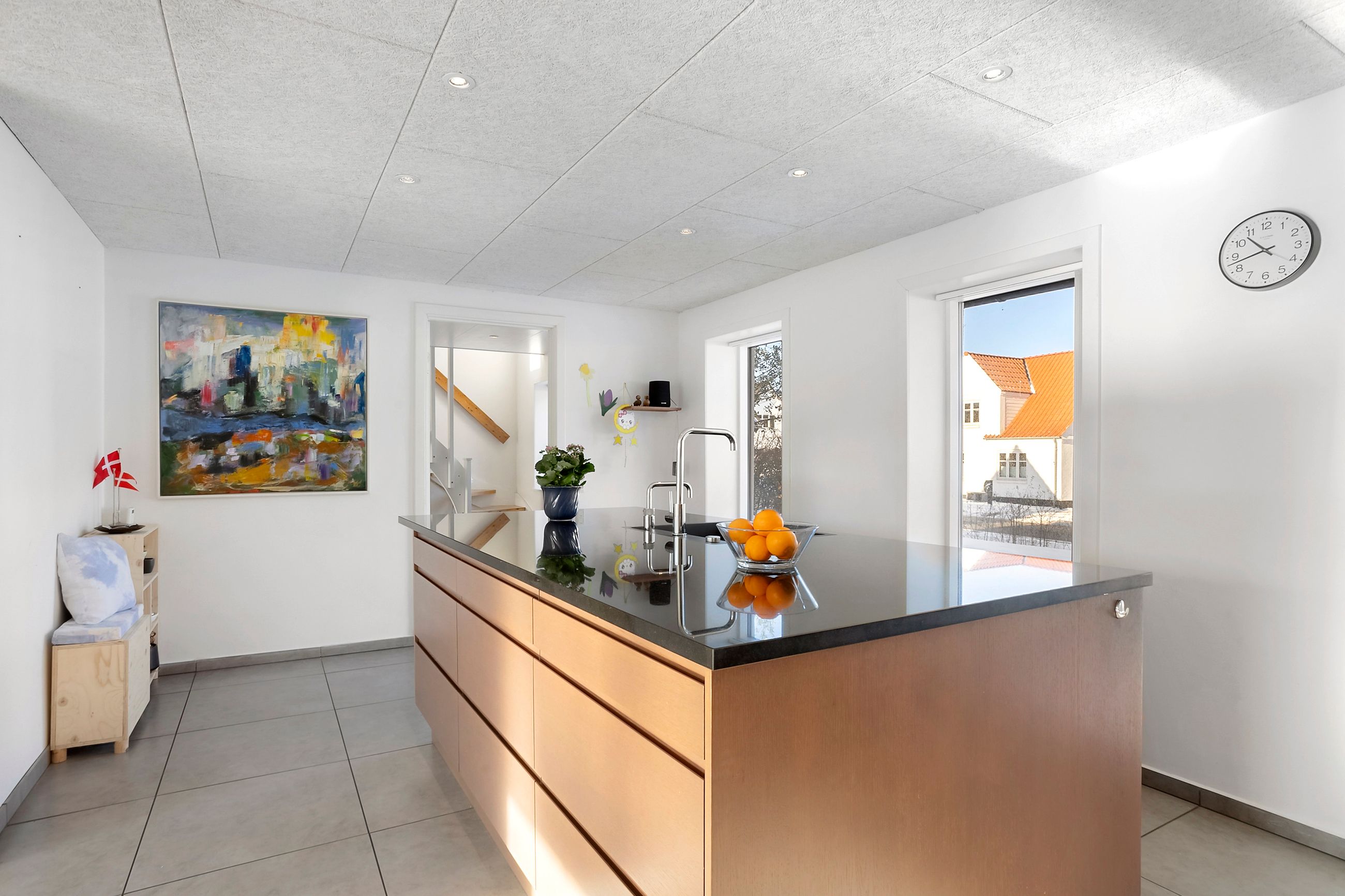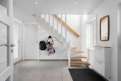 Indenfor bydes I velkommen i en stor og rummelig entré med god plads til hverdagens overtøj og sko. Stueetagen byder på et indbydende køkken-alrum med et stilrent JKE-køkken fra 2013, der skaber en naturlig ramme om familiens samvær. I åben forbindelse ligger en hyggelig tv-stue, hvor I kan trække jer tilbage og nyde rolige stunder. Herudover rummer stueplan et soveværelse samt et rummeligt badeværelse med plads til vaskefaciliteter, som i dagligdagen nemt kan gemmes væk i en praktisk skabsløsning.