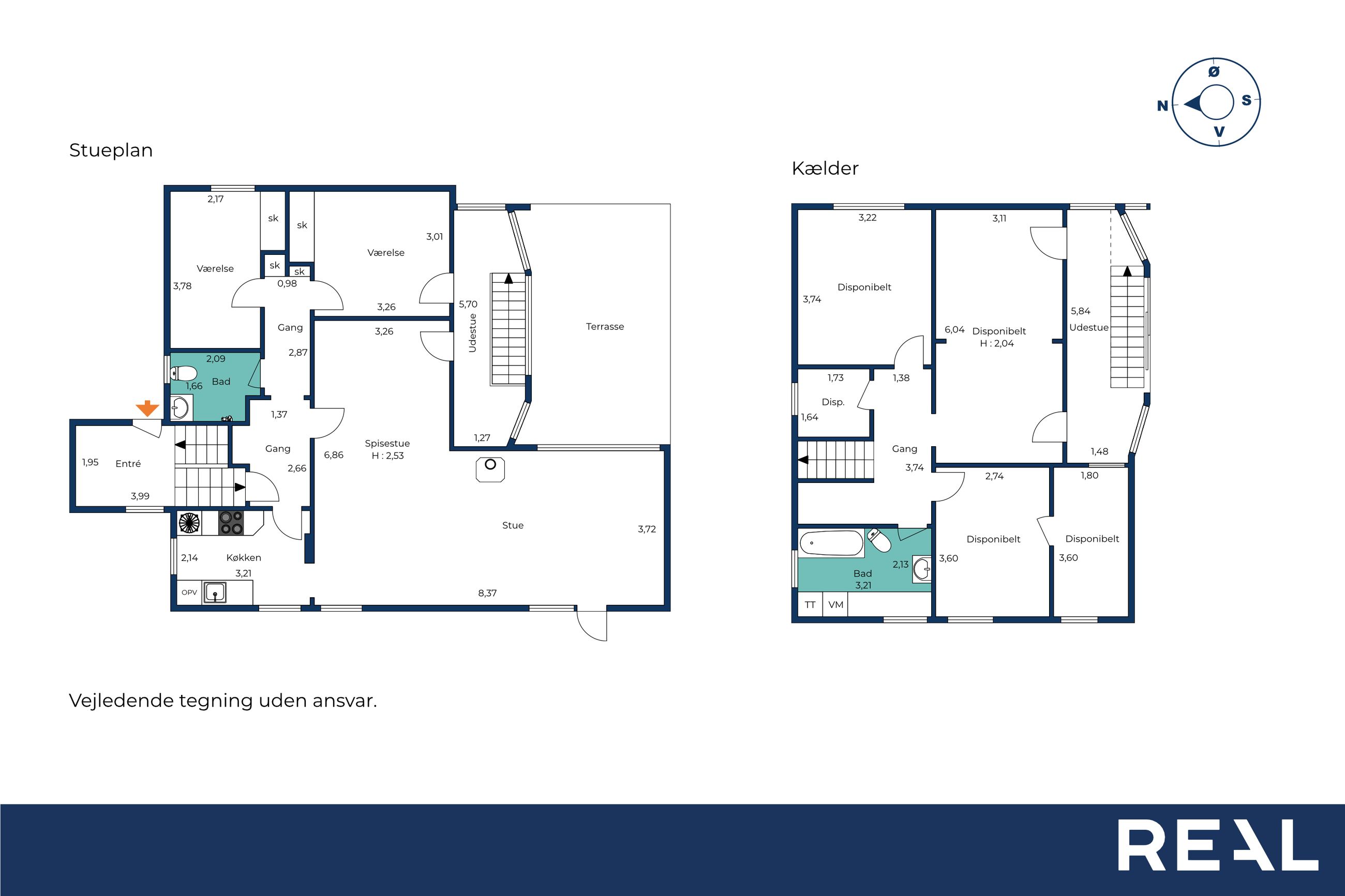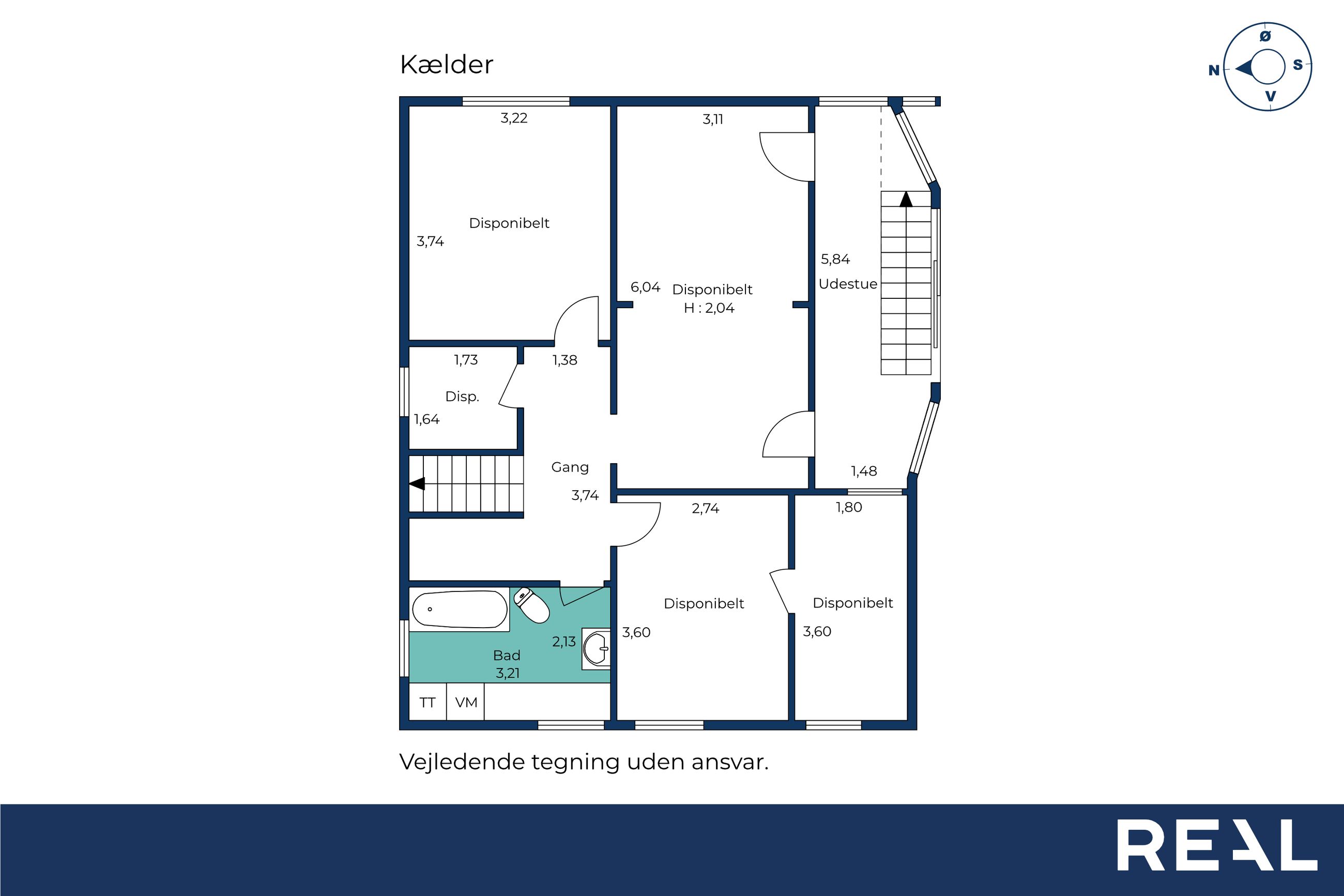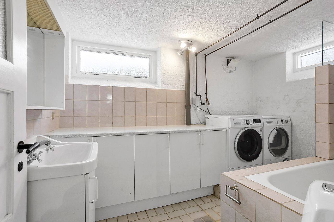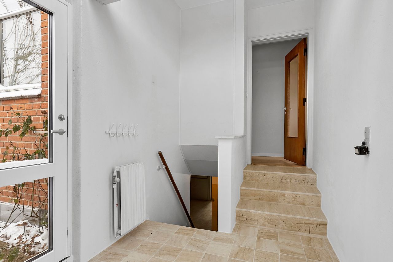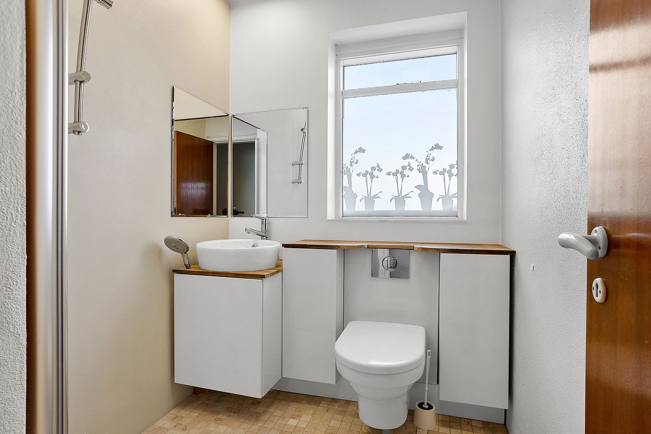 Kælderen byder på endnu et badeværelse samt hele fem disponible rum, som åbner op for mange anvendelsesmuligheder. Her er der god plads til hobbyrum, værksted, opbevaring, vinkælder eller viktualierum, og indretningen kan tilpasses efter behov og ønsker. Kælderen er ikke godkendt til beboelse, men giver et stort og fleksibelt supplement til boligens øvrige kvadratmeter.