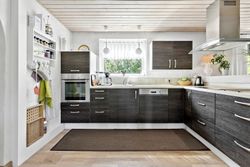 om madlavningen eller det store spisebord. Fra køkkenet er der udgang til terrassen, samt adgang til 1.