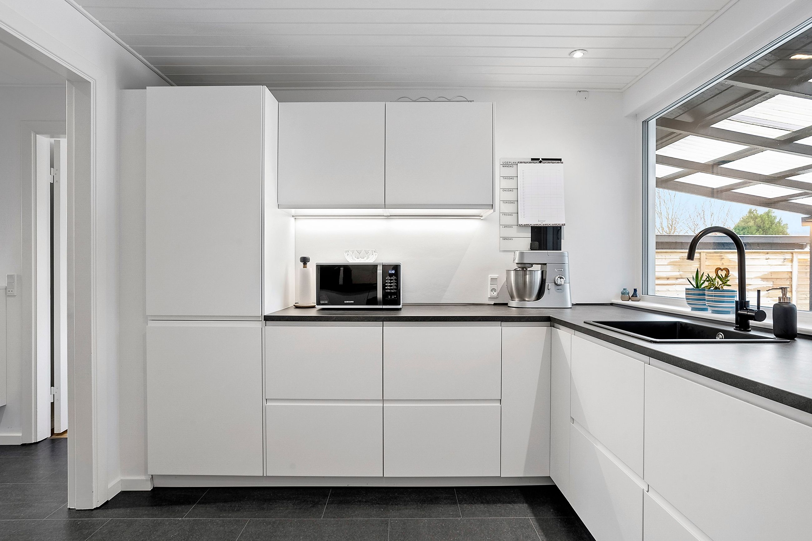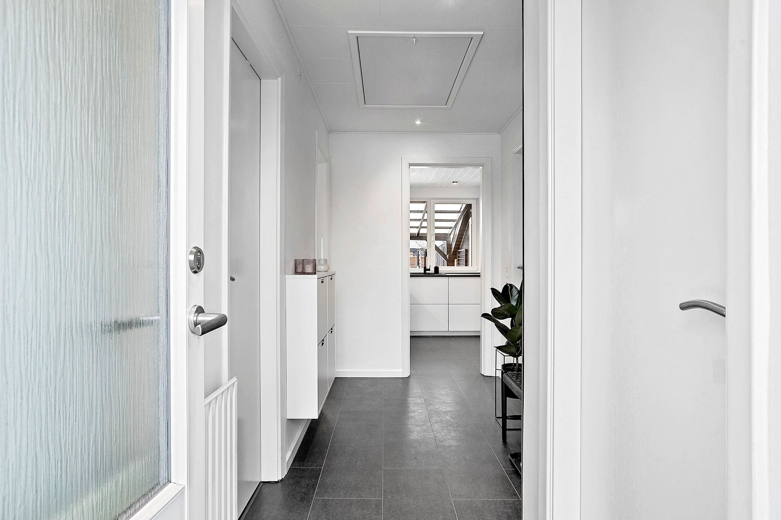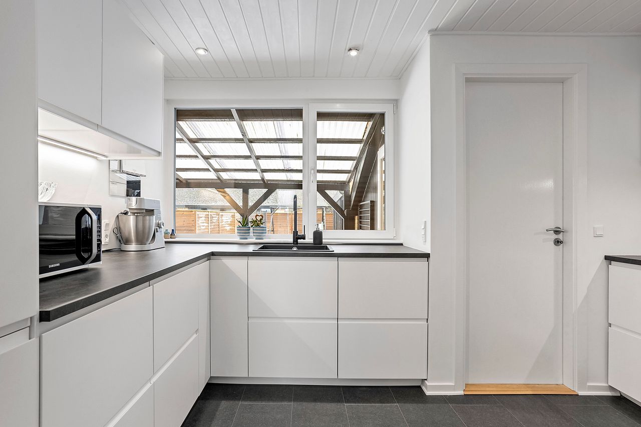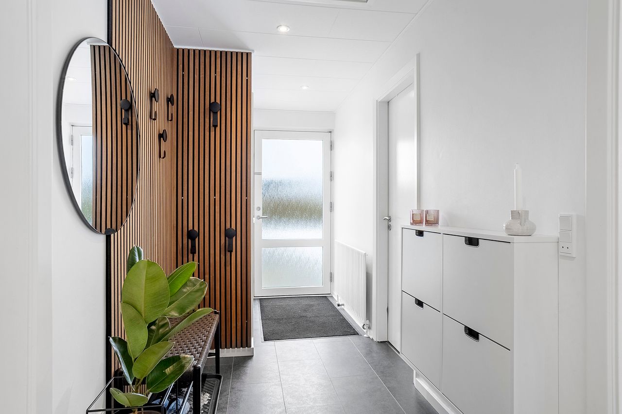 Boligen rummer 84 kvm og byder på en velfungerende planløsning. Entréen er lys og rummelig med fin plads til overtøj og fodtøj. Herfra er der adgang til et lyst og moderne køkken med gode opbevaringsløsninger.