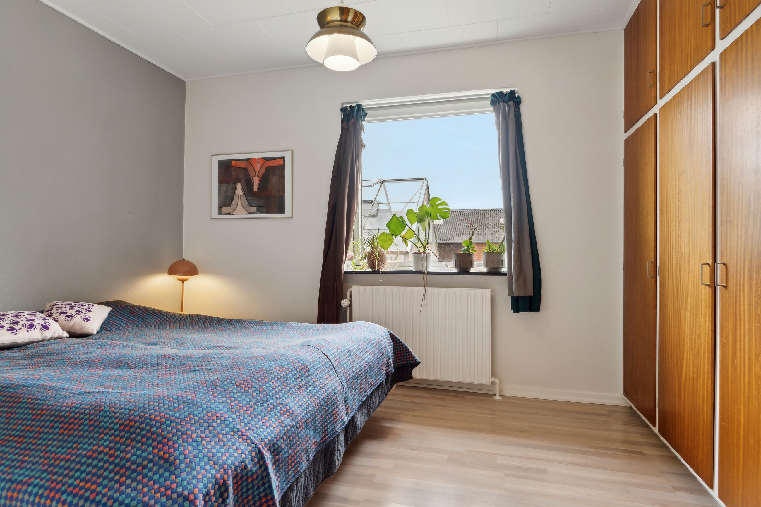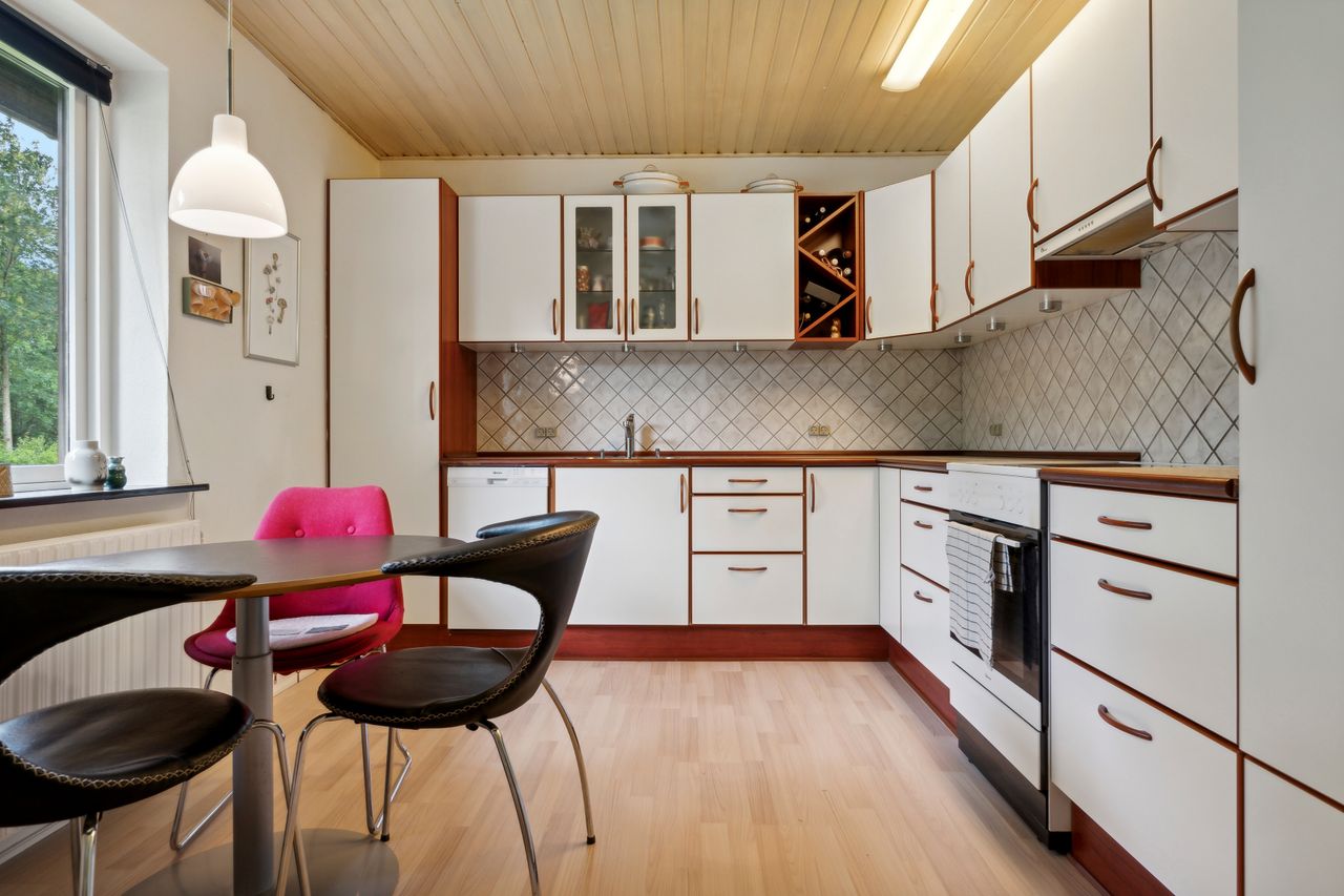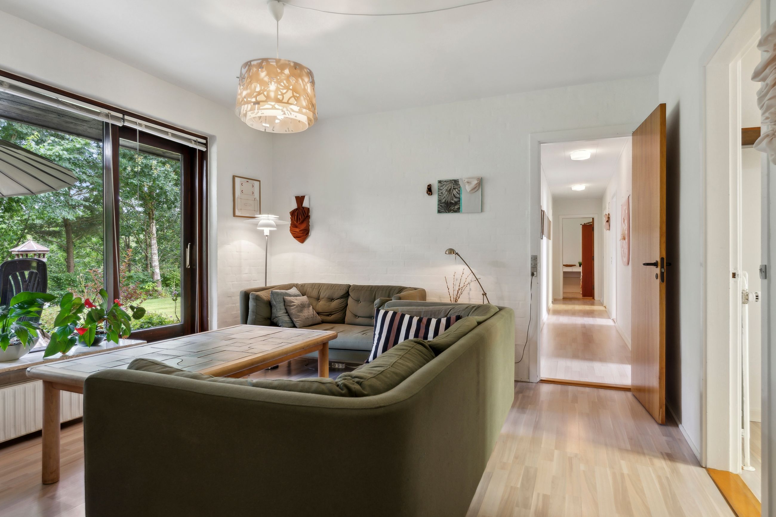 Stuehuset tager sig pænt ud, og størstedelen af de beboelige kvadratmeter er i original stand. Hjemmets samlingspunkt er den rummelige vinkelstue, hvor I snildt får plads til både en spiseafdeling og sofahjørne ved det brede, sydvendte vinduesparti. Køkkenet er nydeligt med hvide fronter, som får modspil af bordplader i varme nuancer, og den praktiske vinkelindretning efterlader også her plads til en lille spisekrog. Den centrale fordelingsgang giver adgang til fire værelser, hvoraf tre har indbygningsskabe. Huset afrundes af et badeværelse med indmuret kar og et bryggers.