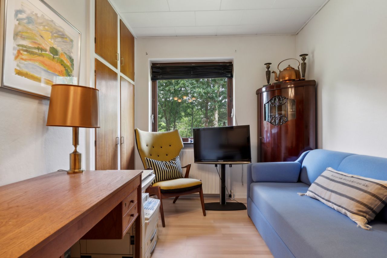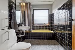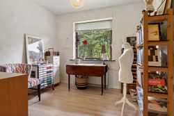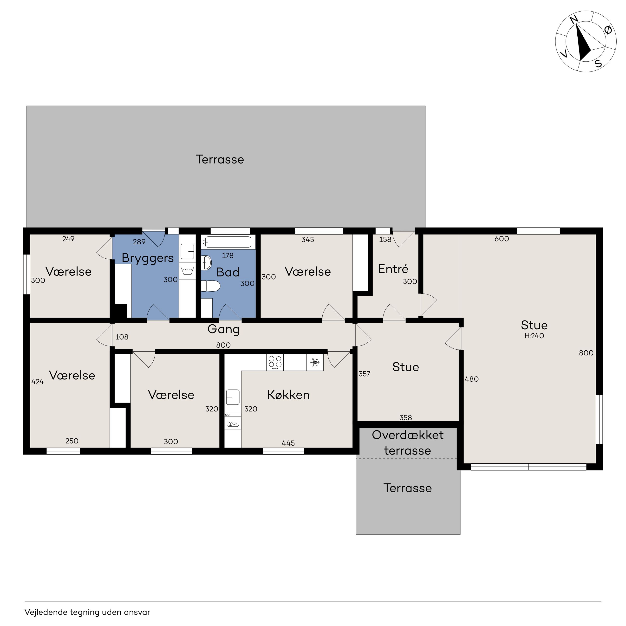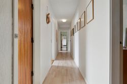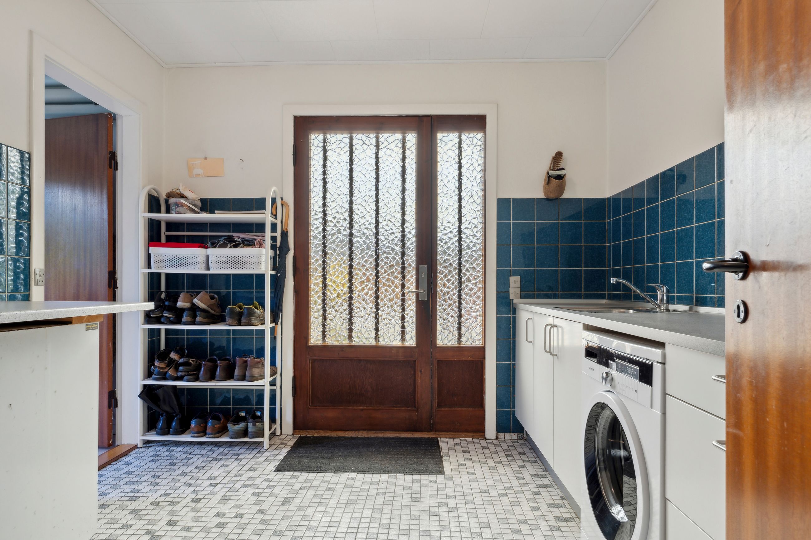 Stuehuset tager sig pænt ud, og størstedelen af de beboelige kvadratmeter er i original stand. Hjemmets samlingspunkt er den rummelige vinkelstue, hvor I snildt får plads til både en spiseafdeling og sofahjørne ved det brede, sydvendte vinduesparti. Køkkenet er nydeligt med hvide fronter, som får modspil af bordplader i varme nuancer, og den praktiske vinkelindretning efterlader også her plads til en lille spisekrog. Den centrale fordelingsgang giver adgang til fire værelser, hvoraf tre har indbygningsskabe. Huset afrundes af et badeværelse med indmuret kar og et bryggers.