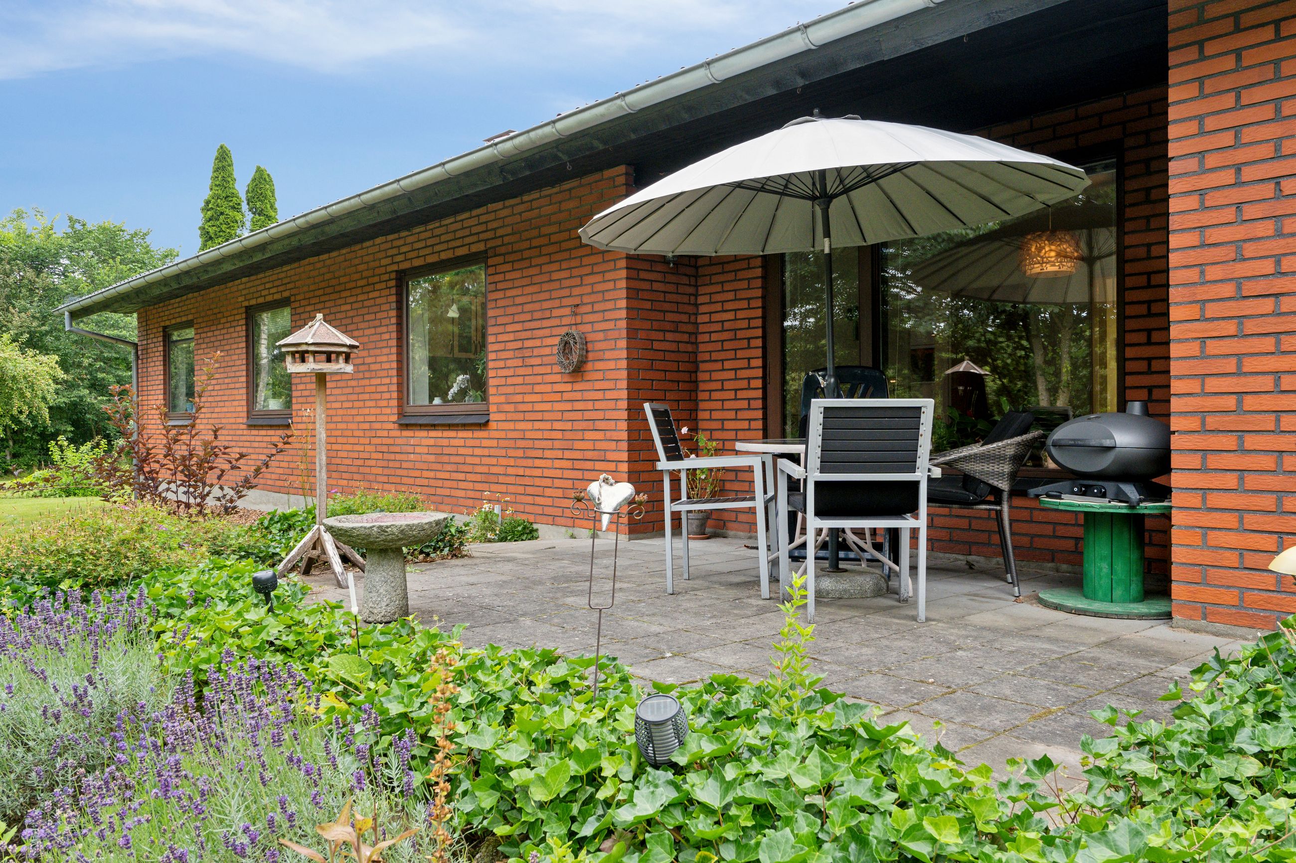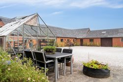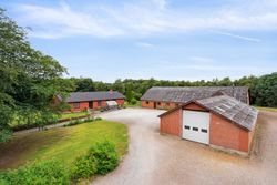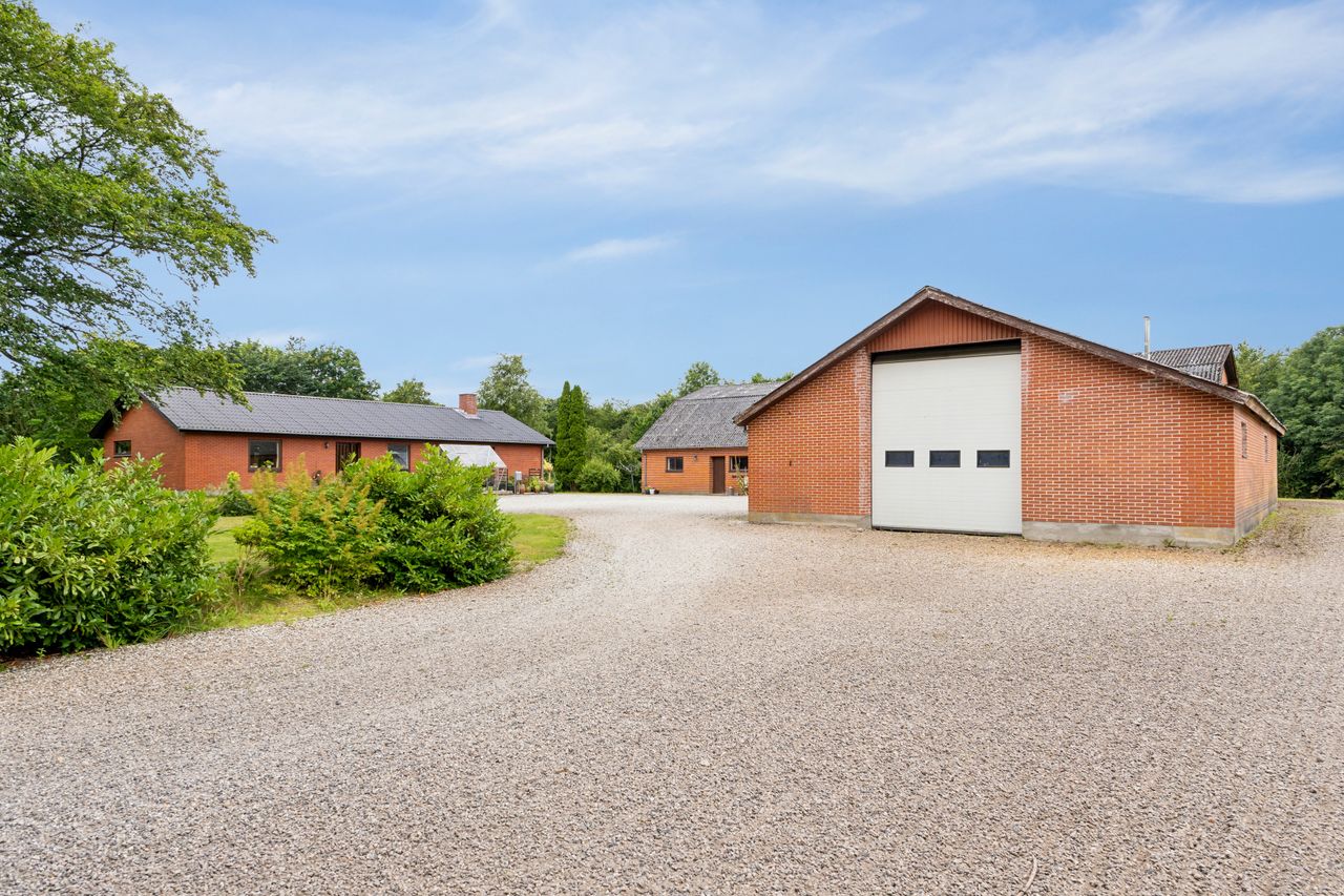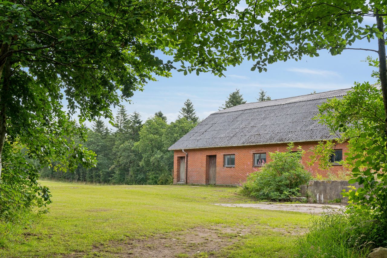 De store udbygninger er et kæmpe aktiv for ejendommen, og her kan de kreative idéer virkelig komme til live. Alt fra erhvervsbygninger eller et værksted til hundekennel eller anden form for dyrehold er en mulighed, ligesom omdannelsen til en lejebolig ikke er utænkelig. Begge bygninger er solide, fuldmurede og med stor separat porte i hver bygning, der giver nem adgang. Gårdspladsen mellem udbygningerne og stuehuset har masser af plads til større køretøjer og materiel, og det resterende udeareal består af en kæmpemæssig græsplæne, velplacerede terrasser og et skovstykke med bøgetræer.