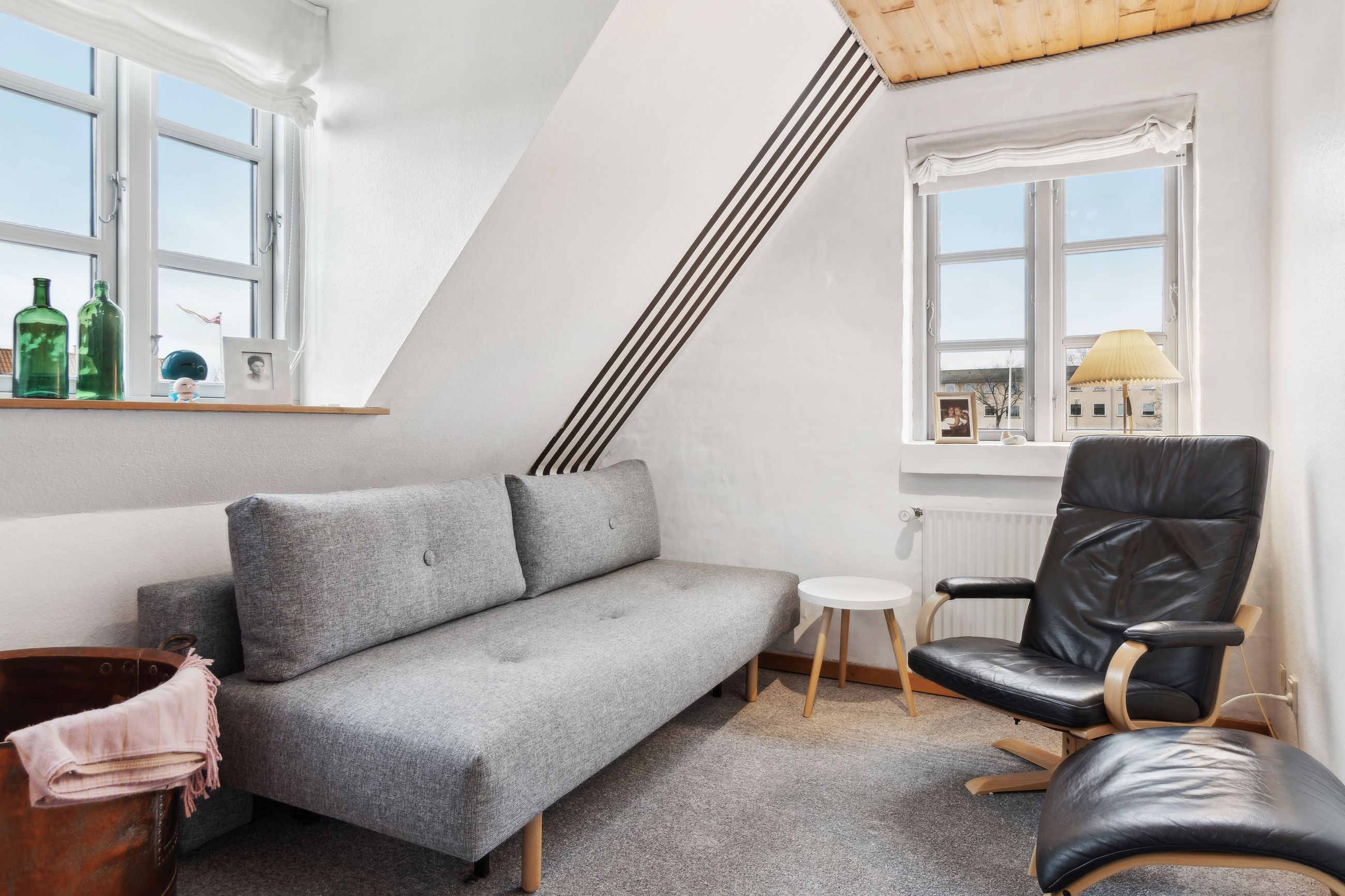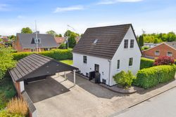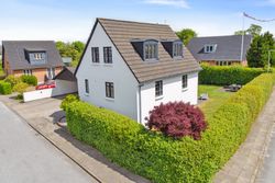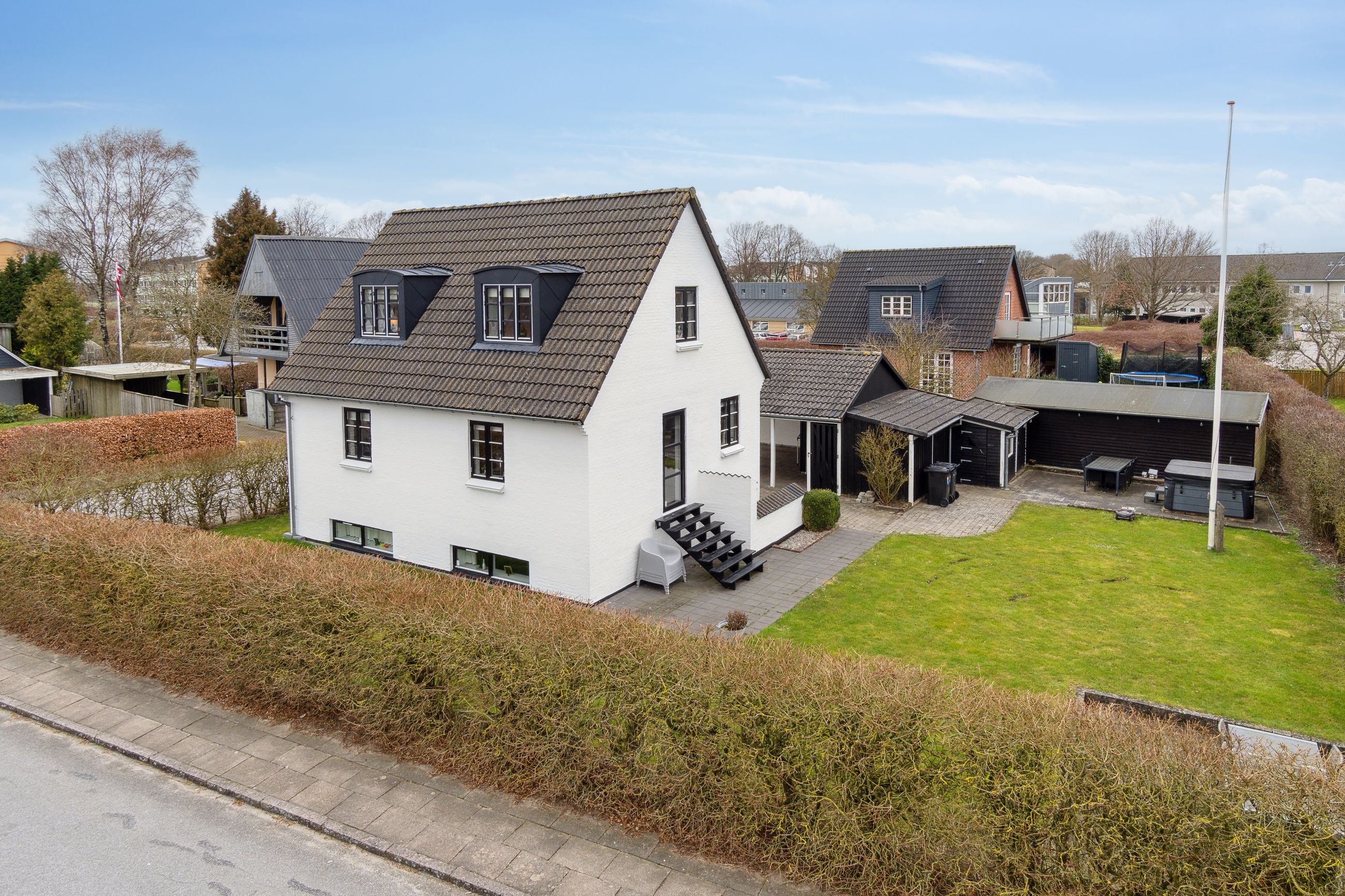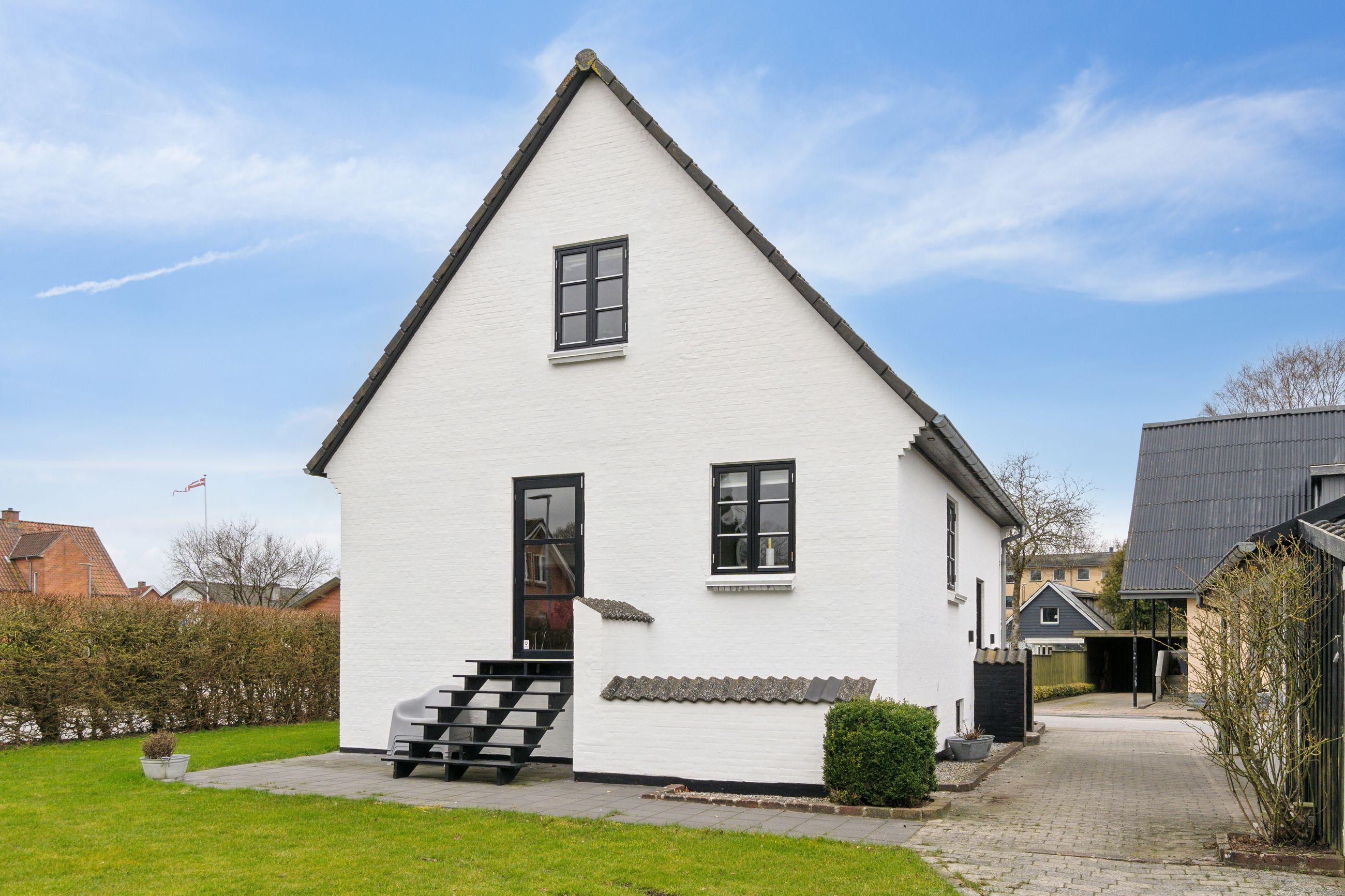 Med sin hvidpudsede facade og sorte betontagsten fremstår denne villa både klassisk og stilfuld. Her får du 170 m2 under tag, fordelt på tre plan, hvilket giver masser af plads til hele familien.