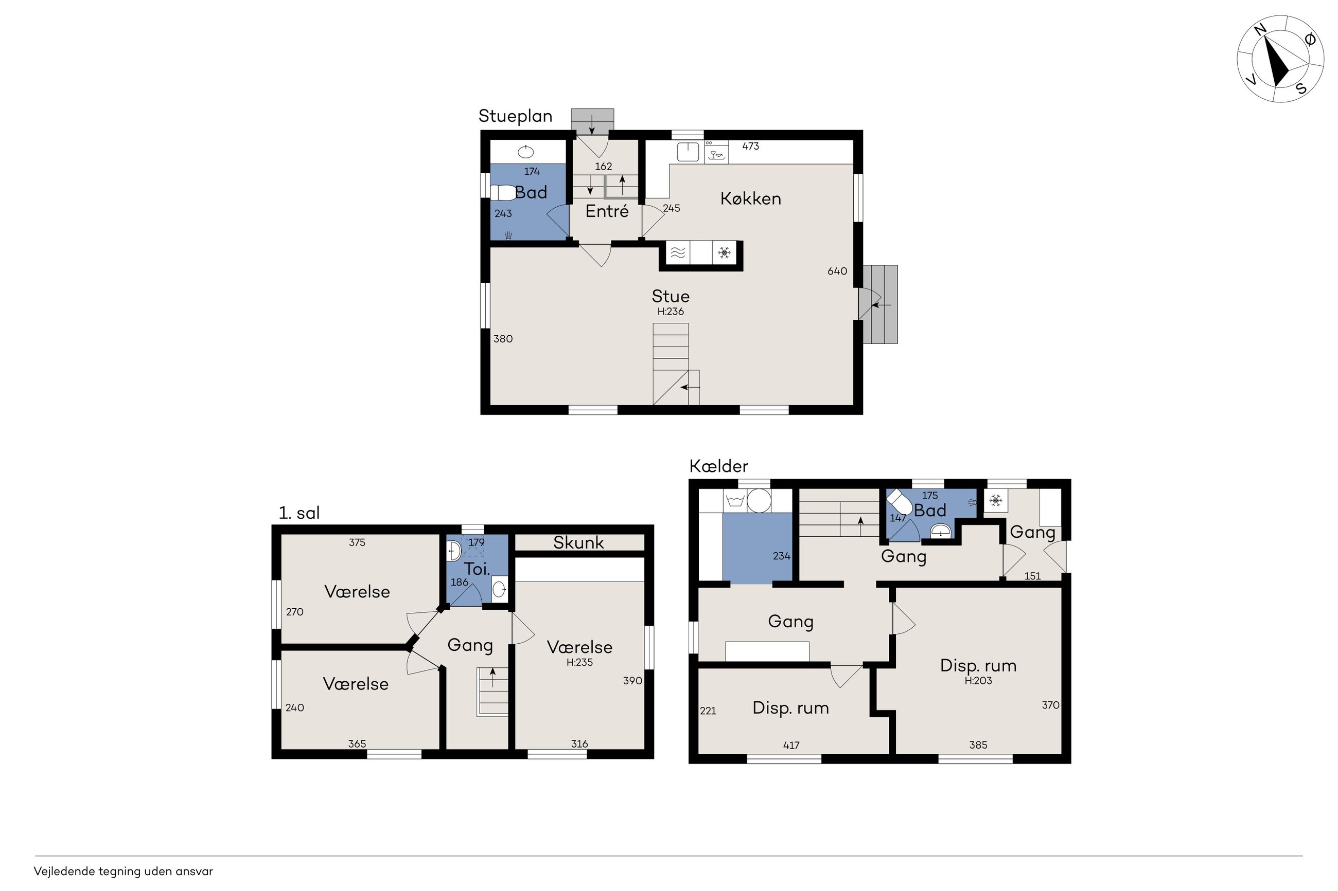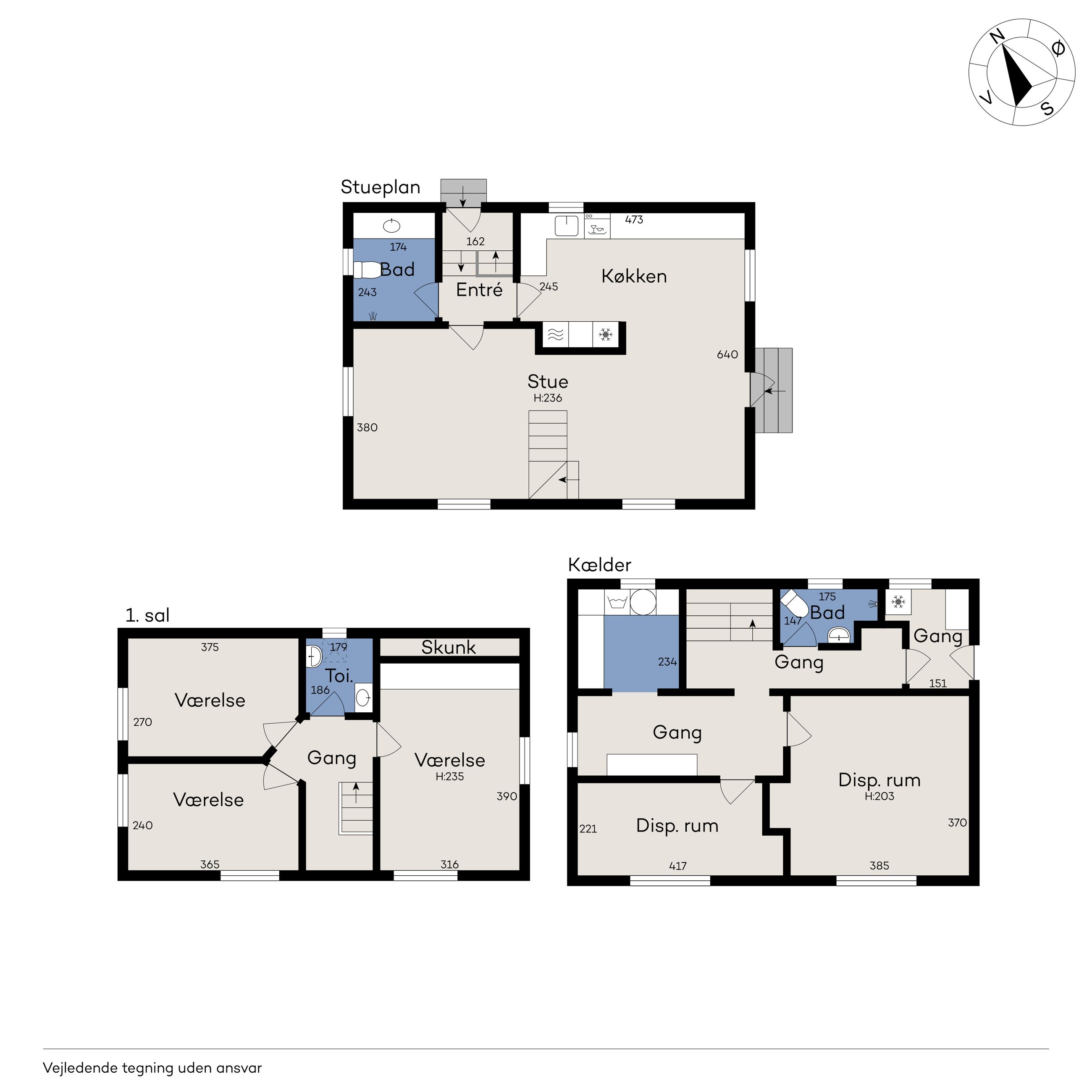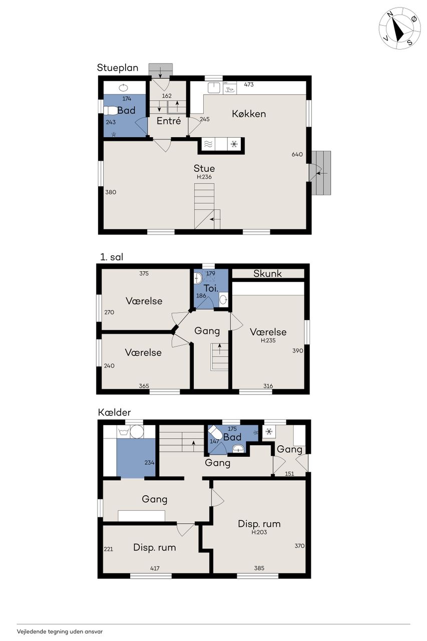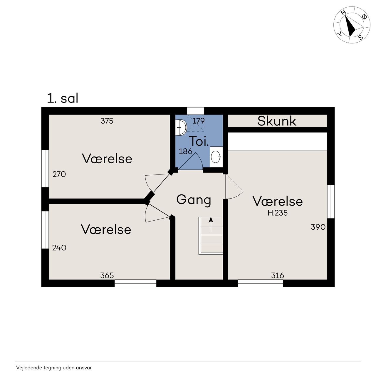 1. salen byder på tre gode værelser samt et toilet, hvilket gør den ideel som privat afdeling for familien.