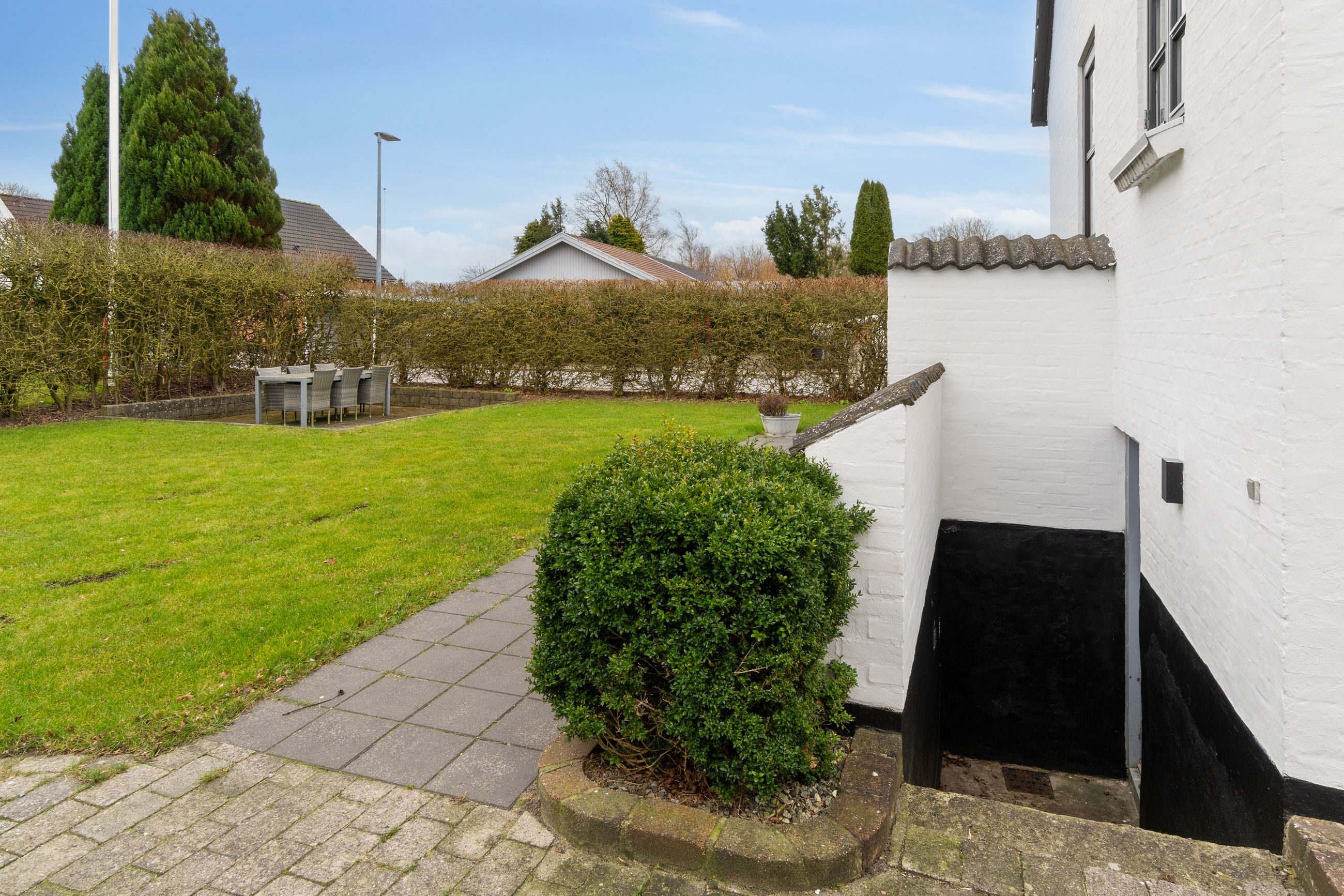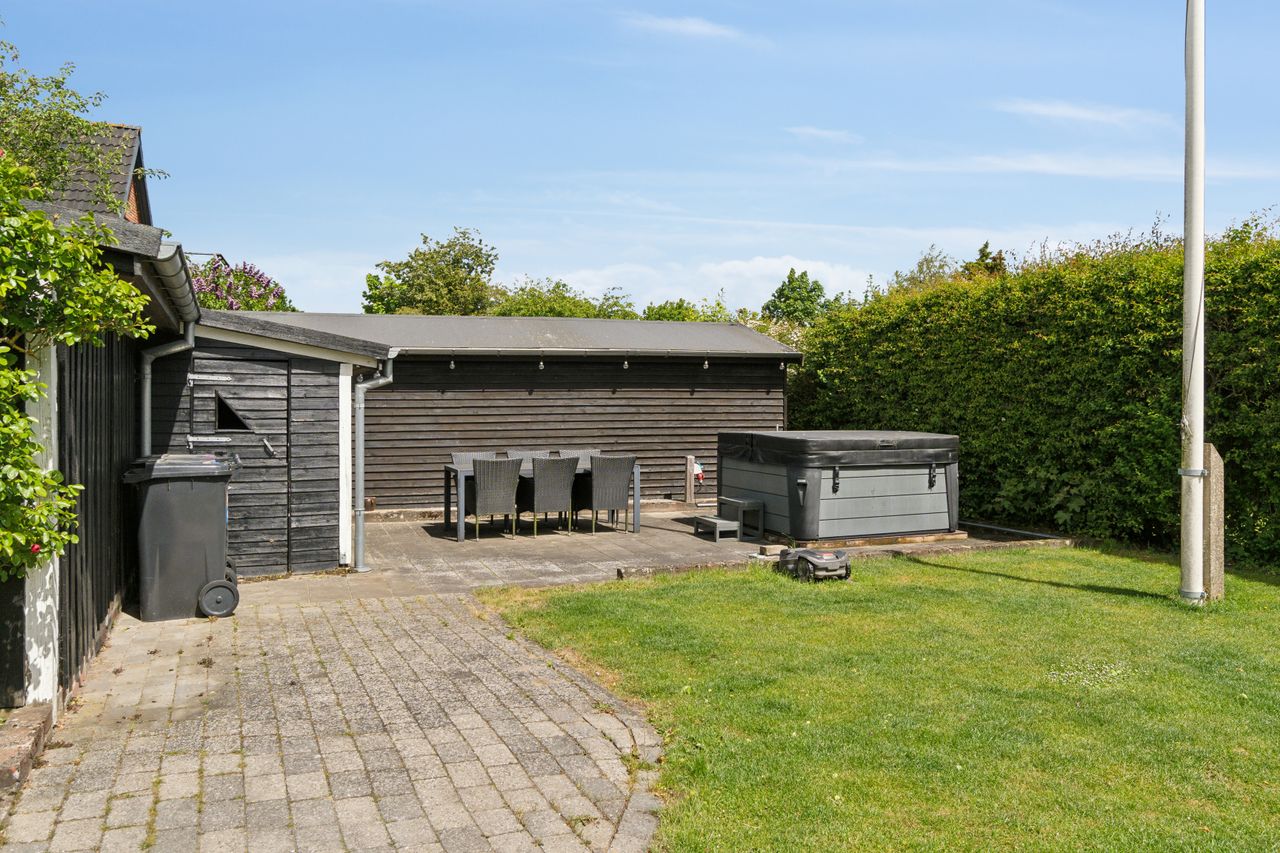 Udendørs får du et fantastisk havemiljø med flere hyggekroge, hvor du kan nyde solen hele dagen.