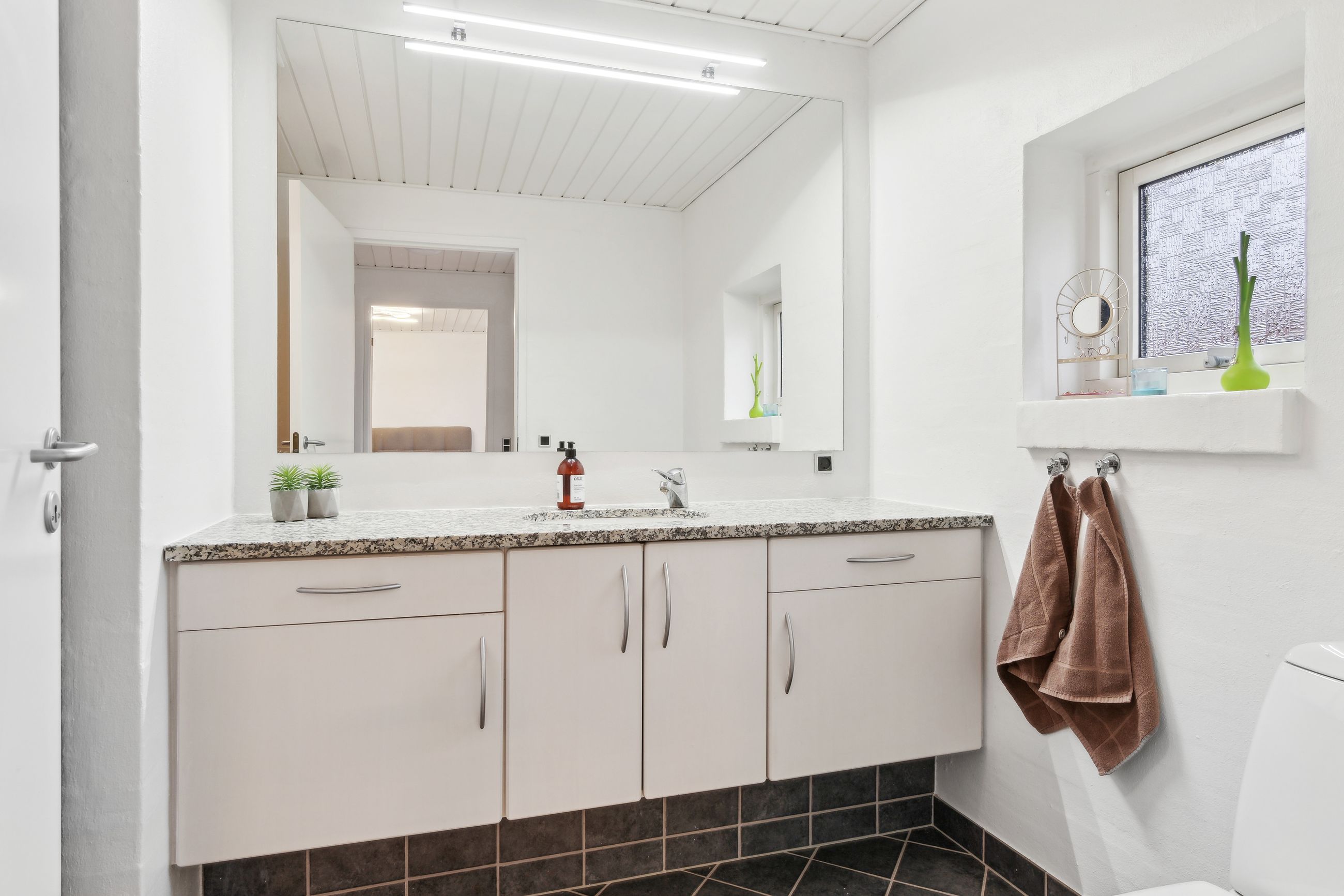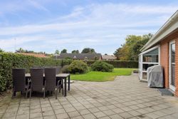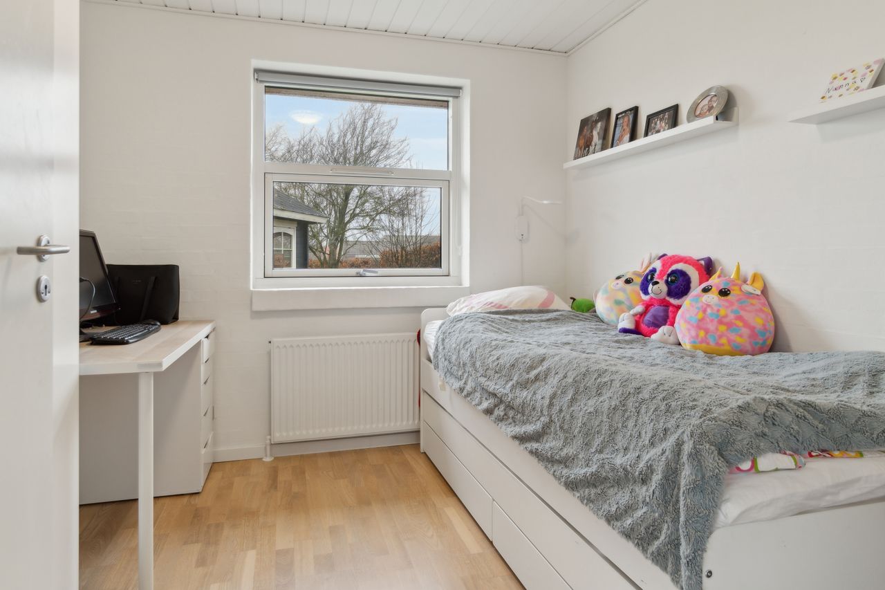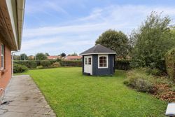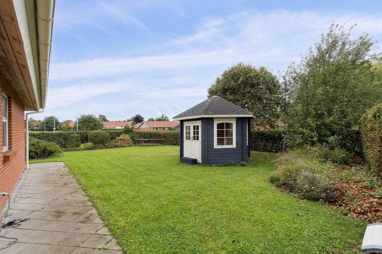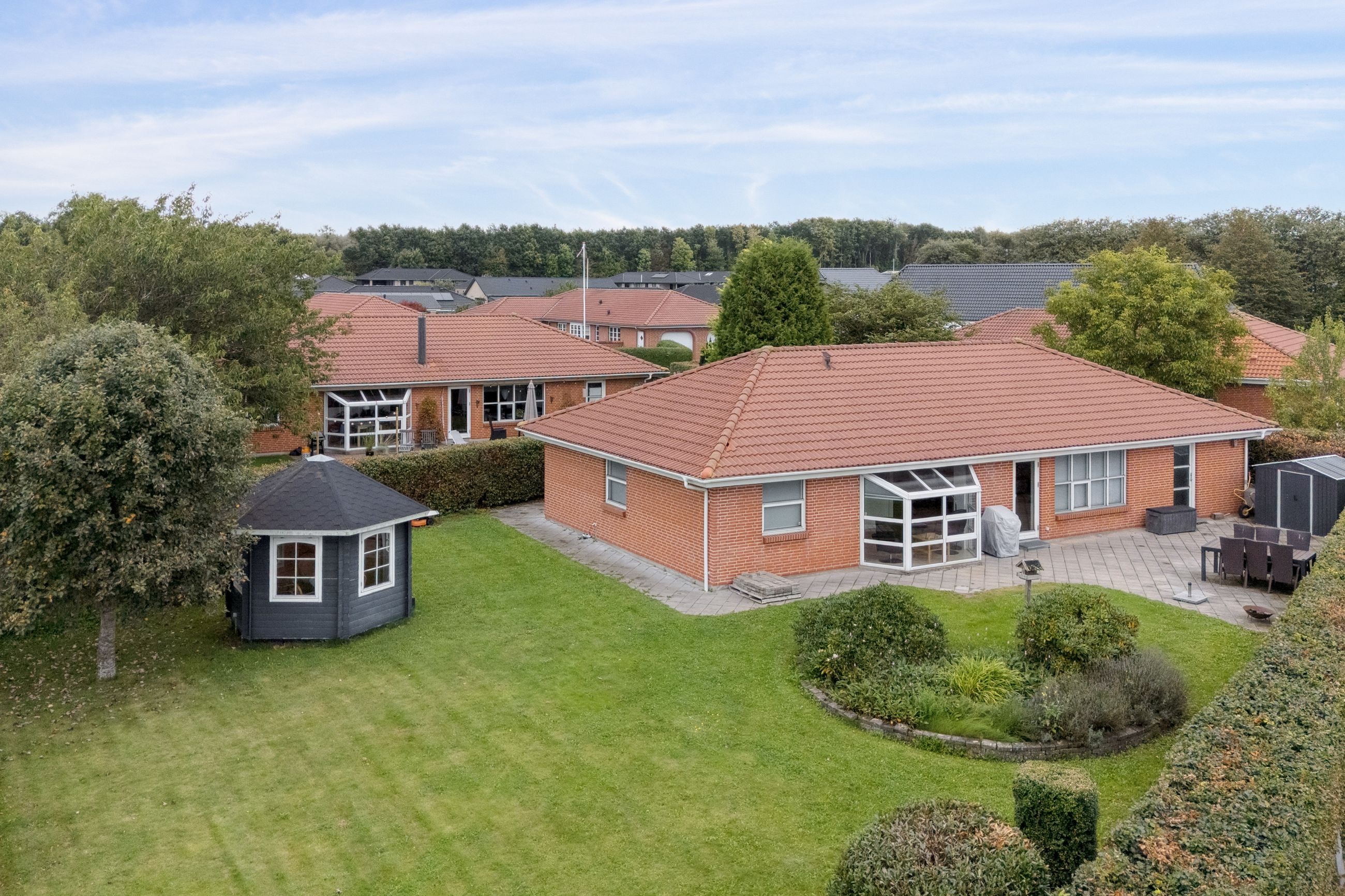 Udenfor venter en dejlig have, der er nem at holde, og som byder på muligheder for både leg, afslapning og hyggelige grillaftener. Ejendommen har også en god terrasse, hvor du kan nyde solen og udsigten over de rolige omgivelser.