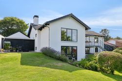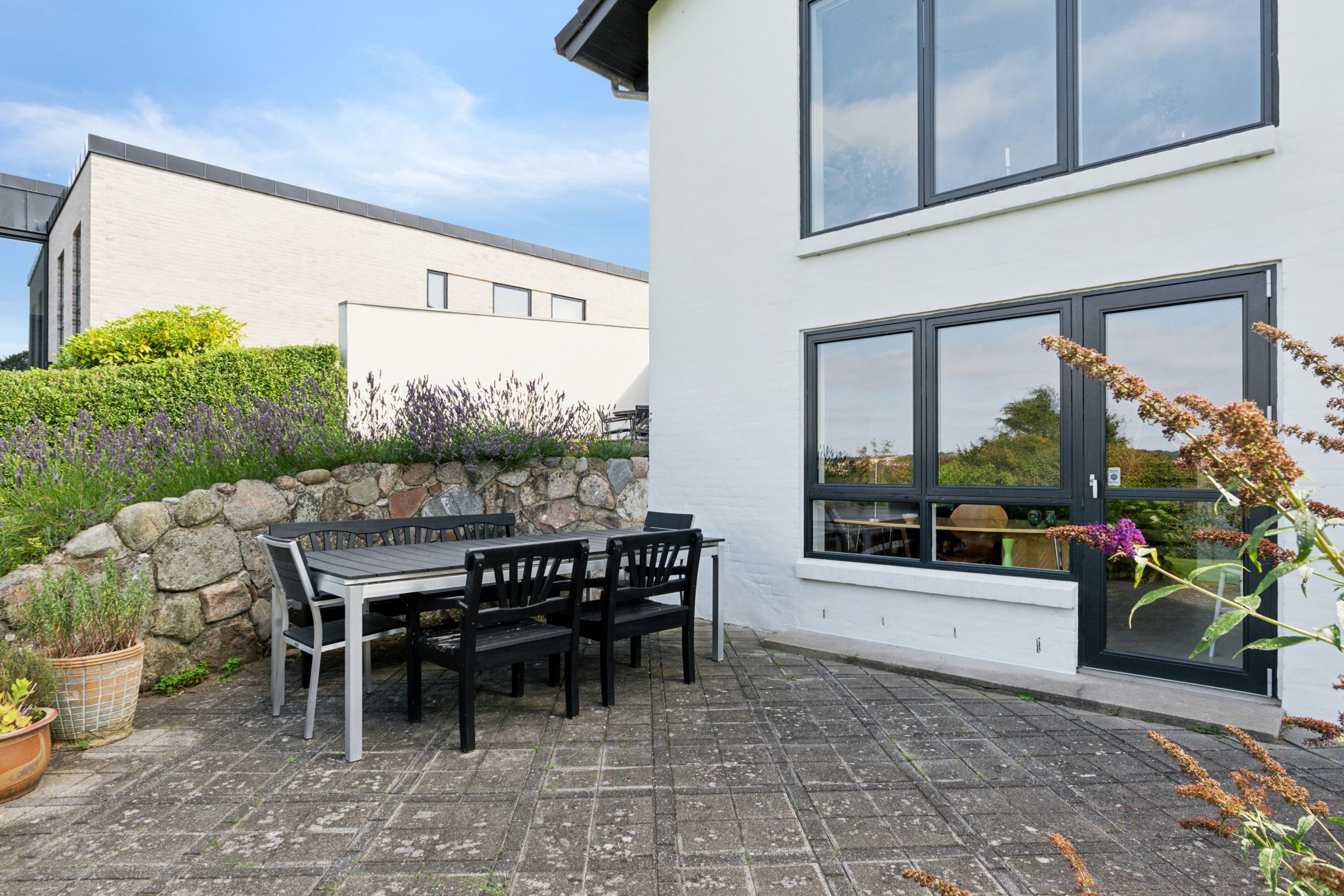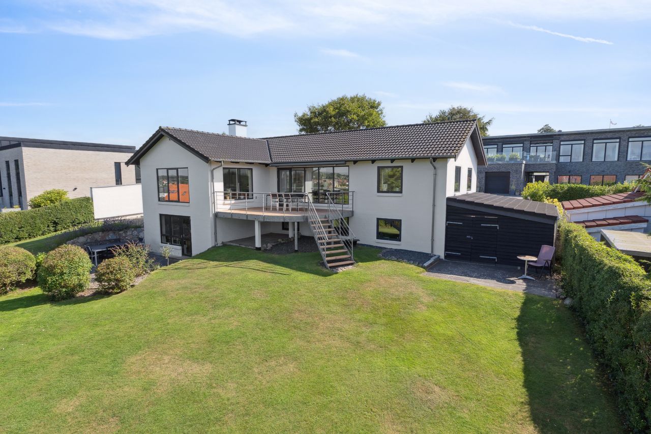 Ejendommen ligger perfekt placeret på en let skrånende grund, hvor opholdsrummene er orienteret mod vest, så du får fuldt udbytte af de smukke omgivelser. Her mærker du med det samme, at du er et sted, hvor der er tænkt over detaljerne – og hvor både natur og byliv mødes på den helt rigtige måde.