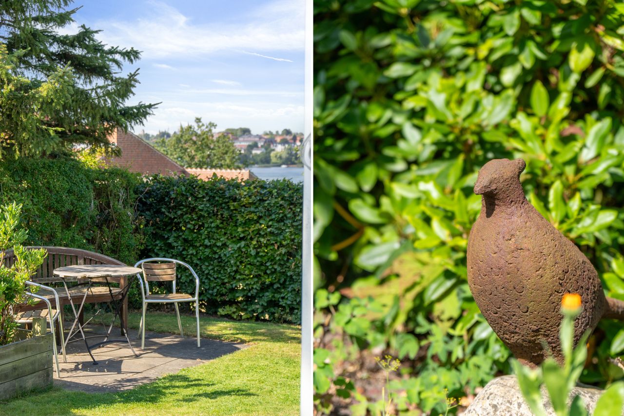 Uderummet byder på en skøn, privat have med flere terrasser og lækroge. Her kan du nyde morgenkaffen i solen, læse en bog i skyggen eller invitere gæster til middag med byen som baggrund. Grunden ligger roligt og ugeneret, og du har masser af albuerum uden at føle dig isoleret.
