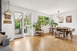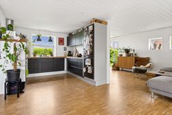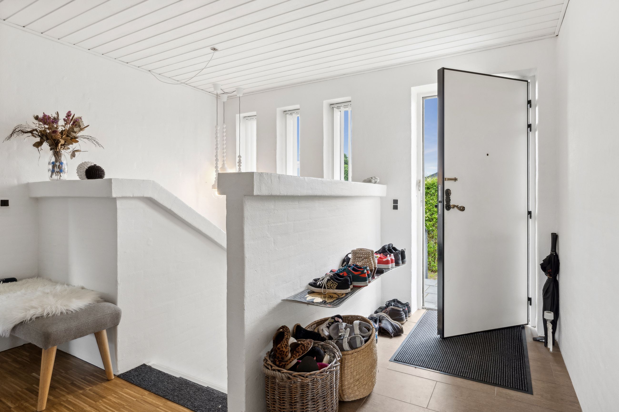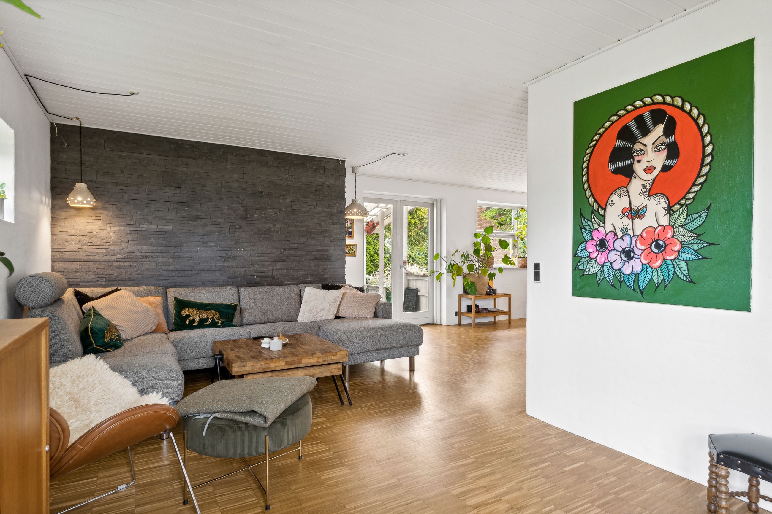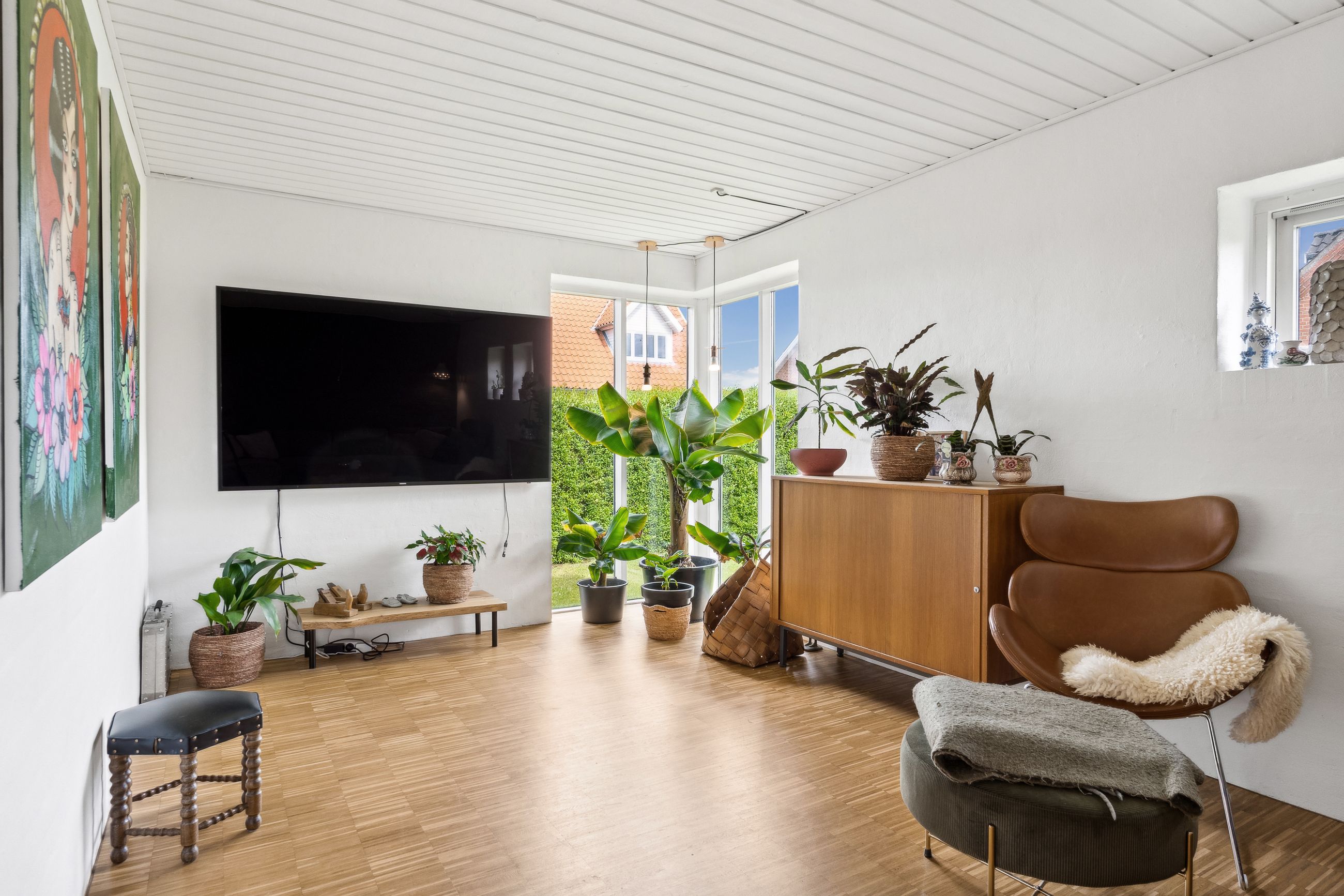 Når du træder indenfor, møder du et lyst og velholdt hjem, hvor pladsen er udnyttet til fulde. Boligen rummer flere gode opholdsrum og to badeværelser, der gør det nemt at få hverdagen til at glide – uanset om I er mange eller få under samme tag.