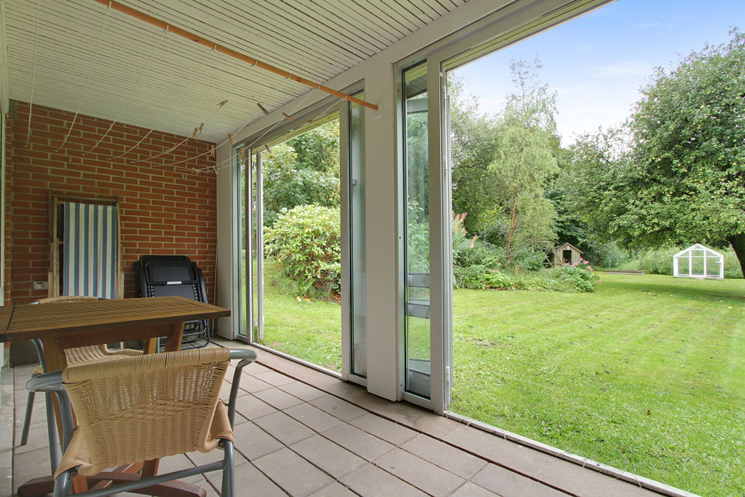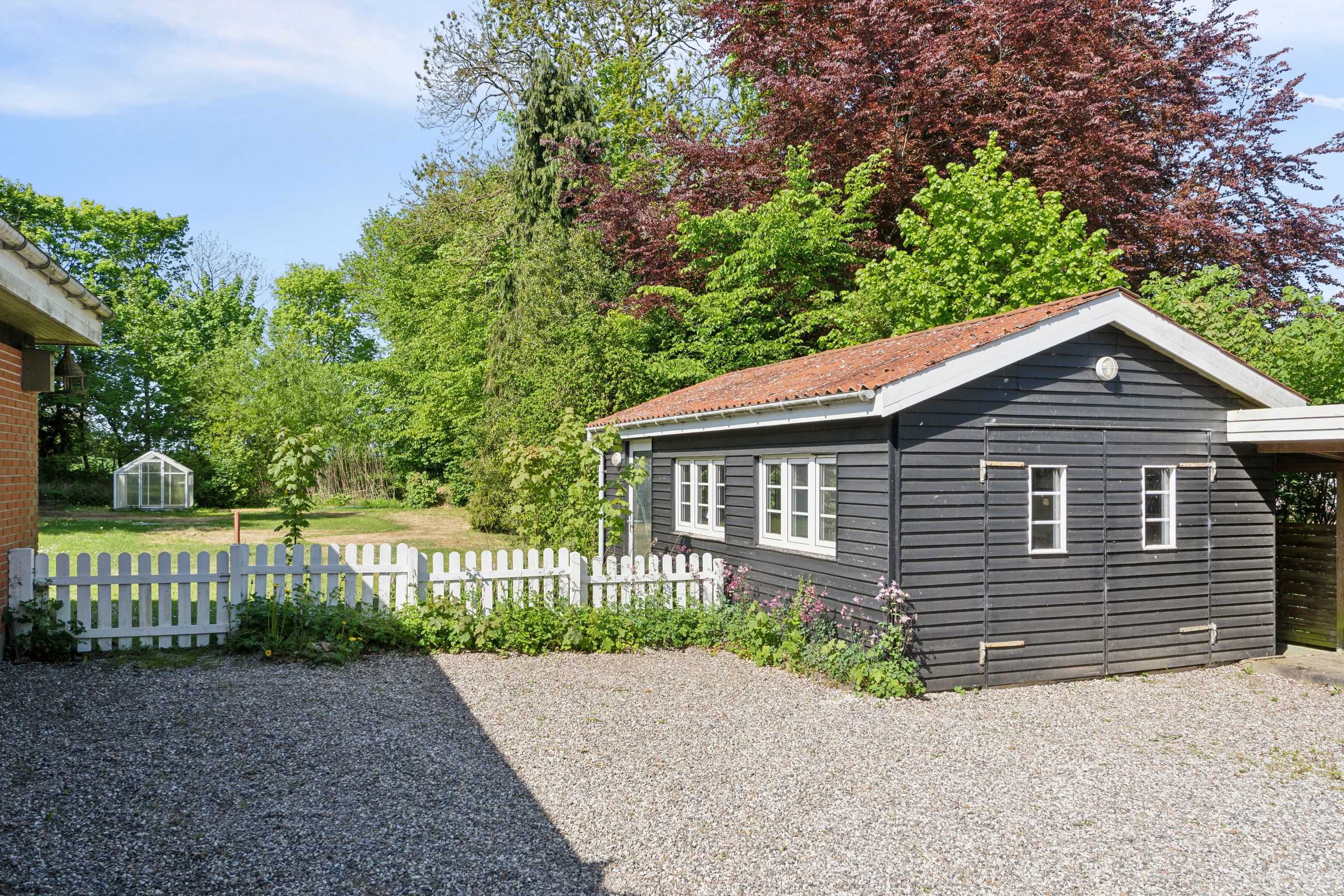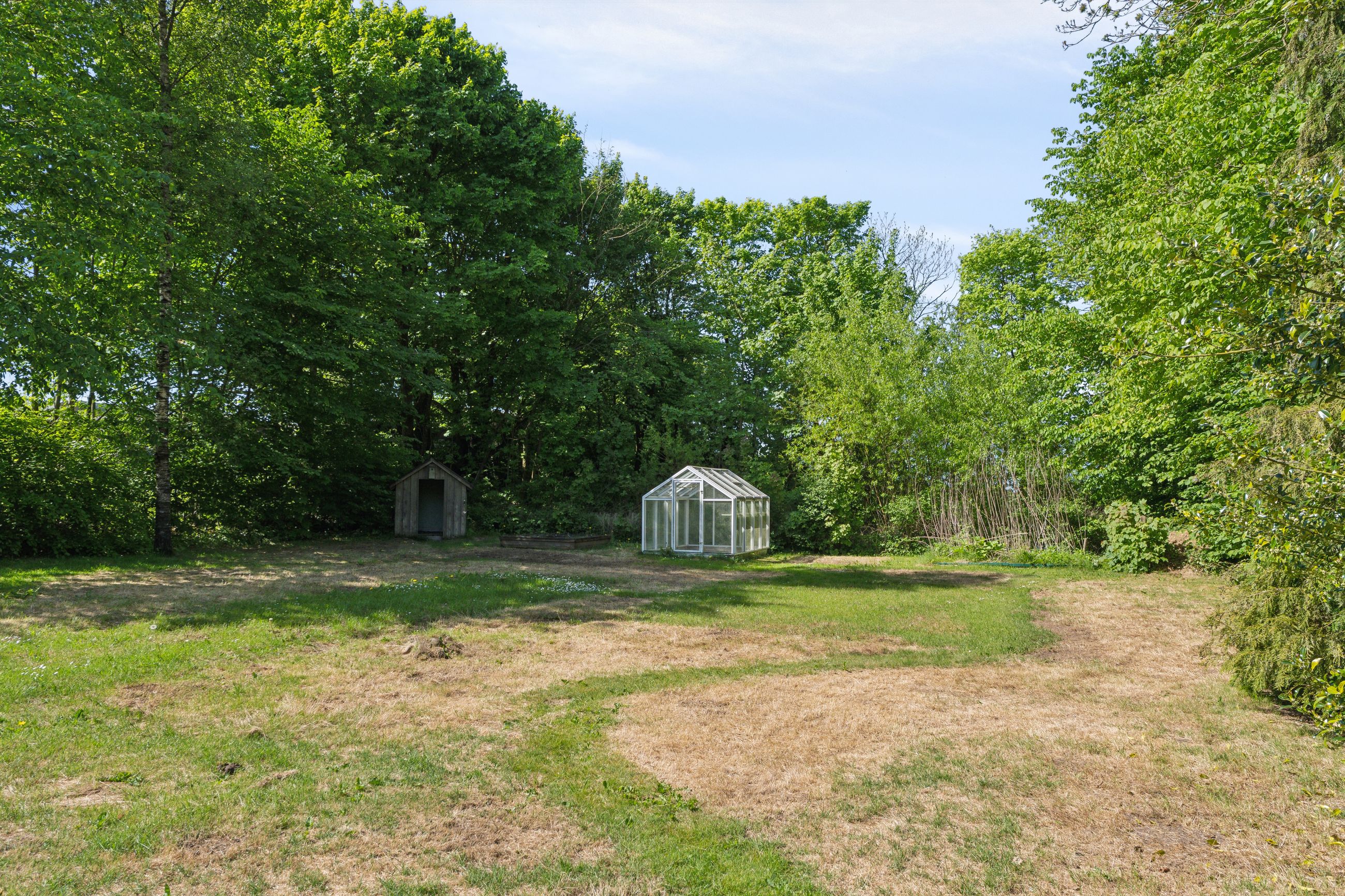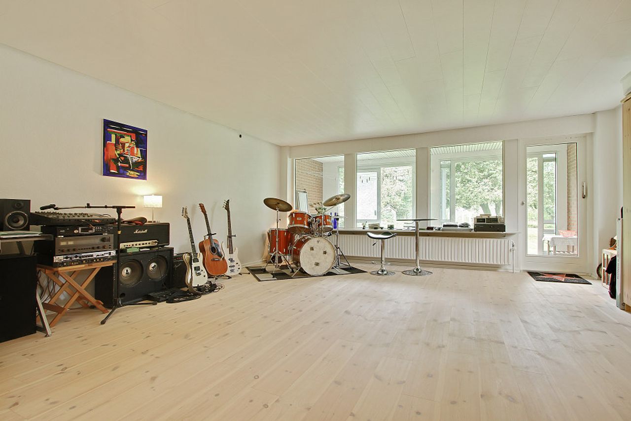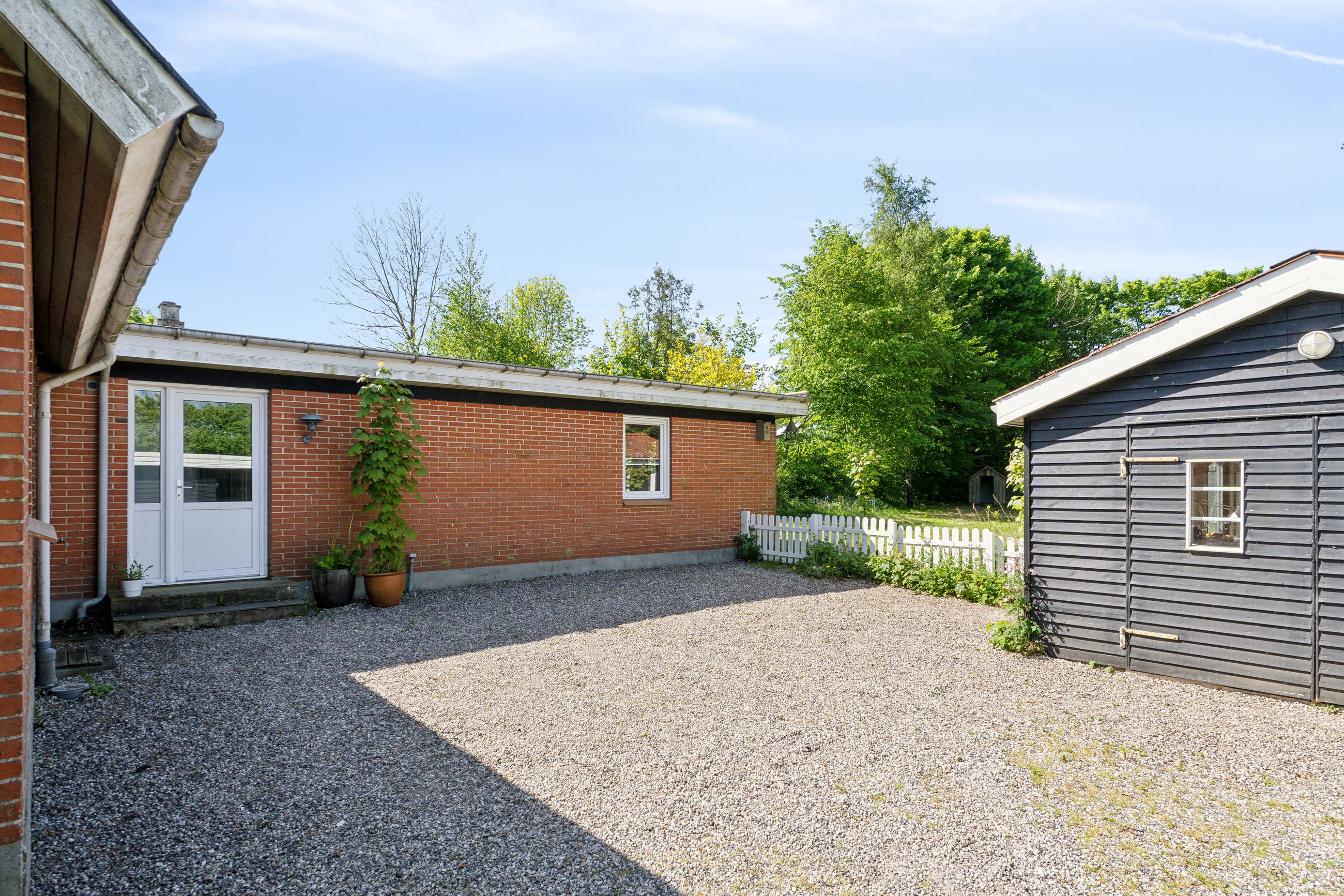 Ejendommen byder på gode, lyse opholdsrum, en funktionel planløsning og en hyggelig atmosfære. Udenfor får du en stor have, hvor du kan skabe din egen grønne oase – hvad enten du drømmer om en køkkenhave, blomsterbede eller et sted til afslapning i solen.